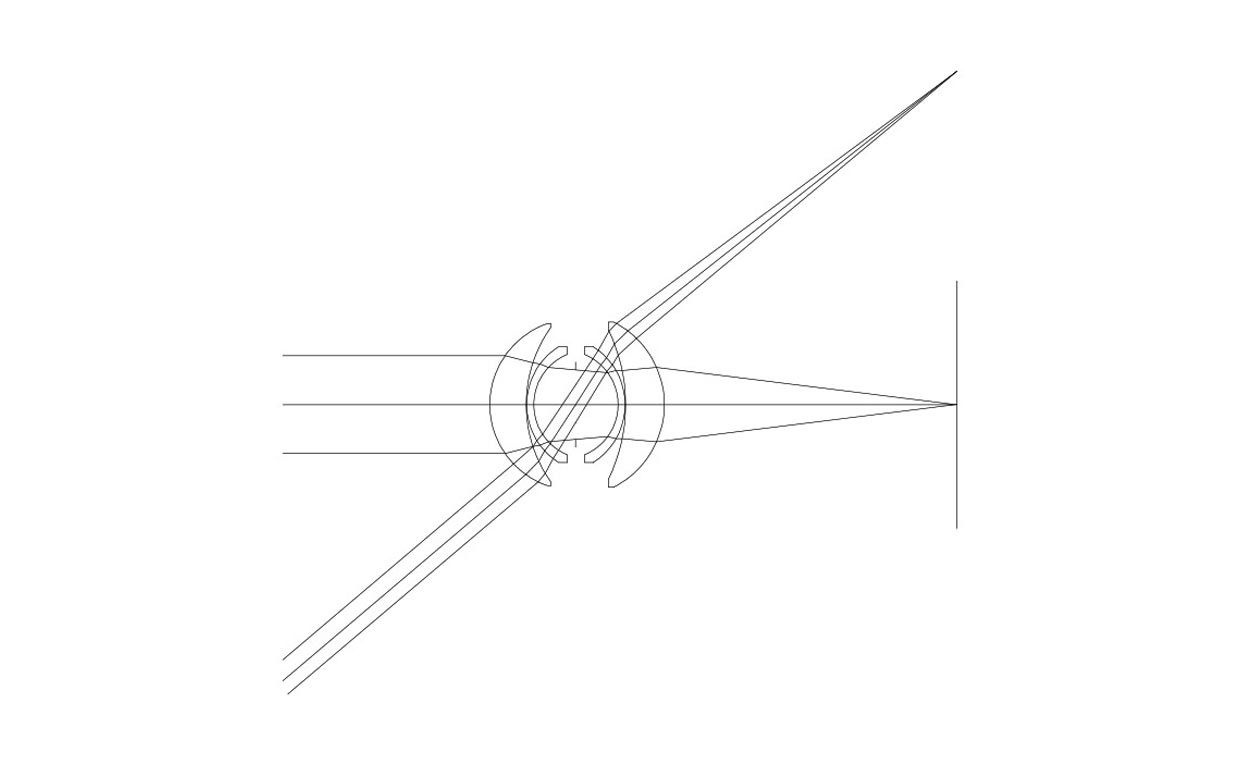 대칭형 광각 광학식은 왜곡이 거의 없고 시야곡률이 최소화되며 측면 색수차를 효과적으로 억제하는 장점을 지닙니다. 그러나 주변부 광량 저하에 취약하며, 비교적 큰 구면 곡률로 인해 주변부 구면수차 문제를 해결하기 어려워 밝고 빠른 렌즈 개발에 제약이 있습니다. 외형적으로는 경박단소의 콤팩트한 광각 렌즈에 적합하며, 설계 구조상 매우 짧은 후방 초점 거리를 가지므로 미러박스 공간 확보가 필요한 SLR/DSLR 카메라에는 적합하지 않습니다. 주로 필름 및 디지털 미러리스 카메라에 활용됩니다. 또한, 디지털 카메라의 이미지 센서는 사선으로 입사하는 빛에 필름보다 응답성이 낮아, 필름용으로 제작된 일부 대칭형 초광각 렌즈는 이미지 센서에 너무 근접한 후면 구조로 인해 촬영 이미지 주변부 컬러 캐스터 등의 문제가 발생할 수 있습니다.