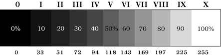 존 스케일은 특정한 톤의 연속으로 이루어진 사진(흑백 사진)에서 농도에 따라 11단계로 나눈 것을 의미하며, 존 스케일에서 존 1단계는 노출 1단계(1 f-stop)와 동일하다. 따라서 존 스케일은 단계를 기준으로 노출과 필름의 농도, 최종 인화(출력)의 톤이나 계조에 일관되게 적용하는 것이 요체가 아닌가 생각한다.