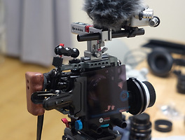 조금 개조하면 안정감을 높일 수 있을 듯해서 기존 스케이트 달리의 보드를 분리하고 다른 것으로 대체하여 전체적인 구조를 변경했다. 안정감이 훨씬 향상되어서 비로소 쓸만해졌다. 구성은 이미지에서 볼 수 있듯이 간단하다. 15mm rod와 rig clamp, 그리고 cheese plate 몇 개를 활용했다. 매직 암에 필요에 따라 작은 조명이나 마이크 등을 달거나 손잡이로 사용할 수도 있겠다. 넓어진 앞뒤 바퀴 간격과 저상의 낮은 무게 중심 탓에 제법 무거운 카메라도 활용할 수 있었다. 로드 클램프를 풀고 조일 수 있어서 로드의 길이 조절을 통해 바퀴 간격을 조절할 수 있도록 만들었다.