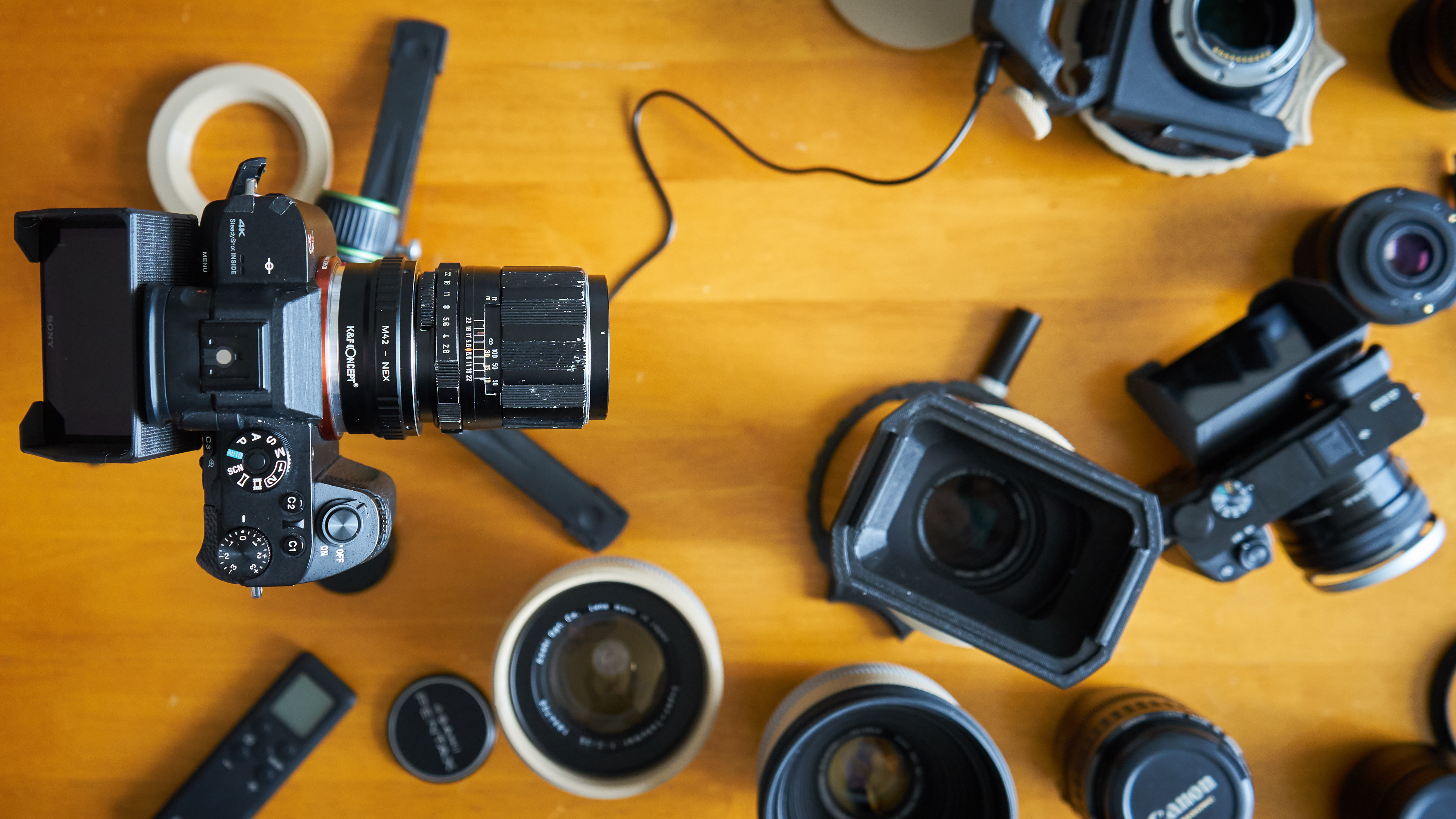 아래 급조된 샘플 이미지에서 최대 개방 촬영에서의 소프트함을 일부 확인할 수 있다. 이는 구면 수차의 영향이라 생각하며, 횡 색수차도 일부 눈에 띈다. (퀵 릴리즈 크램프의 흰 눈금선에 마젠타 프린징 이슈를 어느 정도 확인할 수 있다) 조리개를 일정 조이면 구면 수차와 종 색수차는 눈에 띄게 줄어든다.