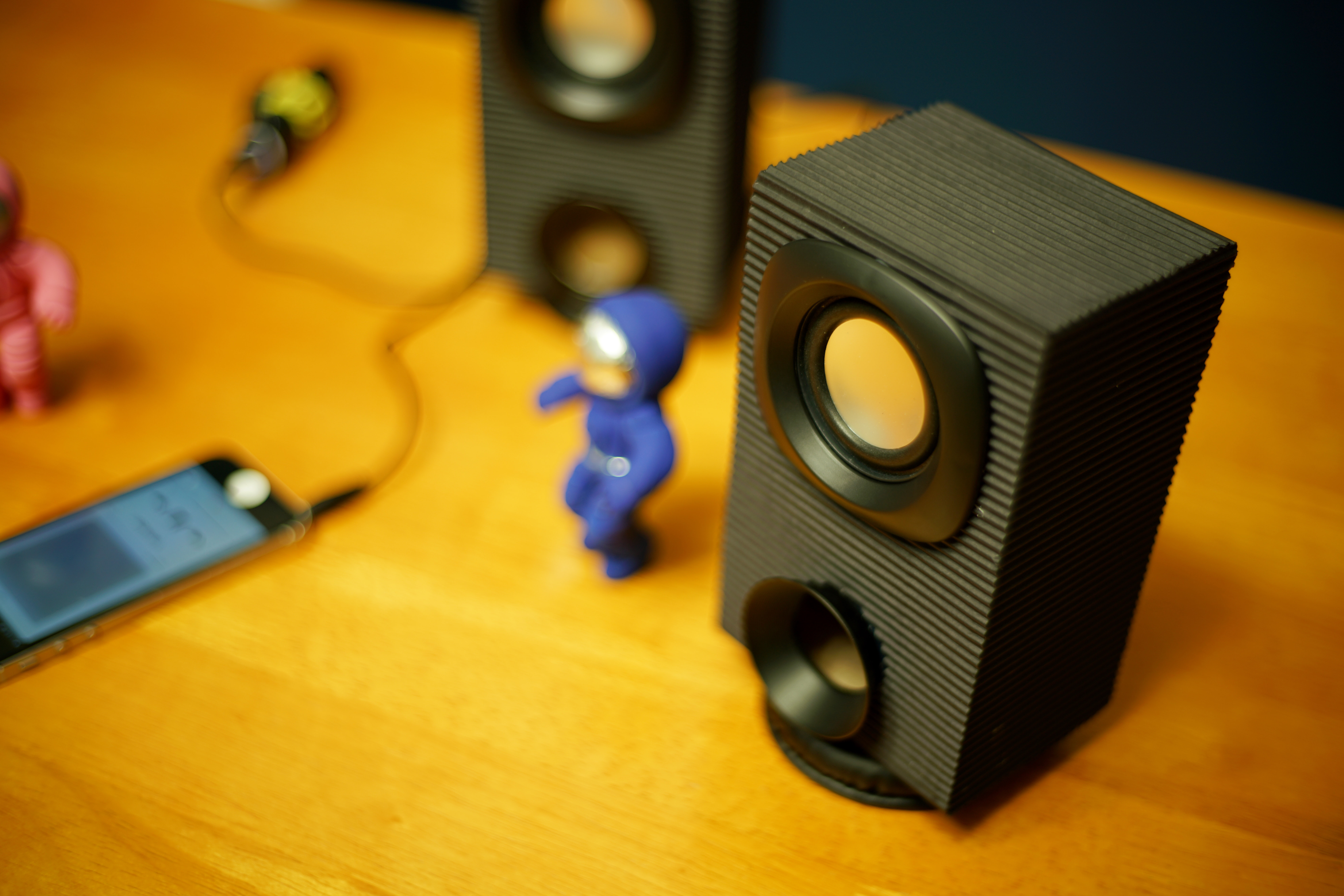 (종이로 만들어진) 스피커의 개조 전/후의 소리를 비교해 보자! 음향에 관해서 상식이 거의 없지만, 이리저리 검색하고 트랜스미션 라인 스피커(Trasmission line speaker) 구조로 어떻게 개조할지 이리저리 궁리했다. 스테레오 사운드 조차 지원하지 않는 저렴한 구조라서, 양 스피커의 내부 공명 구조를 달리하면 조금 더 다채로운 소리를 얻을 수 있지 않을까 궁리를 했는데, 결과는 사실 잘 모르겠다. (스스로 생각하기에는 개조한 후가 더 좋게 들린다)