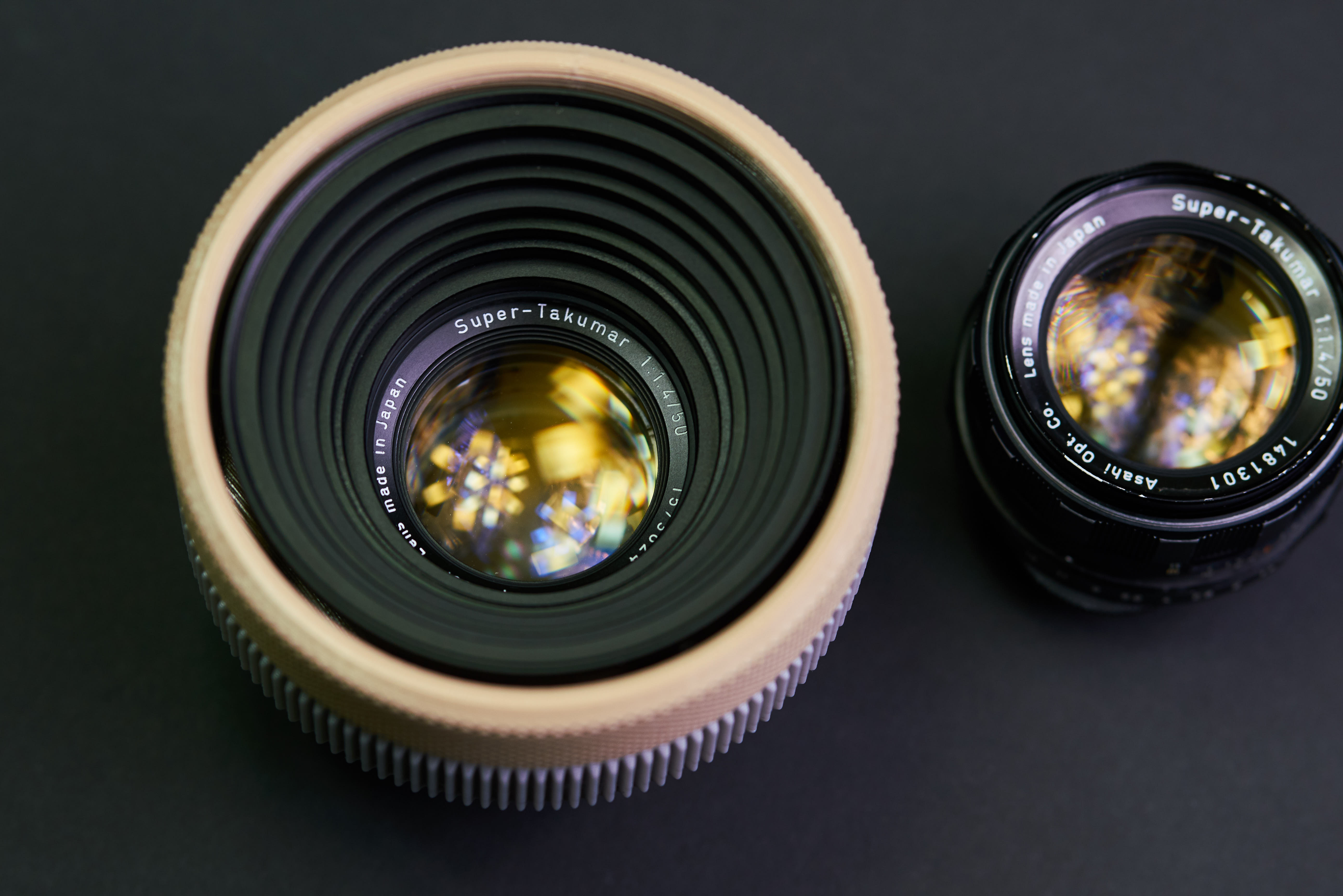 렌즈 하우징은 SuperTakuma 50mmf1.4 8 요소 렌즈에 최적화되었고, 외형 크기의 작은 차이로 인해 7 요소 렌즈에서 완전히 일치하지 않을 수 있다. (7 요소 렌즈는 8 요소 렌즈보다 약간 크다) Super Takuma 50mm f1.4 7- 요소 렌즈에 산화 토륨 광학 유리를 사용하는 경우 방사능 감지 문제로 인해이 렌즈를 권장하고 싶지 않다. 각 버전에 대한 정보는 아래 링크를 참조!