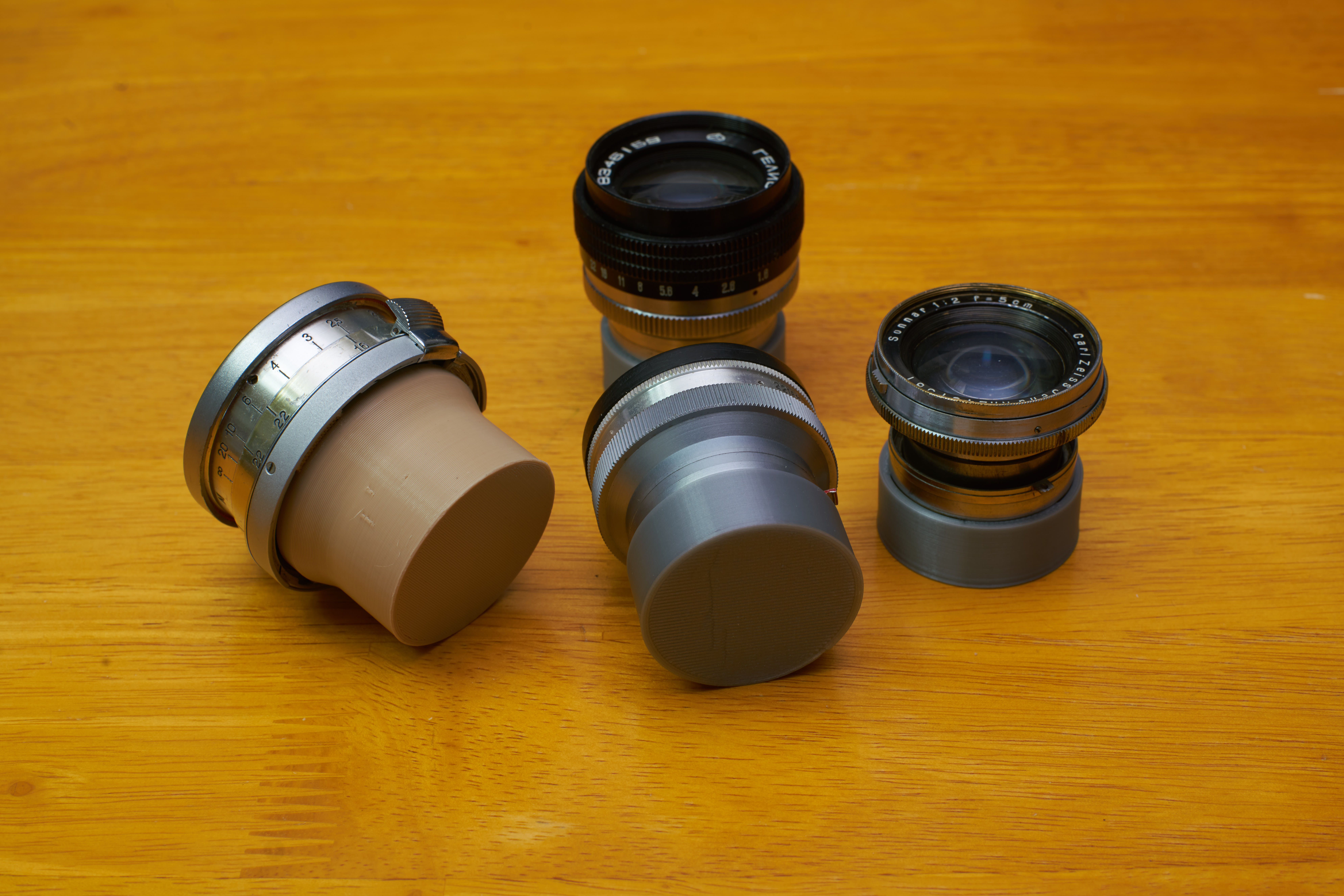 콘탁스 RF 마운트가 장점이 많은 방식이 아님에도, 다른 마운트와는 확연히 다른, 독특하고 옛 향수를 자극하는 멋스러움이 있다. (더구나 올드 조나 렌즈의 원형은 콘탁스 RF 마운트이고 제짝인 것처럼 잘 어울린다) 이러저런 이유로 여전히 콘탁스 RF 마운트 방식의 카메라와 렌즈를 가지고 놀기를 즐기고 디지털 카메라에서도 즐겨 사용한다. 하지만, 불편도 꽤 있는데 과거의 유물이 된 마운트 방식이다 보니 렌즈의 앞/뒤 캡 등을 구하기가 어려웠다. 특히 리어 캡은 일반적이 형태가 아니라서 대체하기 곤란했다. 콘탁스 RF의 35mm 85mm 초점거리 렌즈는 외부 베이요넷 돌기에 장착되고, 더구나 35mm는 렌즈 사출부가 매우 도출한 괴랄? 한 형태이며, 50mm 또한 내부 베이요넷에 장착하느라 매우 일반적이지 않은 형태이다. 35mm 비오곤의 리어 캡은 전용 외에는 답이 없어 카메라에 항상 장착한 상태로 보관할 수 밖에 없었고, 50mm의 경우 필름 뚜껑(코닥 135 필름의 검정 통과 회색 뚜껑 중에서 탄성이 있는 회색 커버)의 겉통과 결합/고정을 위한 안쪽 돌기를 일부 칼로 잘라내고 렌즈의 사출부에 끼워 쓰는 방식 정도였다.