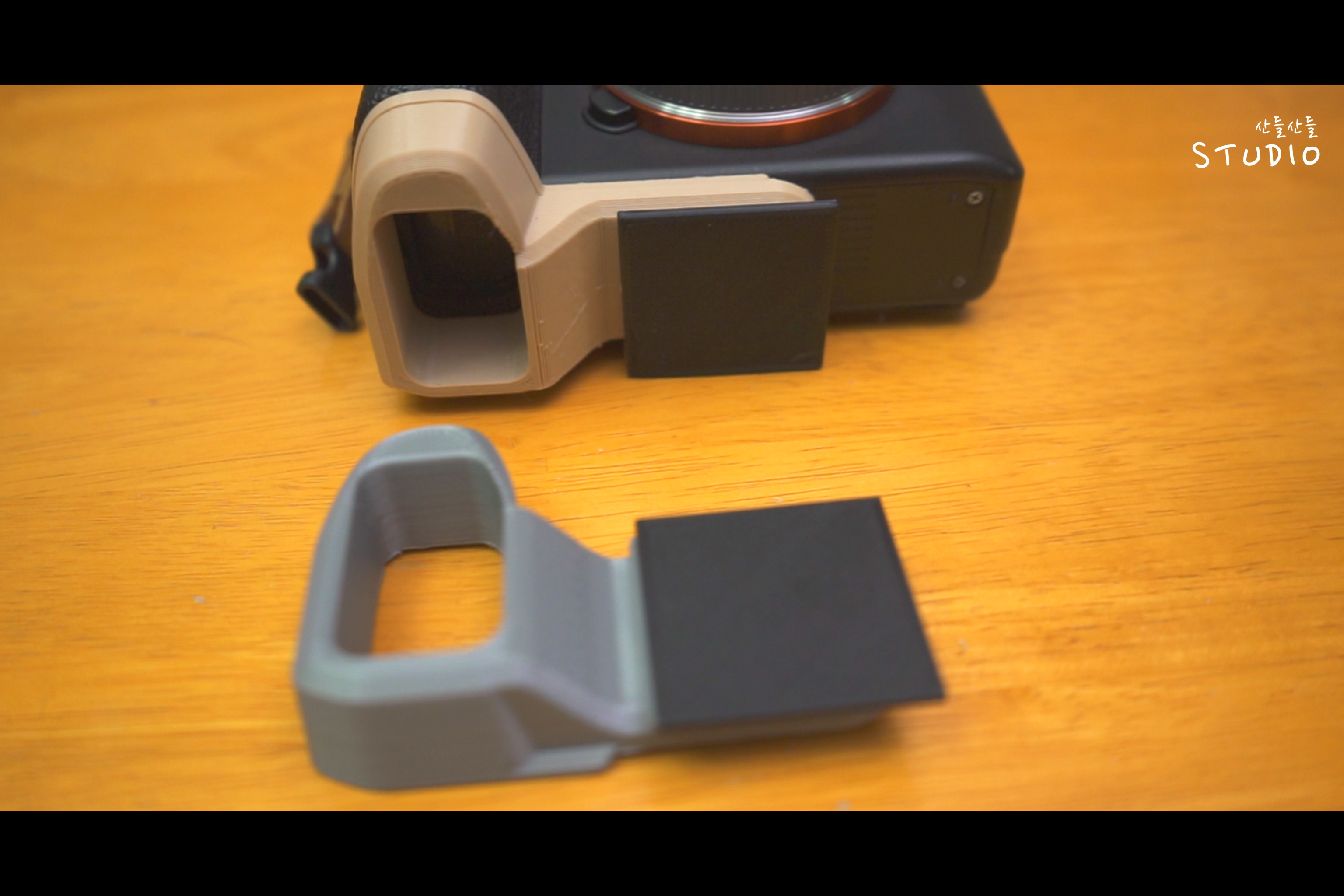 원 소스에 해당하는 싱기버스에서 다운로드한 A7용 확장 그립은 자체로 잘 만들어진 작품이었지만, 몇 가지 아쉬운 점이 있었는데, 배터리 교체 구멍이 없어서 배터리 교체가 필요하거나 외부 전원을 더미 배터리 등을 통해 연결해서 사용하려면 그립을 매번 탈/장착해야 하는 불편이 있고, 핸드그립이 카메라 하단의 1/4" 나사홀에 장착하는 형태라 삼각대에 고정하기 위한 플레이트를 장착 시에 또한 그립을 매번 제거해야 했다. 그리고 하단의 고정 나사가 그대로 노출되는 미관상의 아쉬움도 있다. 이런 불편은 알파 7용 소니 정품 핸드/확장 그립 GP-X1EM 역시 다르지 않다.