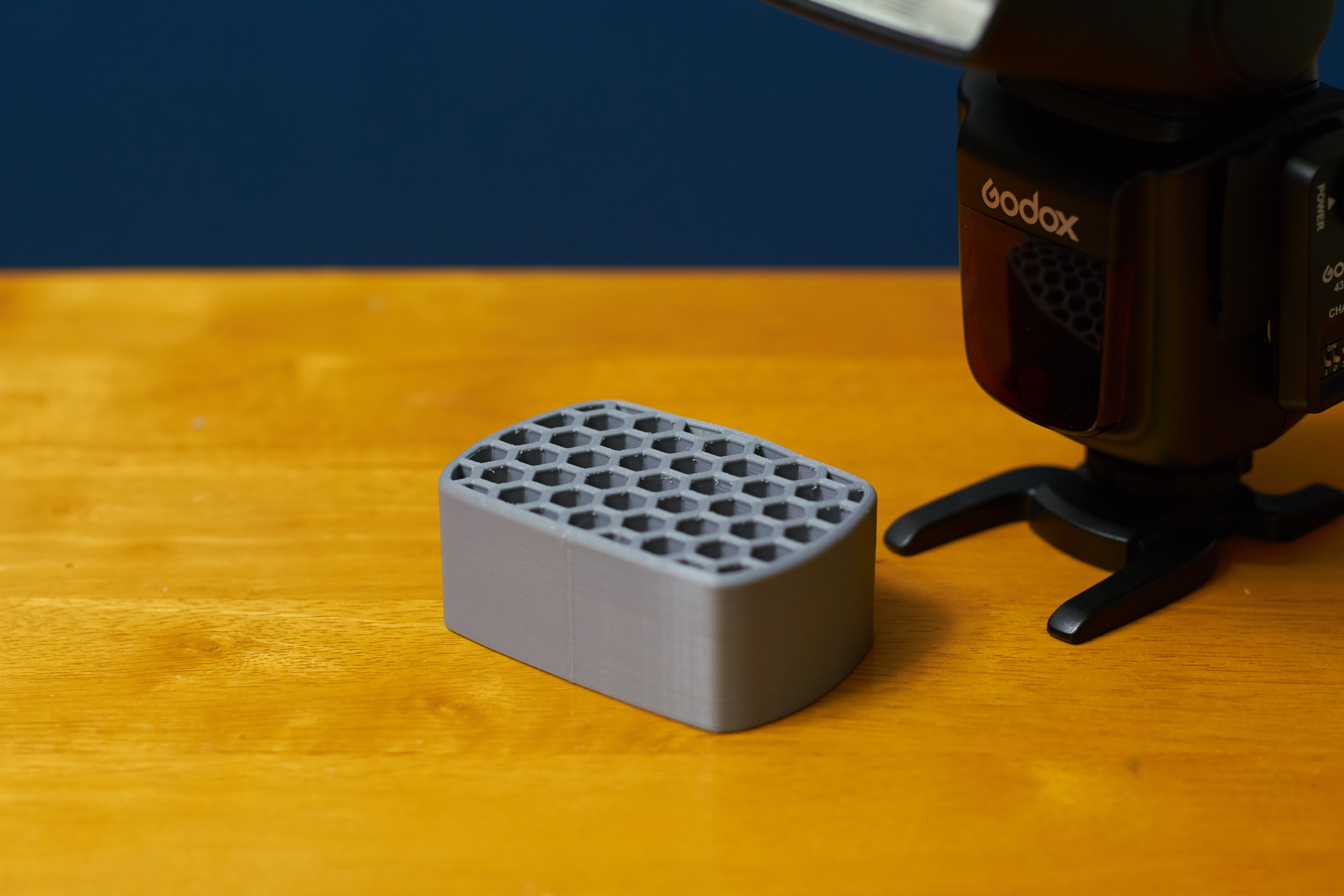 그리드는 전자 플래시 앞면에 설치하는 단순한 악세사리로 그 모양에 따라 허니컴/Honeycomb으로도 불리기도 한다. 작은 아크 전구에서 순간적으로 발광하는 전자 플래시는 모든 방향으로 방사되지만, 반사경이나 반사 판을 통해 일정 방향으로 빛을 몰아 발광량을 증폭시킬 수 있다. 하지만, 일정 방향이라고 해도 방사하여 퍼지는데 이때 방사각을 좁히는데 유용한 액세서리가 그리드/허니컴 어댑터 또는 Spot Snoot 라고 생각한다. 스튜디오용 조명에 맞춰 다양한 그리드(뷰티디쉬부터 소프트박스 그리드까지 아주 다양하다)가 존재하지만, 오늘은 휴대용 플래시용 그리드를 만들었다. (3D 프린팅의 크기 제한이나 효율을 감안하면 스튜디오 조명 그리드는 일반 제품을 구매하는 것이 더 낫지 싶다)