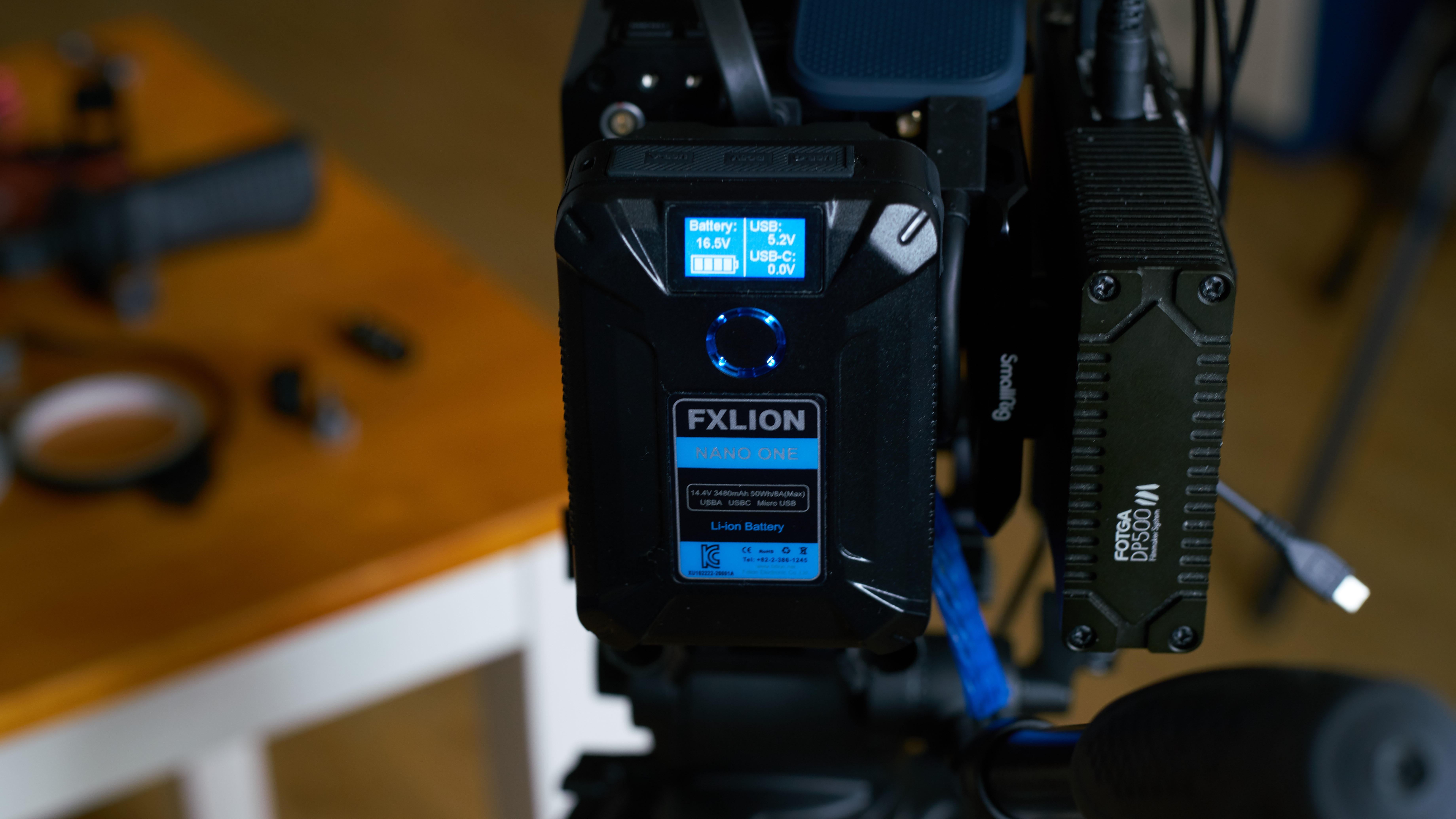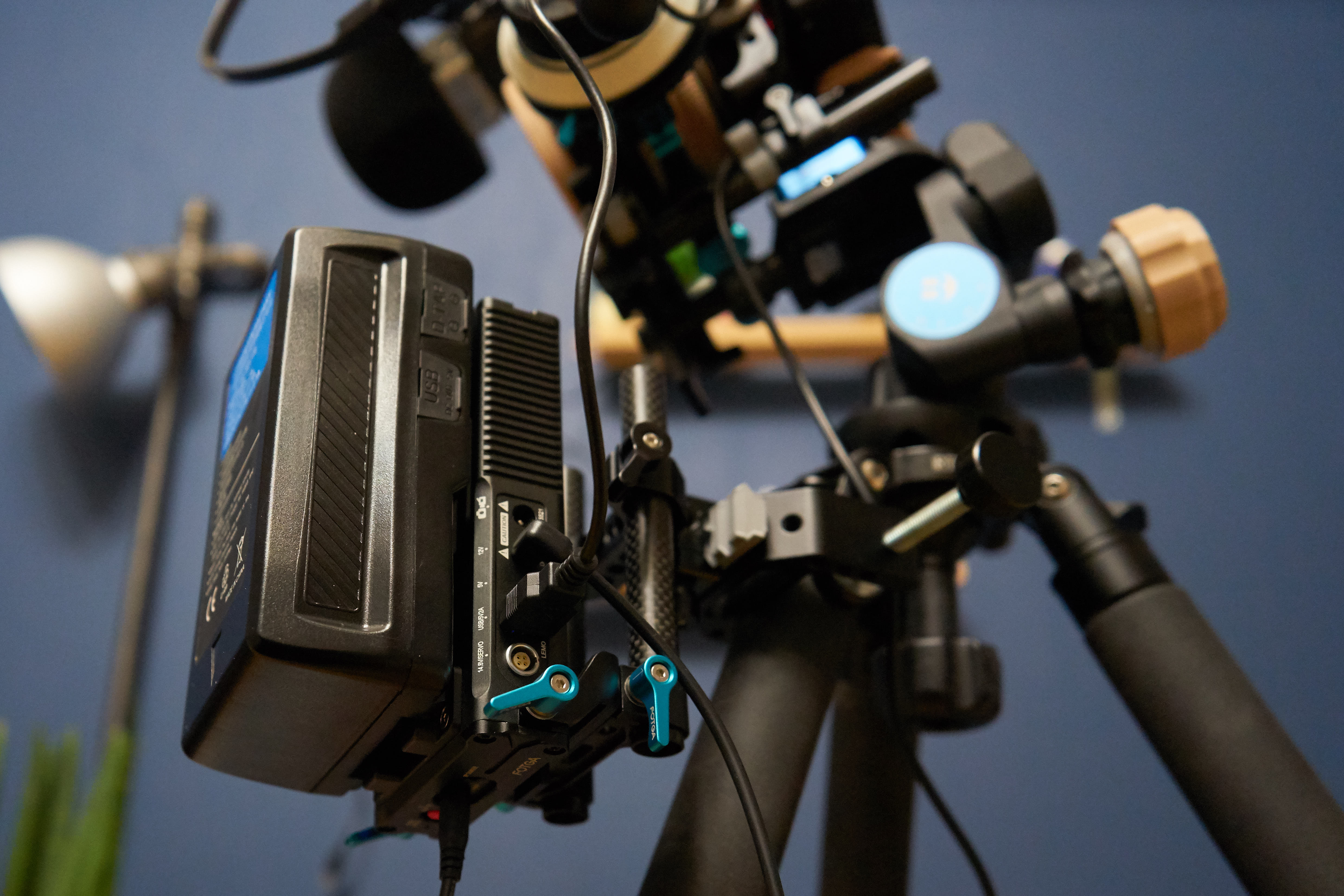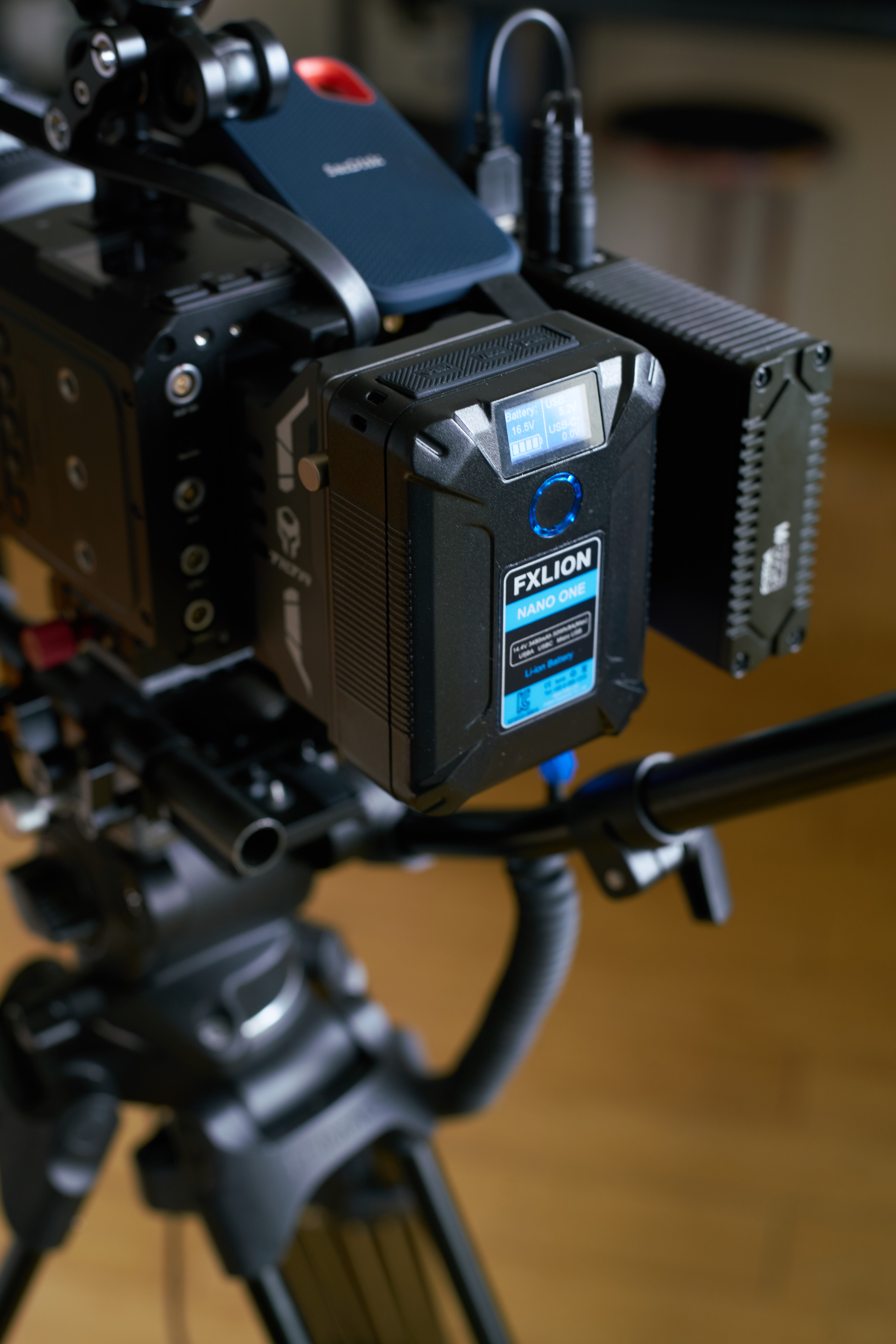 처음에는 카메라 기존 배터리에 여분의 추가 배터리(NP -FW)를 구매해서 넉넉히 사용하거나 USB 단자를 통해 촬영 중에 계속 충전하는 방식 또는 더미 배터리를 사용했다. 그 외 장치에는 소니 소형 캠코더용 배터리(NP-F950 or 750 등) 등으로 통일해서 해결해 왔는데, (그럼에도 어떤 기기에는 캐논 카메라 규격의 배터리가 필요해서 이를 사용하려면 따로 챙겨야 했다) 이를 제각각 충전하고 종류별로 챙기는데 비효율의 극치 탓에 번거로움에 대한 인내 또한 한계에 봉착했다. 그나마 소형 배터리의 장점이라면 무게가 부담스럽지 않다는 점이었는데, 종류별로 여유분의 배터리까지 챙기려니 전혀 가볍지 않았고 또한 매번 배터리 잔량을 확인하고 때에 맞춰 교체하는 것이 잔손이 많이 가서 효율적이지도 않다. 더 안정적이고 효율적인 전원 관리를 위해서 영상 촬영 기기에 최적화된 V-mount BP 배터리를 선택할 수밖에 없는 어쩌면 당연한 수순이고 생각이 짧은 아마추어가 겪는 즉, 머리가 나빠 손발이 고생하는 상투적이고 흔한 경험이었지 싶다.