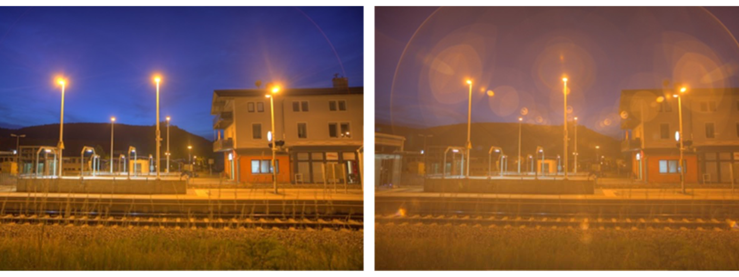 사진 촬영에서 빛 번짐은 광원을 직접 촬영하거나 강한 사광이 렌즈로 유입될 때 꽤 빈번히 발생한다. 빛 번짐을 통해 특별한 느낌의 표현이 가능하지만, 선명한 이미지를 얻을 목적이라면 이를 방해하는 요소로 그리 달갑지 않은 때가 많다. (사실, 대부분의 사진에 나타나는 빛 번짐은 아래 샘플 이미지에서와 같이 지저분하게 보이고 그리 아름다운 형태는 아니다) 빛 번짐은 다양한 이름으로 불리기도 하는데, 그 양태가 조금씩 달라서 플레어(Flare), 할레이션(Halation), 글로우(glow), 헤이즈(Haze), 빛 갈라짐(starbuster) 등으로 다양하게 불린다. 빛 번짐의 주요 원인은 광학계(렌즈)와 관련되어 있지만, 헤이즈처럼 대기 중의 산란으로 발생하기도 하고, 촬상소자(필름이나 이미지 센서) 면 또는 기타의 광학계 내의 구조물 난반사가 원인일 때도 있다. 그리고 열거한 원인이 다수 중첩될 때 더 확연하게 촬영 결과 이미지에 영향을 줄 것은 당연하고, 복합적인 요인으로 발생하는 경우가 더 일반적이라 생각한다.