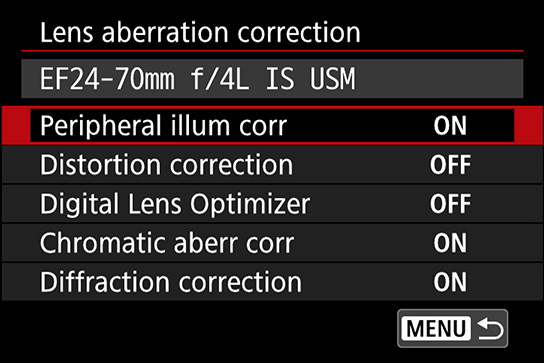 Lens Compensation is an in-camera optical correction feature. It comes with three options: shading, chromatic aberration and distortion. When these functions are activated in the setup menu, the camera will attempt to reduce the effects based on the profiles of some Sony lenses.