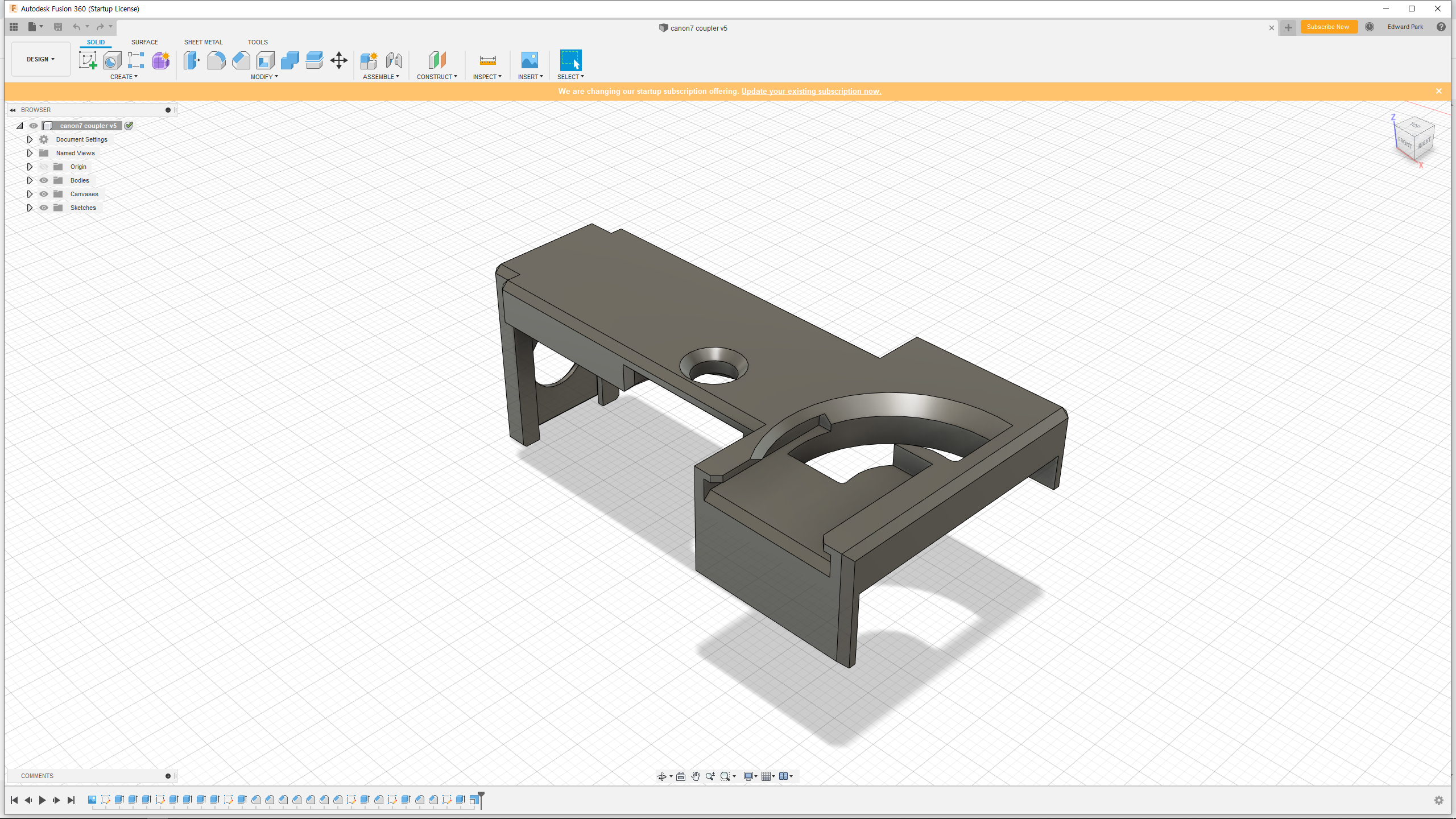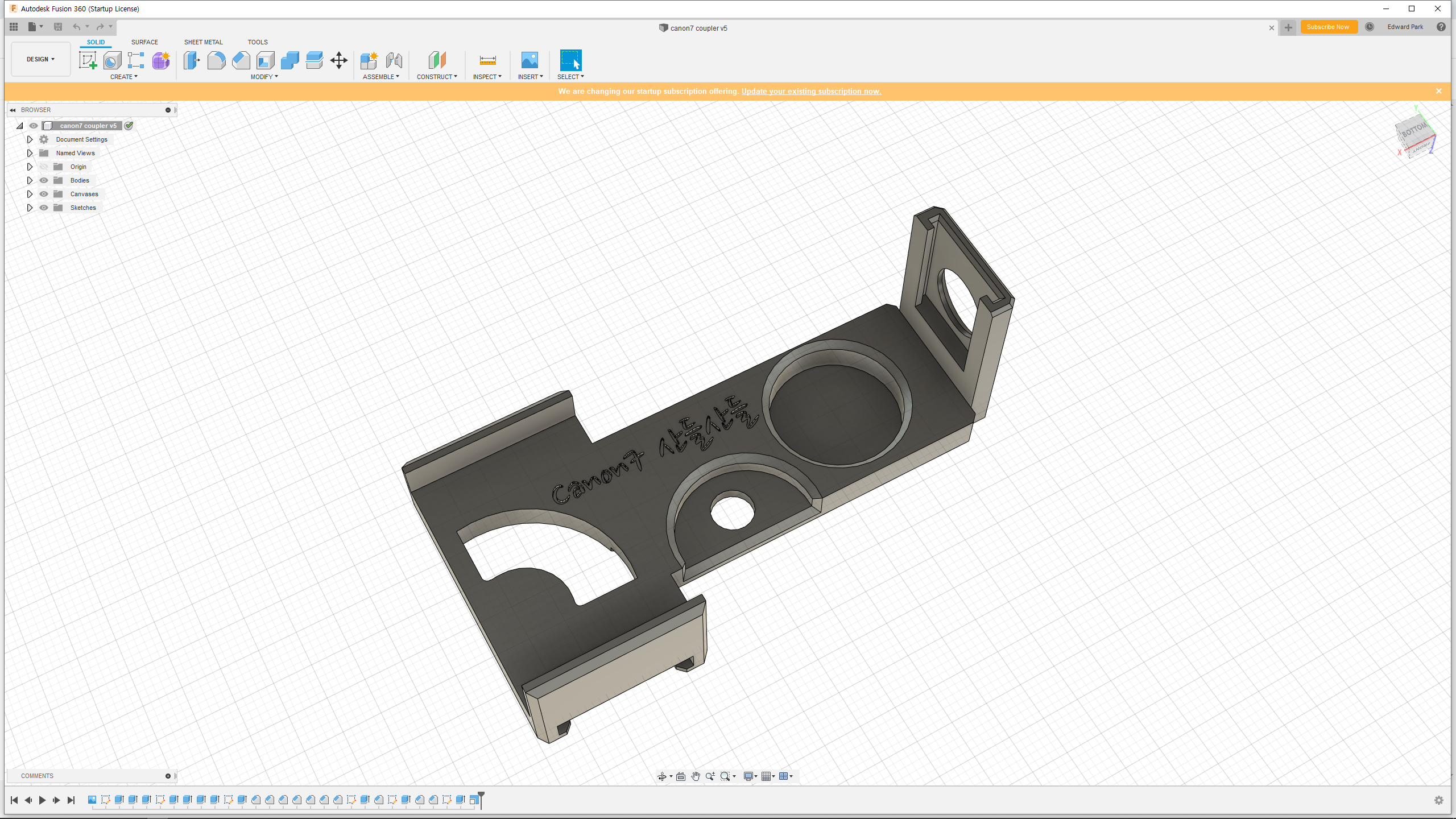 Canon 7은 매력적인 필름 RF 카메라이지만, 액세서리 슈가 없어서 외부 뷰 파인더 또는 기타 액세서리를 장착하기가 어렵다. 물론, 전용 액세서리 슈가 있지만 50여 년이 훌쩍 지난 지금에는 희소성에 쉽게 구할 수 없고 거래 가격도 아주 사악하다. 이를 위해 3D 프린팅으로 맞춤형 액세서리 슈 커플러를 만들었다.