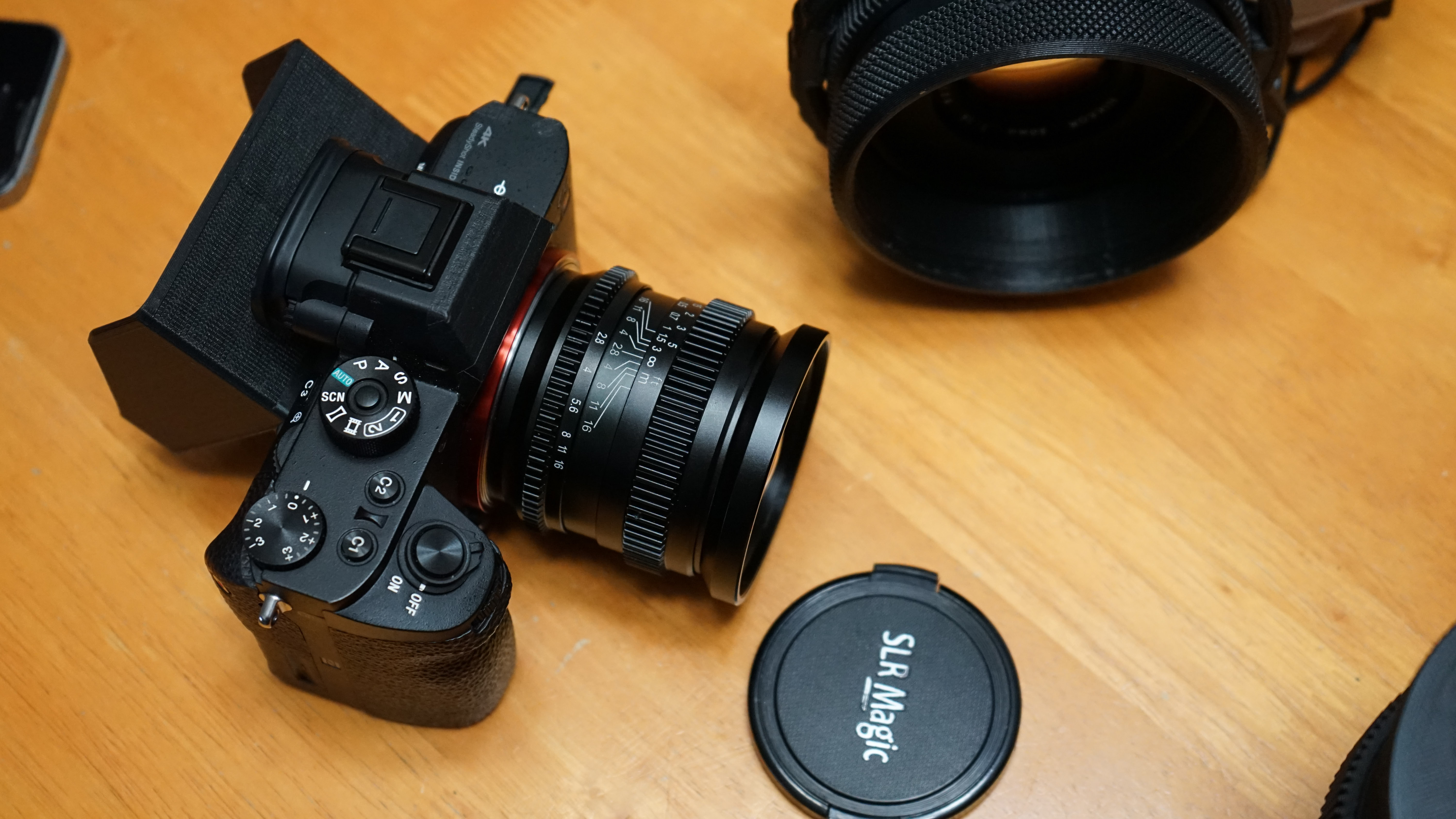 SLR 매직의 시네 렌즈에 대한 아쉬운 부분에 대해 개인적이 감상을 몇몇 덧붙이면, 첫째, 작은 크기에 비해 너무 무겁다(제조사 사양 기준 445g). 시네마 렌즈들이 안정적인 사용을 위해 대부분 튼튼함과 정밀한 조작에 중점을 두어 무거운 것이 사실이고 튼튼한 영상 전용의 삼각대에 고정하여 사용하는 특징을 감안할 수 있겠지만, 디지털 미러리스 카메라에서 간편하게 사용하기 위한 콤팩트 렌즈라는 콘셉트에서 보면 이런 무거움은 분명히 조화롭지 못하다. 즉, 사용 콘셉트는 라이트인데, 무게는 전혀 라이트 하지 못하다. 이는 필요 이상으로 무거운 렌즈라는 생각을 떨치기 어렵고 견고함과 안정적인 조작을 유지하면서 무게를 줄일 여지도 다분하다. 그리고 광학계의 구성/설계에서의 선택도 전체 무게를 증가시키는데 한몫을 하지 싶다. 비구면 렌즈를 전혀 사용하지 않는 것에 대해서는 불만이 없으며, 비구면 요소가 만능이라 생각하지 않고, 비구면 요소 유무로 광학 성능을 선입견을 가질 이유는 없다지만, 비구면 요소 사용으로 광학 구성을 보다 간명하게 설계 가능하고 이를 통해 무게를 줄이는 데는 꽤 유리한데, 비구면 요소 등을 사용하지 않아서 광학계의 요소 수가 (줌 렌즈가 아닌 데도) 8군 10매 수준의 무거운 렌즈가 된 것이지 싶다. 그 외 상대적으로 두껍게 가공된 알루미늄 합금 부속 또한 너무 무겁게 설계되었지 싶다.(이런 평가는 아주 주관적인데, SLR magic의 초기 시네 렌즈에 해당하는 35mm f1.4 렌즈(2012년 출시?)는 비교적 가볍고 얇은 금속 부속으로 가공되었지만, 포커싱 시 조작감이 그리 좋지 않고 포커스 링 회전에 의한 마찰음도 발생하며 전체적인 구조나 빌드 품질이 그리 뛰어나지 않았다. 따라서 2010년 전반기의 SLR magic 렌즈의 빌드 품질을 그리 높게 평가하고 싶지는 않으며, 최근의 렌즈들의 무거운 무게는 이런 단점을 보완하는 측면 또한 고려하여야 하는 것이 아닌가 하는 생각도 든다. SLR magic 35mm f1.4 렌즈의 빌드 품질에 대한 실망으로 따로 수다의 대상으로 삼아 소개할 생각은 없다)
