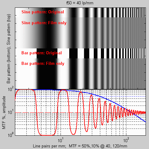 디지털 이미지의 해상도하면 픽셀 해상도를 쉽게 떠올리지만, 실제적 사진/이미지의 선명도는 공간 해상도에 의해 결정된다. 픽셀 해상도는 일정 면적에 픽셀 수만큼의 구분/분해능 개념이고, 실제 이미지의 인접한 두 물체를 구별하는 능력은 공간 해상도(거리 당 주기로 표시되는 '공간 주파수'에 의해 수치화하여 객관적으로 비교 가능하다)에 있다. 실제 디지털 이미지의 ppi(pixel per inch)와 필름의 ppi(point per inch)는 유사한 개념처럼 보이지만, 실제 공간 해상도에서는 꽤 차이를 보이지 싶다. (앞에서 언급한 이미지 샤프니스 또한 이와 같은 의미이며, 흔히, 선명도/Sharpness는 주관적인 느낌에 따른 표현의 성격이 강해서 이를 객관적인 비교 지표라 칭하기 곤란한 지점이 있다고 생각한다) 좀 더 자세한 내용을 인용해서 다루는 것도 좋겠지만, 수다의 논지와 큰 관련이 없어서 각자의 검색으로 대신하는 것이 더 낫겠다. 참고로 주어진 공간 주파수(출력 대비/입력 대비)에서의 상대 대비를 변조 전달 함수(MTH)라고 한다.