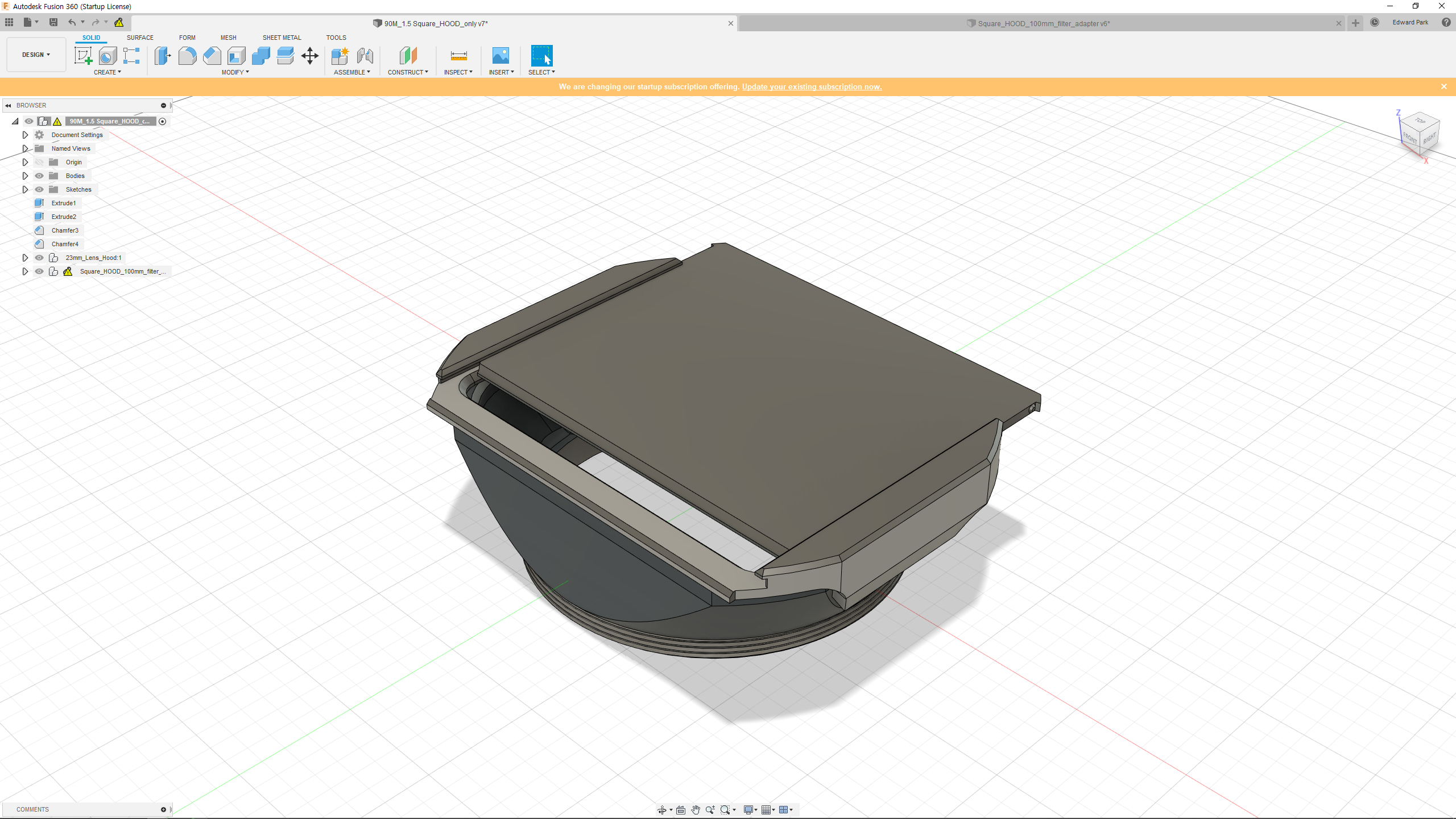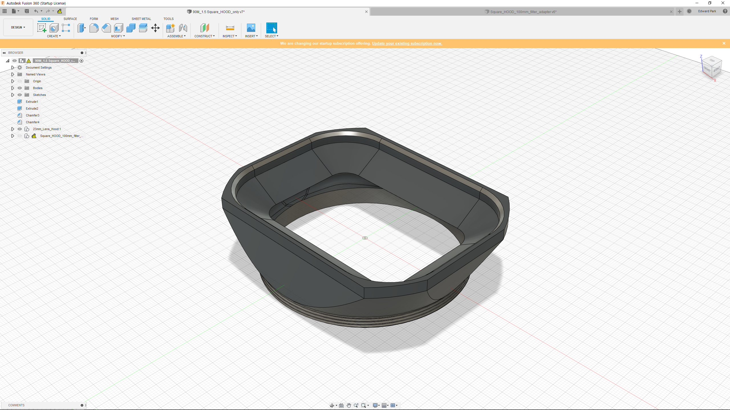 춘래불사춘(春來不似春)의 (화창한 날씨에도 밖으로 나갈 수 없는) 4월의 주말! 달리 할 일이 없어서 시간에 여유가 많았다. 이전에 한번 시도한 바 있지만, 완성도가 낮아 소스 파일을 공유하기 부끄러웠던 '맞춤형 사각 후드'와 '사각 필터 홀더(어뎁터)'의 3D 모델링/프린팅 파일을 보완하고 싶었다.