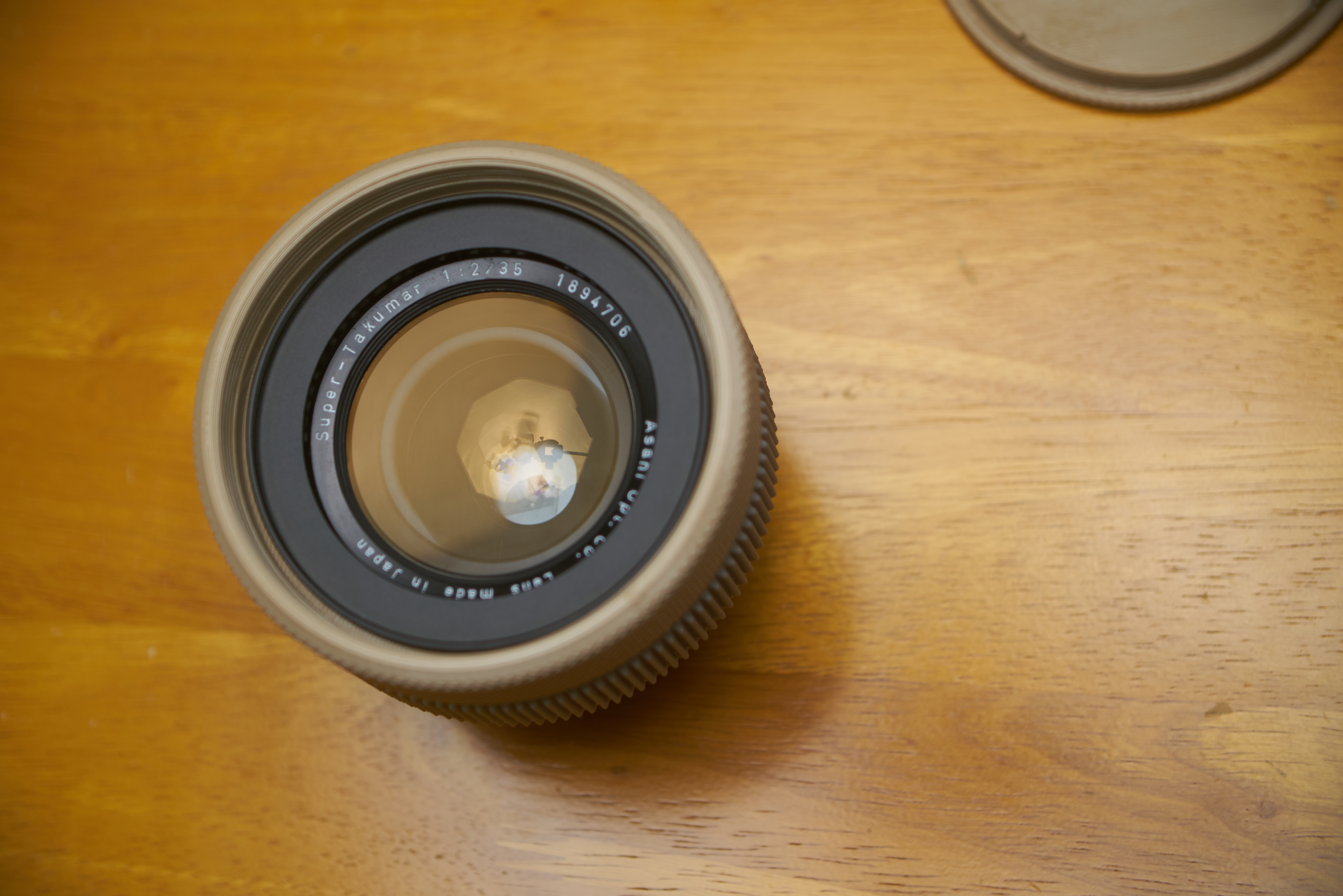 그리 흔하지도 그렇다고 아주 희귀하지도 않은 정도의 Super Takumar 35mm f2 초기형(67mm 필터 규격)은 개인적으로 좋아하고 종종 디지털 카메라에 물려서 즐겨 쓰는 렌즈다. 일단, 35mm 초점거리가 쓰임이 많고, f2의 최대 개방 조리개도 최신 렌즈의 사양에 견주어 크게 뒤처지지 않는다. 타쿠마 렌즈 특유의 단단한 만듦새와 준수한 조작감, 역 초점 설계(레트로 포커스 타입)로 호박색으로 빛나는 렌즈 앞면(입사구)이 시원해 보인다. 그리고 나름 고화소 디지털 카메라(소니7R2)에 물려 사용해도 꽤 좋은 해상력의 불만 없는 사진을 얻을 수 있었고, 왜곡도 잘 억제된 균형 잡힌(올드 렌즈의 특징과 쓸만한 광학 성능의) 렌즈라고 생각한다.