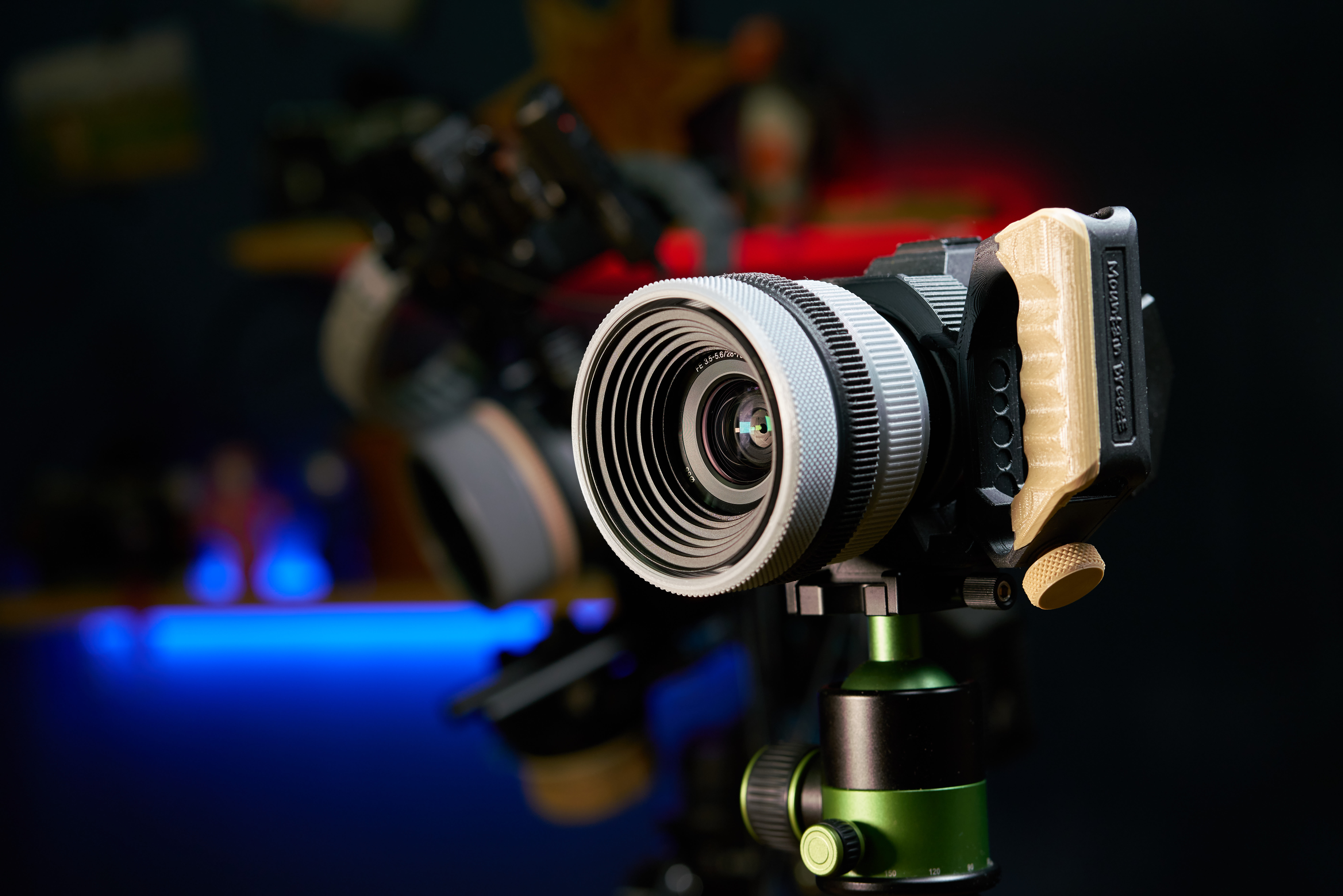 렌즈 하우징의 후면 부분은 Arca Swiss 클램프에 장착 할 수 있는 발로 설계되어 삼각대에 직접 고정될 수 있습니다. (이것은 MetaBones 어댑터와 크기가 비슷하도록 설계되었습니다)