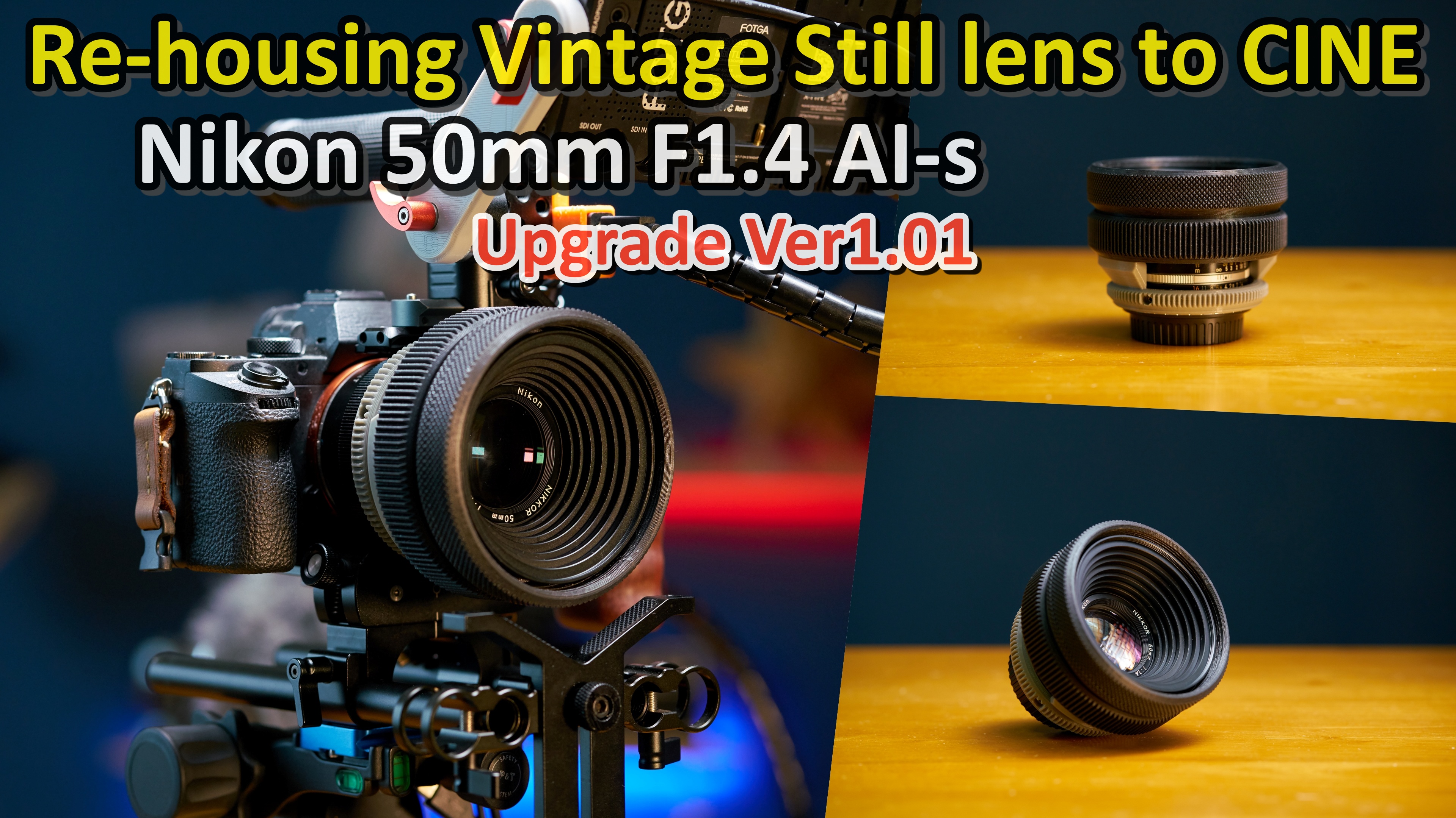 CINEMATIC 비디오 촬영을위한 빈티지 렌즈 하우징 업그레이드 니콘 50미리 f1.4 / Upgrade - Vintage Lens hou