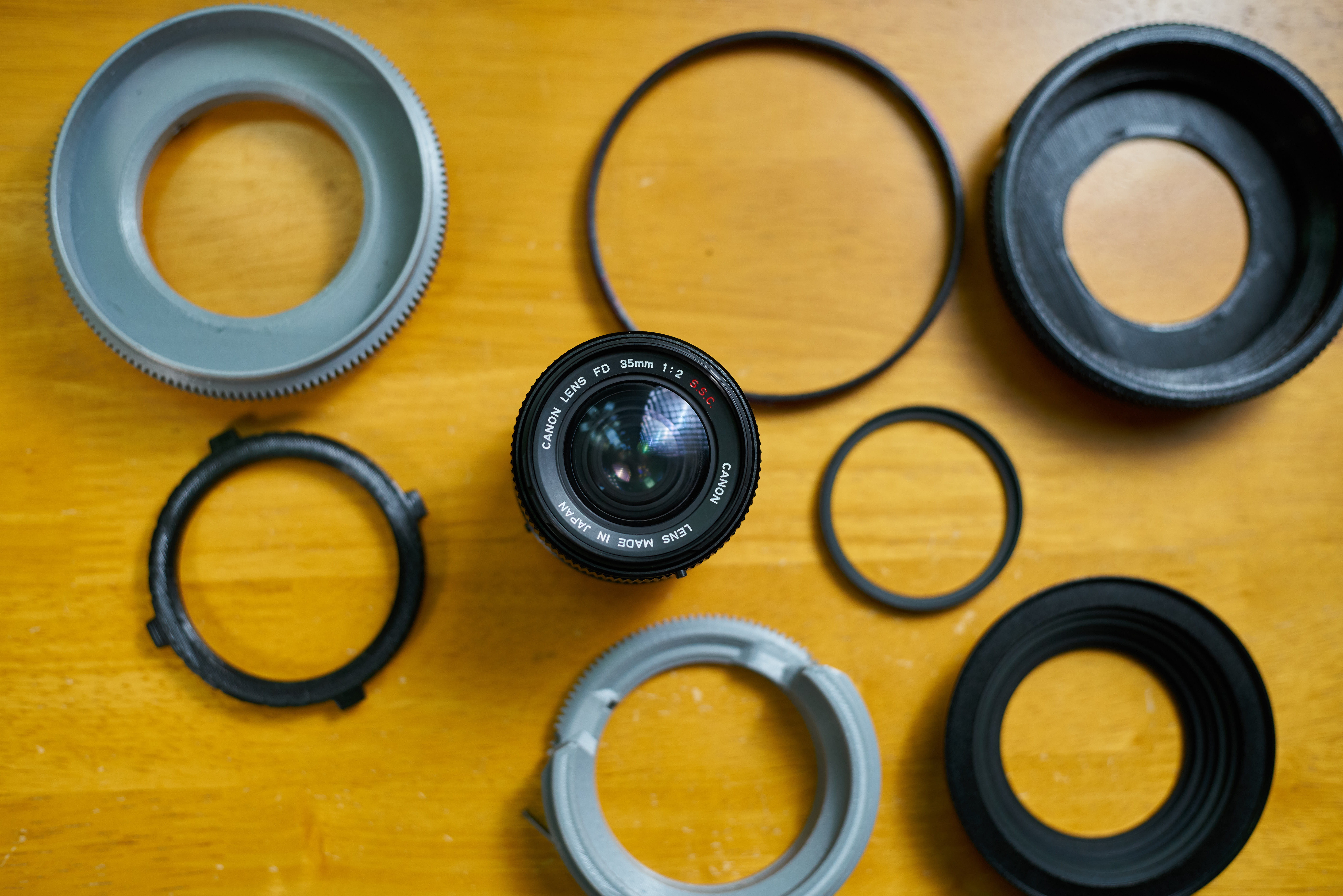 하지만 원래 렌즈 마운트를 새 것으로 교체하는 방법이 마음에 들지 않았기 때문에 개인적으로 FD 마운트를 그대로 유지했습니다. 캐논 FD의 breech lock 방식은 스틸 카메라의 빠르고 쉬운 렌즈 교체에 그다지 매력적이지 않지만, 동영상 촬영을 위한 튼튼하고 안정적인 장착 방식이라는 장점이 있으며 아주 잘 만들어진 렌즈 마운트 중 하나라고 생각합니다.