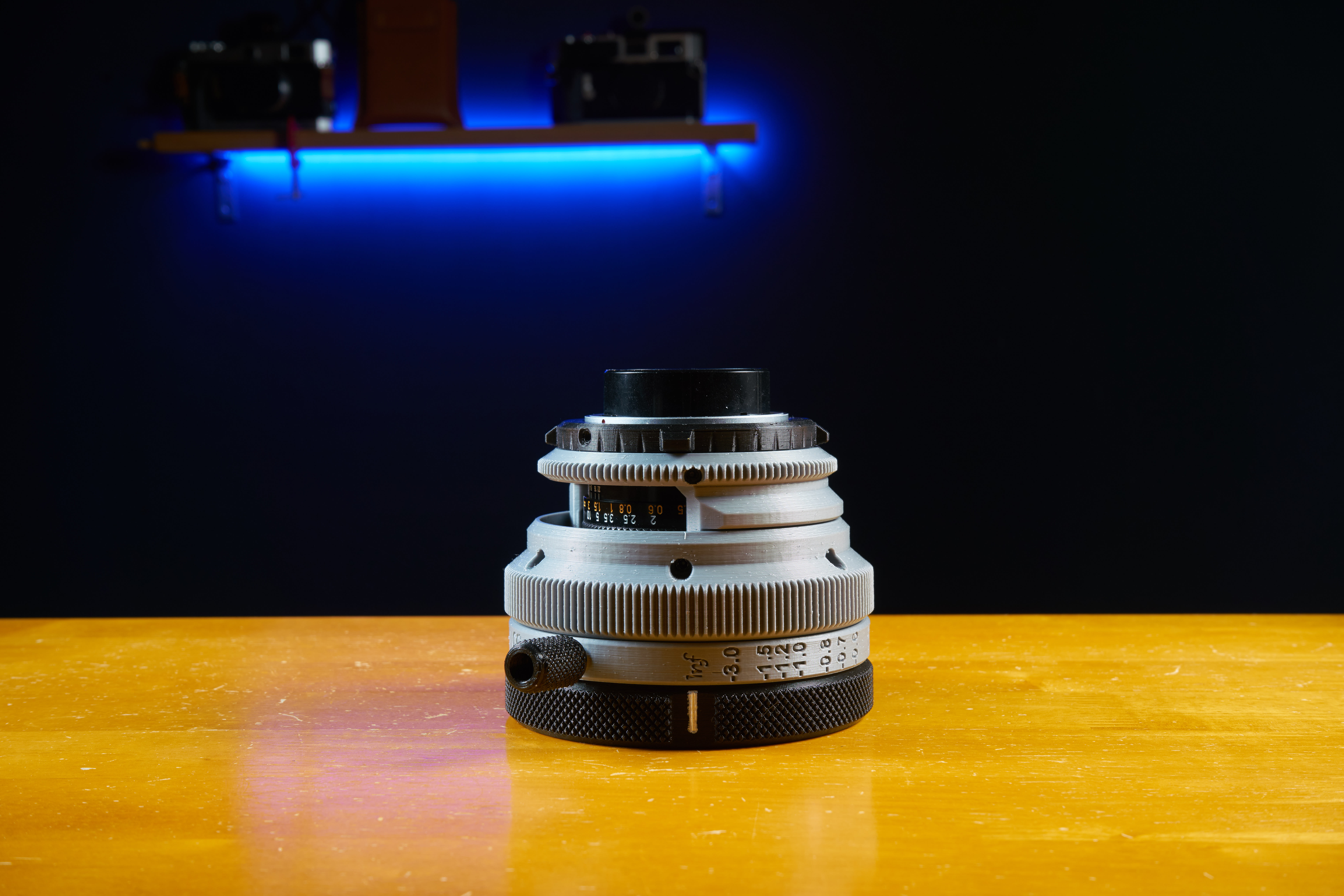 나는 k35 Cine Prime에 경의를 표하는 렌즈 세트를 만들고 싶었습니다. k35 Cine Prime은 대부분의 광학 디자인을 Canon FD 렌즈와 공유하므로 Cine 렌즈 표준에 맞게 Canon FD Prime 렌즈를 다시 수용하려고했습니다. 그러나 몇 가지 문제로 인해 K35 Cine Prime과 유사한 수준에 도달하지 못합니다. 35mm 초점 거리 K35 Cine Prime (K35 35mm T1.4)은 FD 스틸 렌즈에서 찾을 수 없습니다. 그래서이 하우징에서는 FD 35mm f / 2 렌즈로 교체되었습니다.