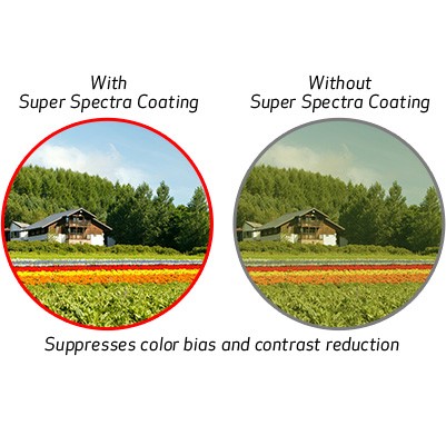 슈퍼 스펙트럼 코팅 (Super Spectrum Coating) 은 이 엄격한 색 재현 표준을 충족하기 위해 개발된 기술입니다. 이 다층 코팅은 렌즈 표면의 반사로 인한 "고 스팅"효과를 제거하여 안정적인 특성을 가진 내구성 있고 내구성 있는 렌즈 표면을 만듭니다. 고 스팅 및 반사에 특히 취약한 디지털 카메라에 사용되는 슈퍼 스펙트럼 코팅 (슈퍼 스펙트럼 코팅)은 이상적인 색상 균형을 제공합니다. 코팅 개선을 위한 우리의 노력은 계속되어 전문 사진작가의 수정 요청 외에도 날씨와 그 변화에 대응할 수 있습니다.