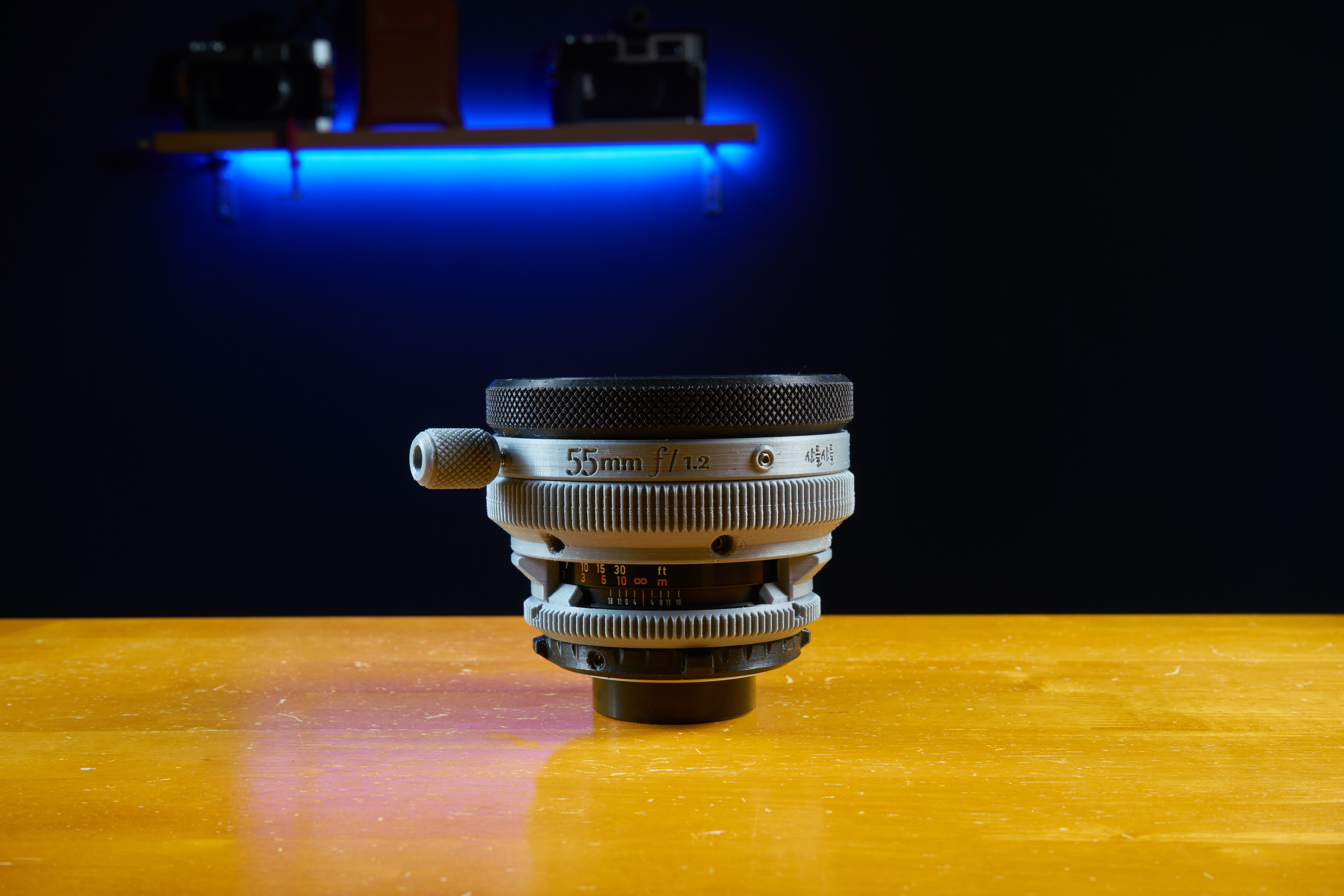 나는 k35 Cine Prime에 경의를 표하는 렌즈 세트를 만들고 싶었습니다. k35 Cine Prime은 대부분의 광학 디자인을 Canon FD 렌즈와 공유하므로 Cine 렌즈 표준에 맞게 Canon FD Prime 렌즈를 다시 수용하려고 했습니다. 그러나 몇 가지 문제로 인해 K35 Cine Prime과 유사한 수준에 도달하지 못합니다. 55mm 초점 거리 K35 Cine Prime (K35 55mm T1.4)은 FD 55mm f1.2 '비구면'의 광학 설계와 비슷하지만, 이 렌즈는 희귀하고 비싸고 방사능 검출되는 문제가 있기 때문에 부득이하게 비구면이 아닌 보통의 FD 55mm f1.2 SSC 렌즈를 선택해야 했습니다.