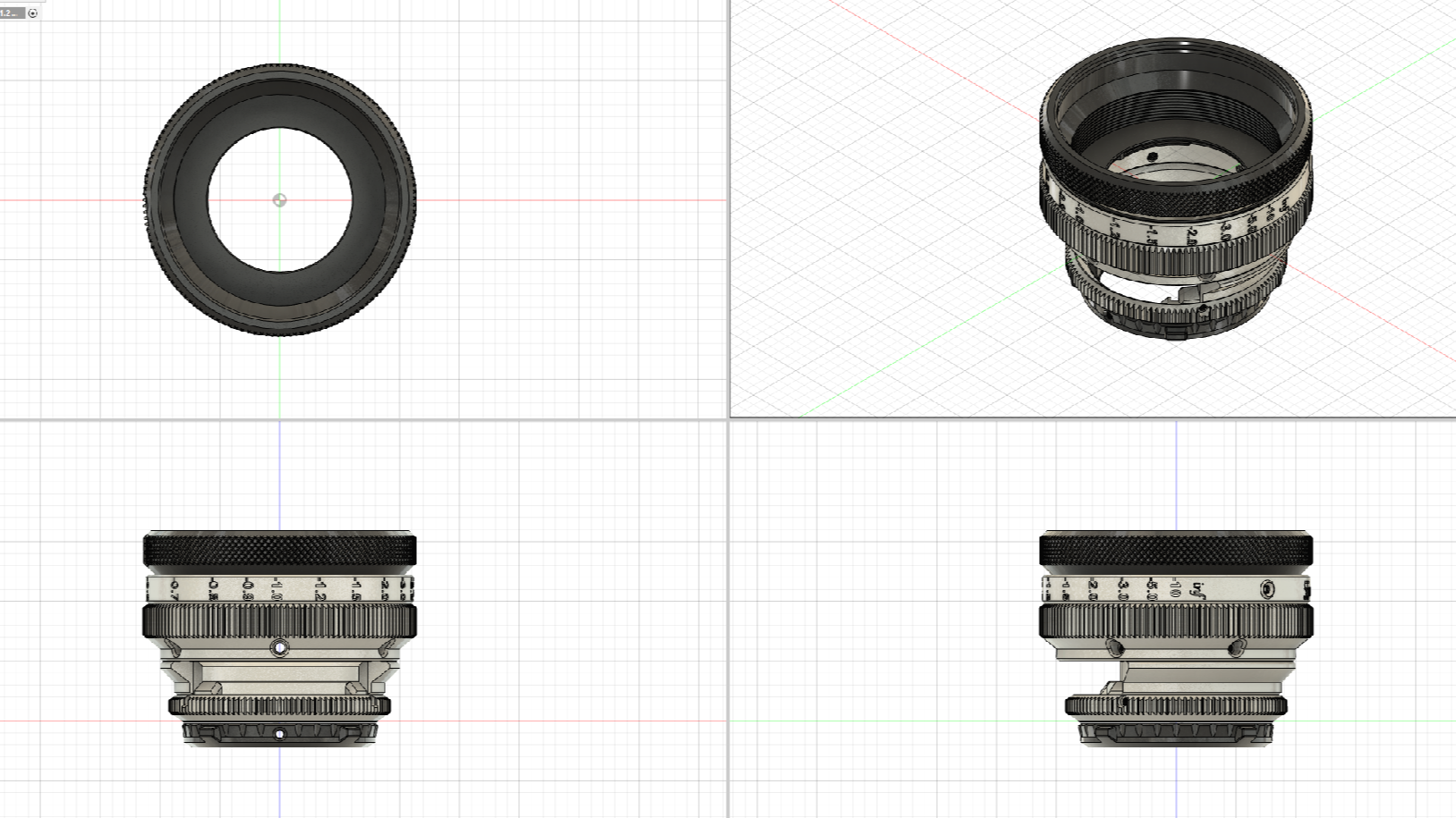 매번 비슷한 디자인을 반복하는 것이 지겨워서 실용적이고 새로운 아이디어를 추가하고 싶었습니다. 그중 하나는 수동 초점의 유용성을 높이기 위해 회전 가능한 초점 위치(임의의 두 지점을 설정할 수 있는) 표시기 링의 디자인입니다. (포커스 거리 표시 부분과 장착 위치가 겹치므로 둘 중에 하나만 선택적으로 장착할 수 있습니다)