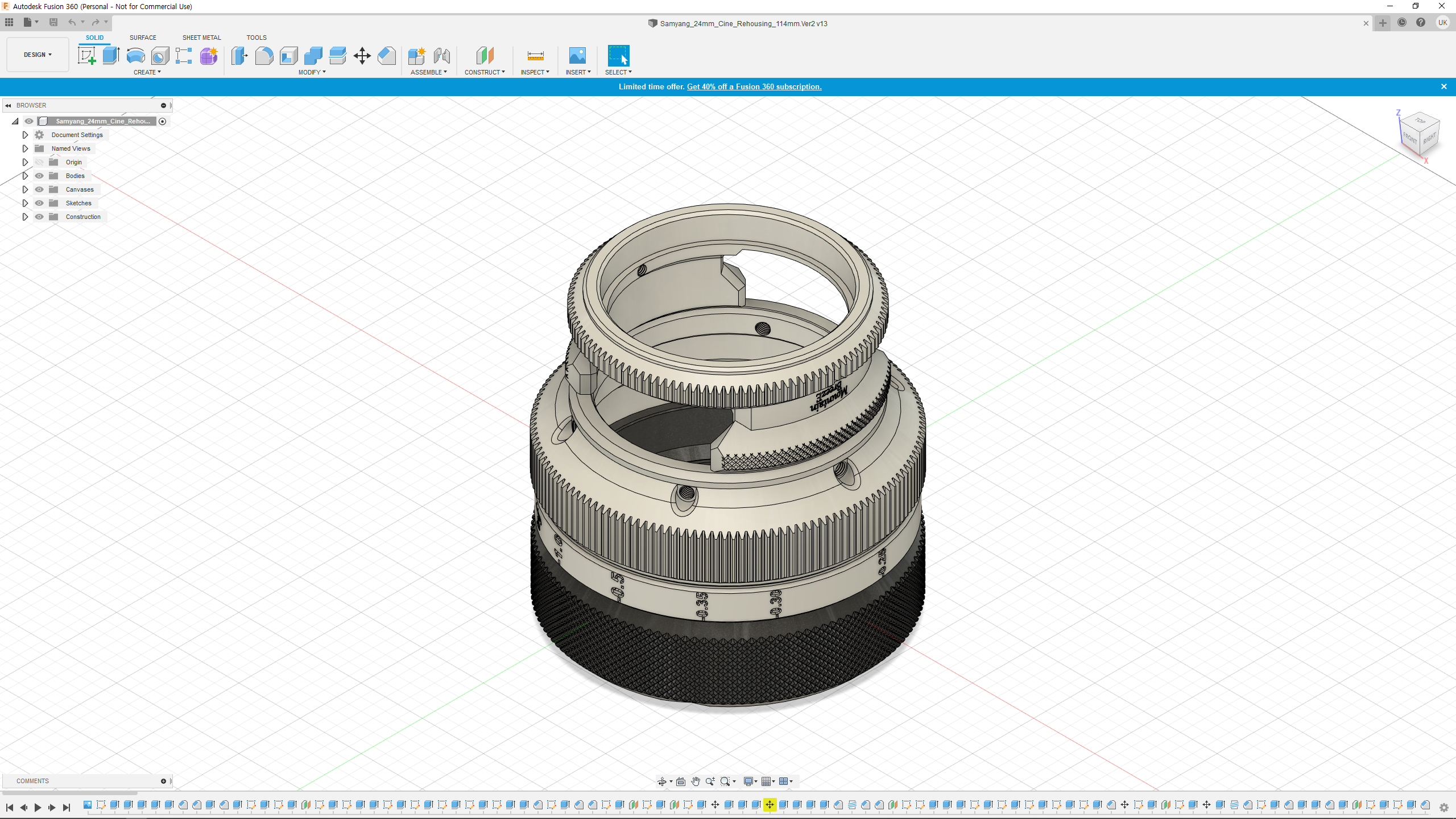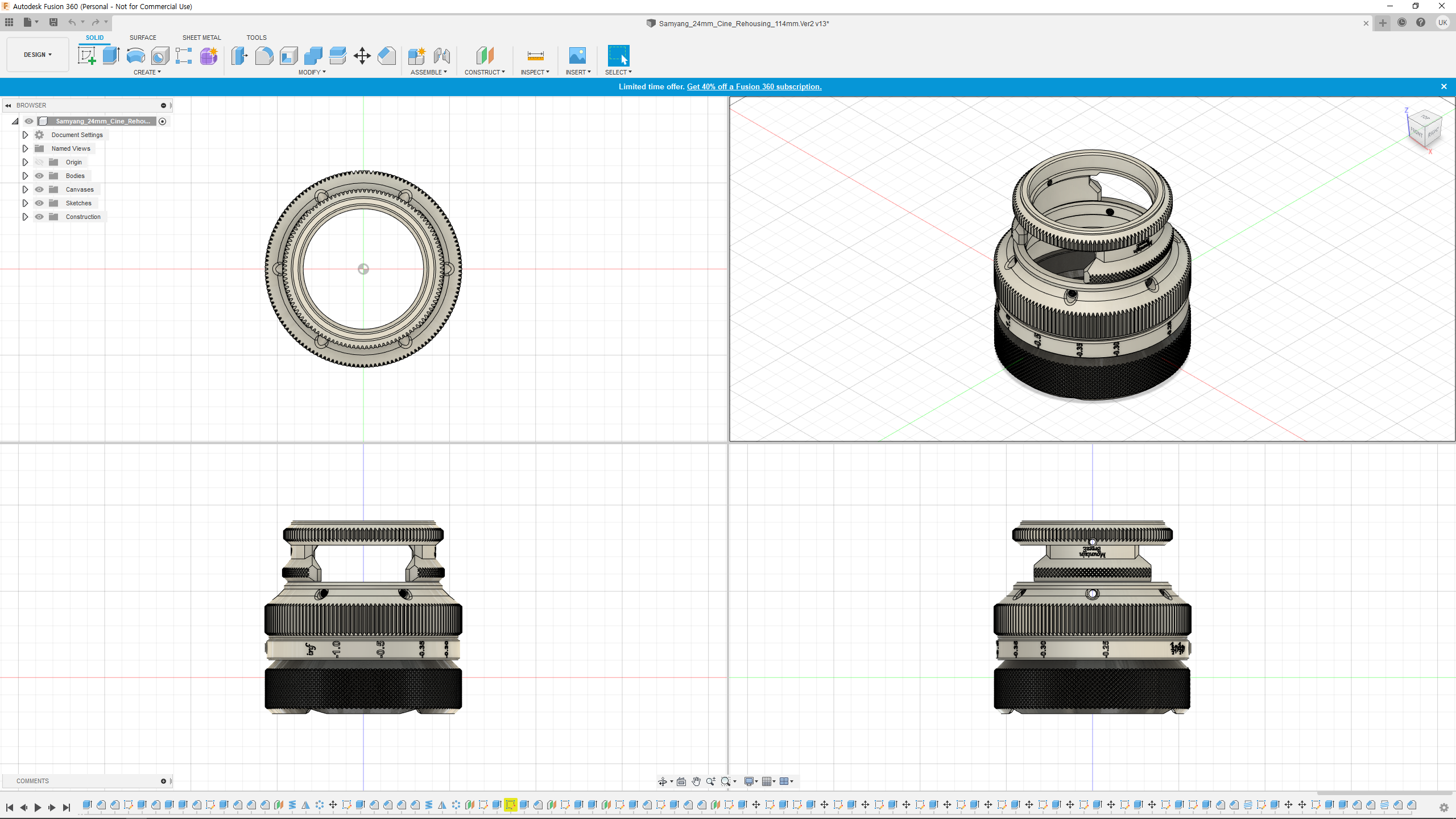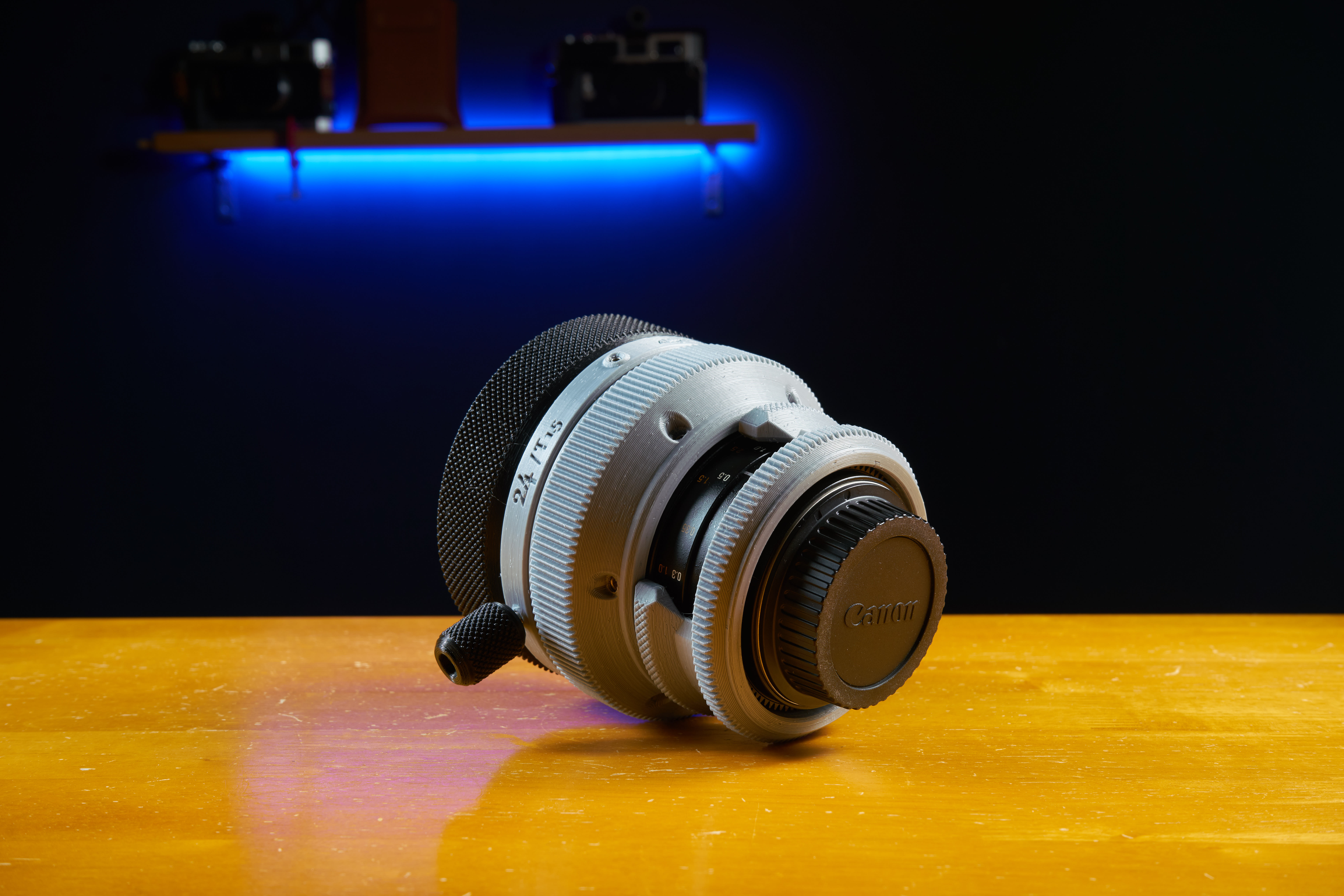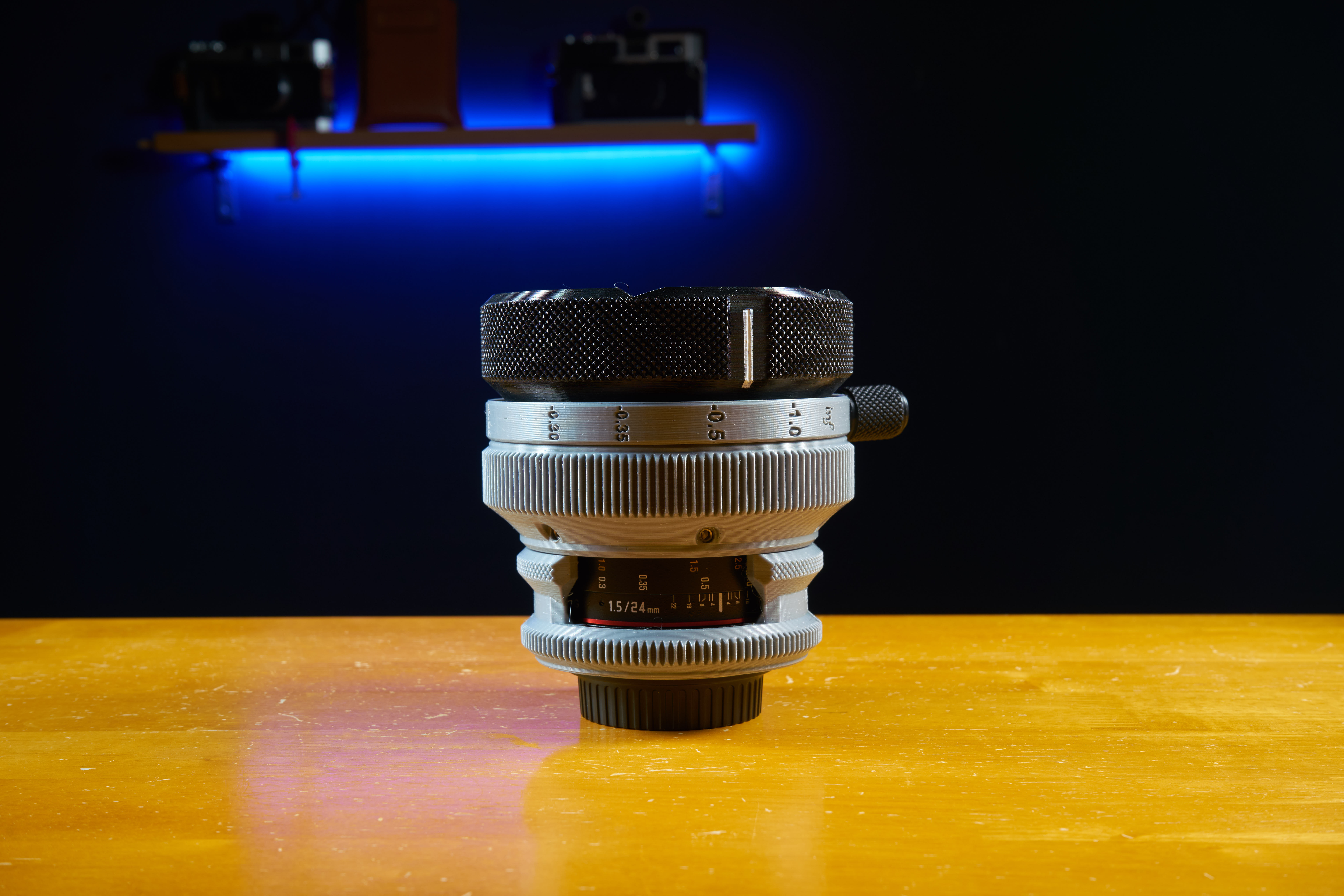 이 렌즈는 표준 기어를 가지고 있으며 시네 렌즈로 정식 명칭으로 표기되어 있지만 실제 사용 시 초점 기어의 외경이 작기 때문에 매번 팔로우 포커스 나 렌즈 지원 설정을 재조정하는 것이 불편했다. 이전에 제작된 Canon FD 렌즈 하우징 (K39 Cine Prime 용 Homage 세트)과 동일한 외관 (사양)을 적용하여 렌즈 교체와 같은 이점을 높이고 싶었습니다. 그리고 외관 디자인을 좀 더 실용적으로 만들고 싶었습니다.