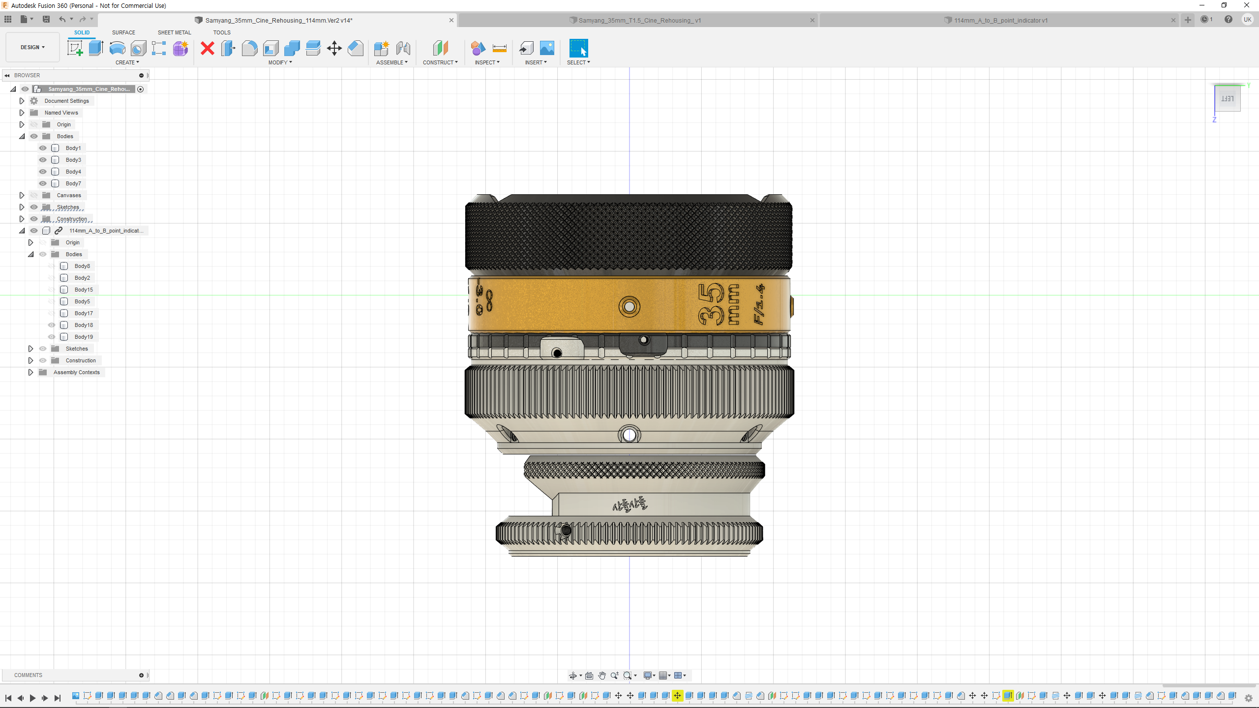 이 렌즈 하우징은 외경이 114mm이고 초점 기어도 시네마 렌즈에 적용된 0.8M 표준 기어 피치로 적용됩니다. (외경 114mm / 141T) 렌즈 외경이 클수록 휴대와 다루는 것에 부담이 커지지 만 포커스 링의 외경이 클수록 초점을 미세하게 조정할 수 있습니다. 다른 시네마 렌즈 전용 보조 장치를 사용할 때도 유용합니다. 여러 M5 및 M4 표준 그럽 나사를 사용하여 단단히 고정되도록 설계되었습니다. 전면에 사용되는 필터 스텝 업 링은 일반 원형 필터를 쉽게 사용할 수 있도록 설계되었으며 렌즈 하우징의 전면 부분을 단단히 고정하는 역할도 합니다. (내경 95mm 필터 스레드 - 77-82mm + 82-95mm step up 어댑터는 아래 링크 참조).