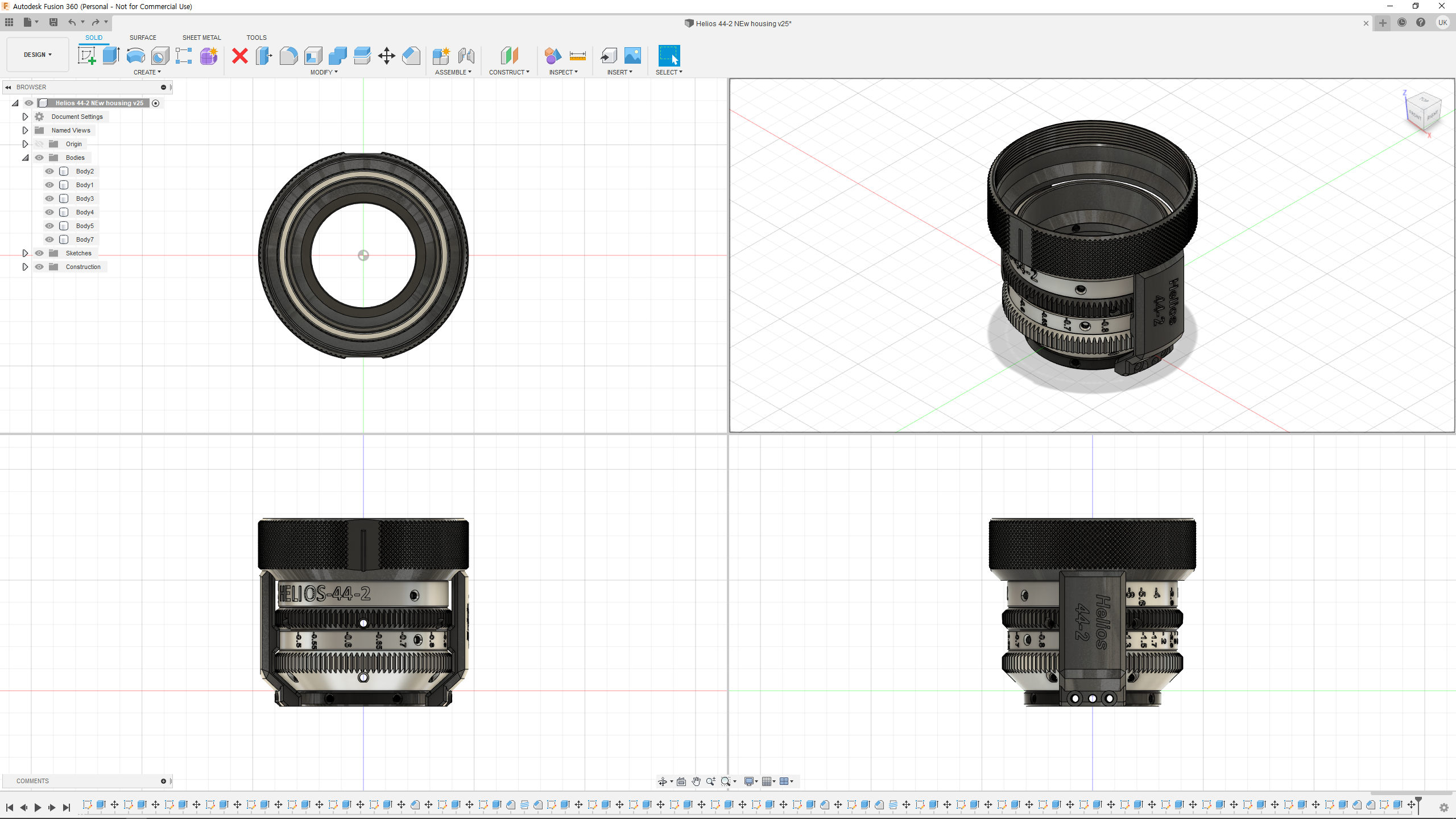 매번 비슷한 모델링을 반복하는 것이 지겨워 실험적이고 실용적인 아이디어를 하나씩 적용하고 싶습니다. (물론 부작용으로 대충 마무리할 수 있습니다.) 이번에는 (렌즈 앞면이 회전하여 편광 필터 나 매트 박스를 연결하고 사용하는 데 문제가있는 일부 렌즈) 렌즈가 회전하지 않도록 전면을 개선하는 디자인을 시도하고 싶었습니다. (Helios-44-2는 이런 유형의 렌즈가 아니지만 현재 제 렌즈 목록에 적합한 렌즈가 없습니다)