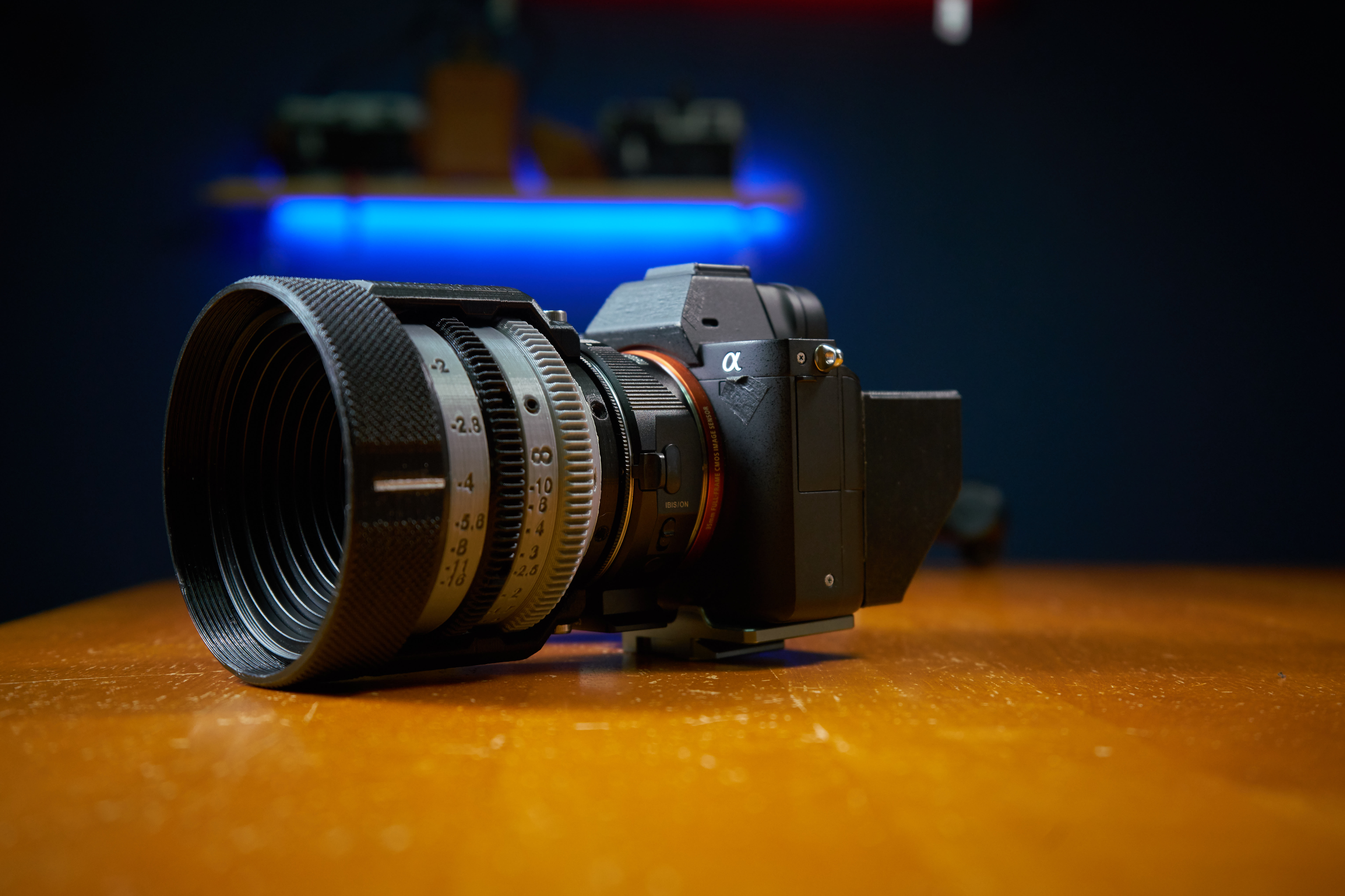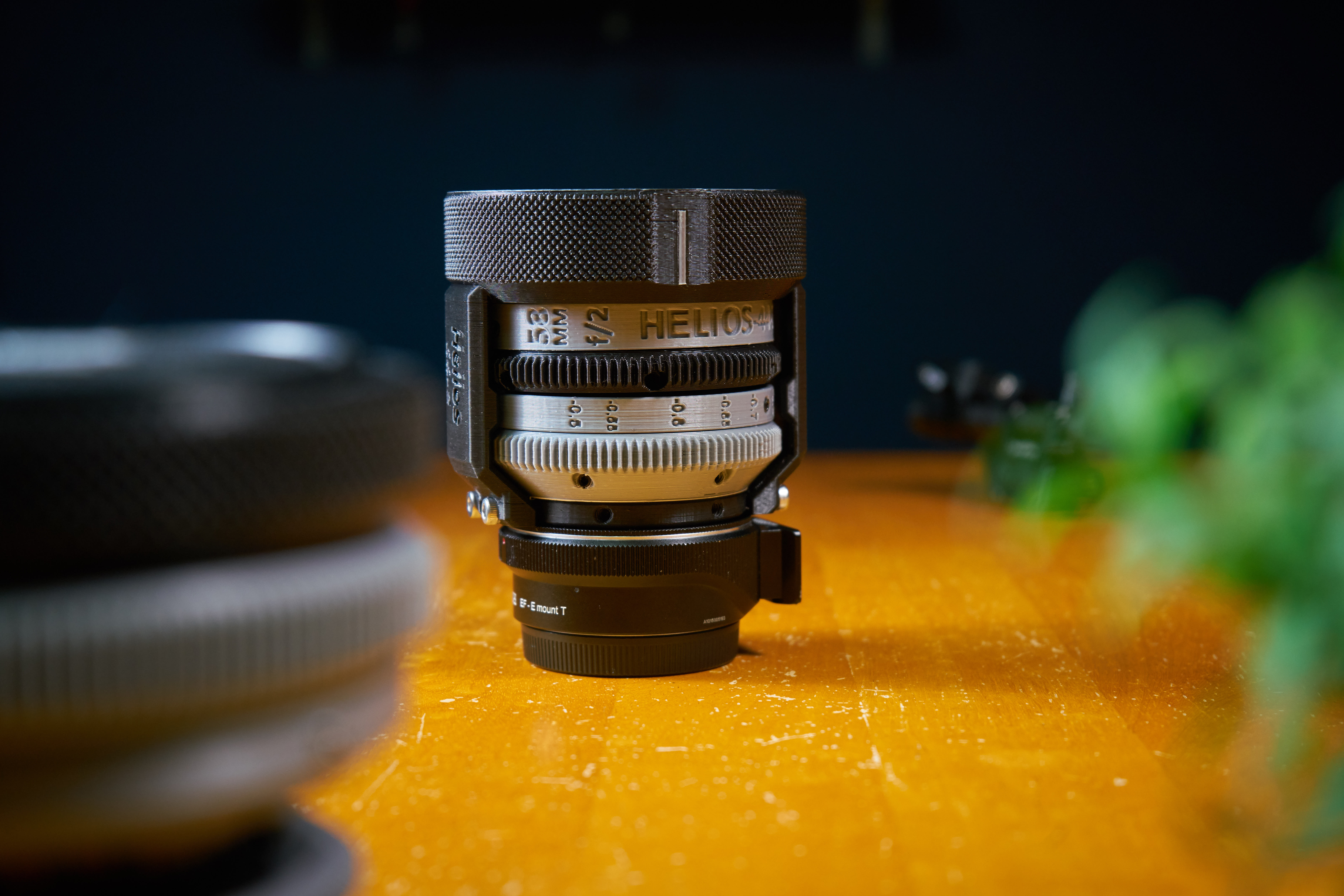 이 렌즈 하우징은 Helios-44-2, 58mm f / 2 용으로 맞춤 설계되었습니다. PL 마운트 용으로 설계되었으며 일부 부품은 일반 판매용 금속 부품을 사용하여 견고하게 장착할 수 있으며