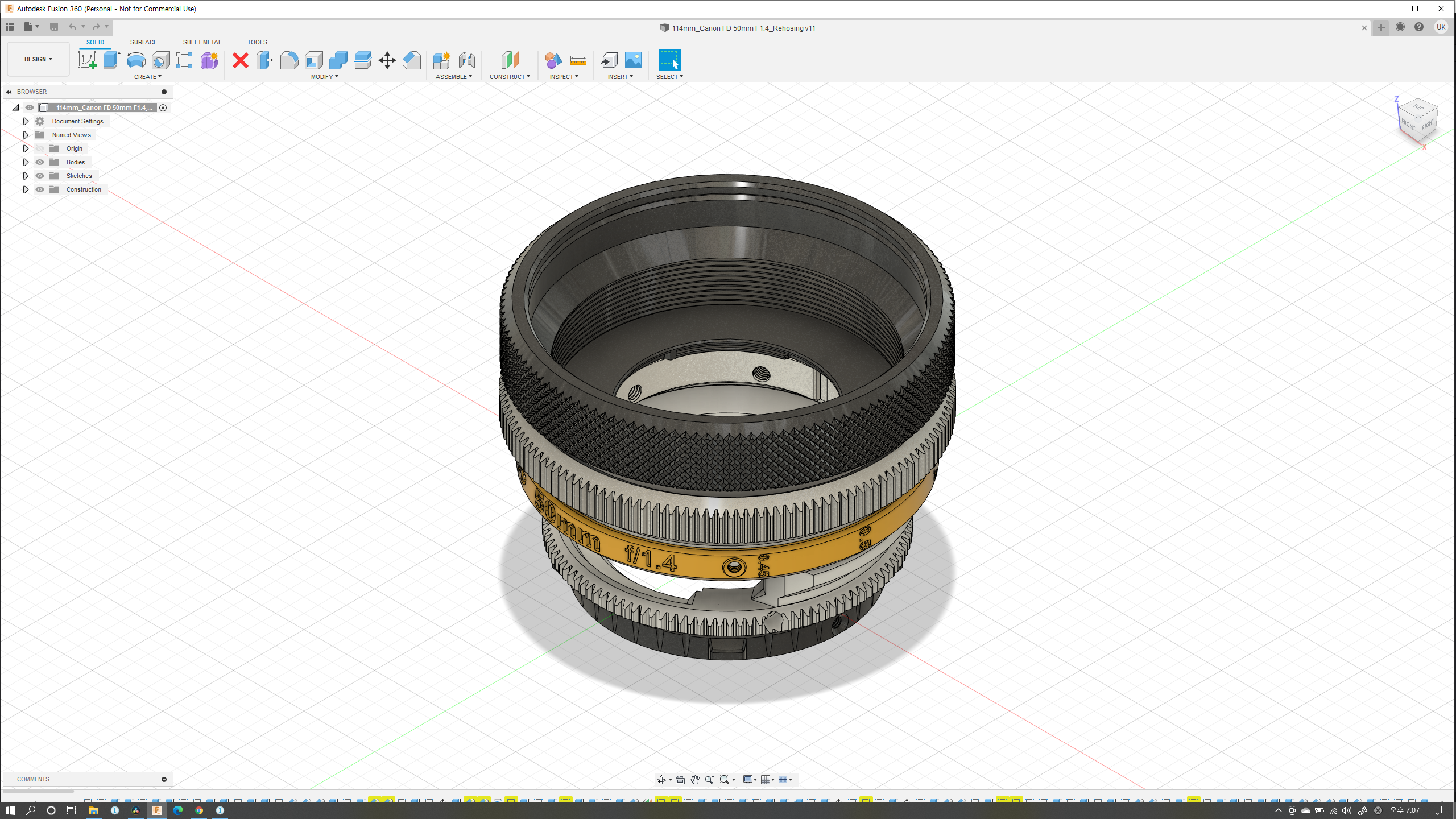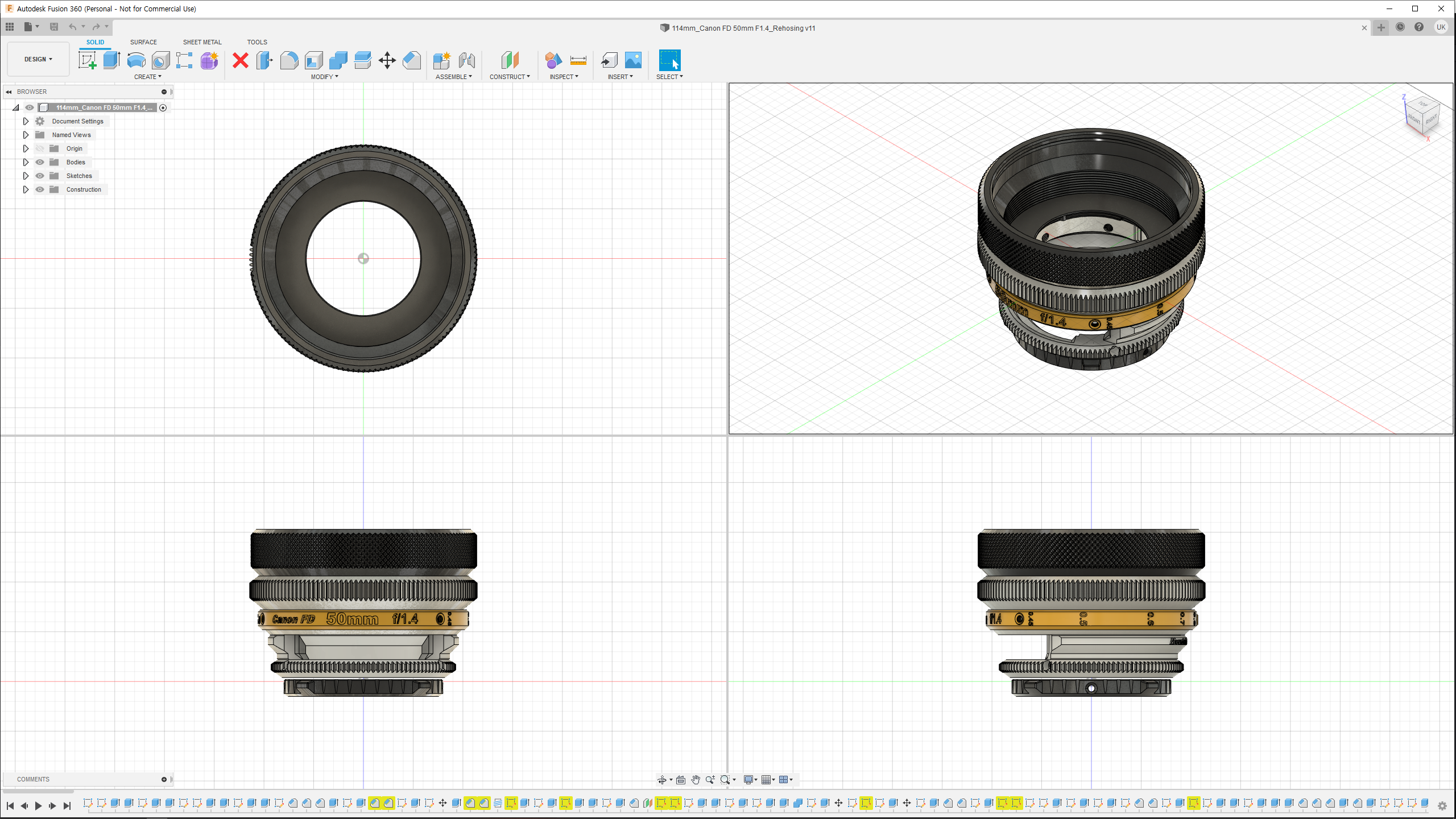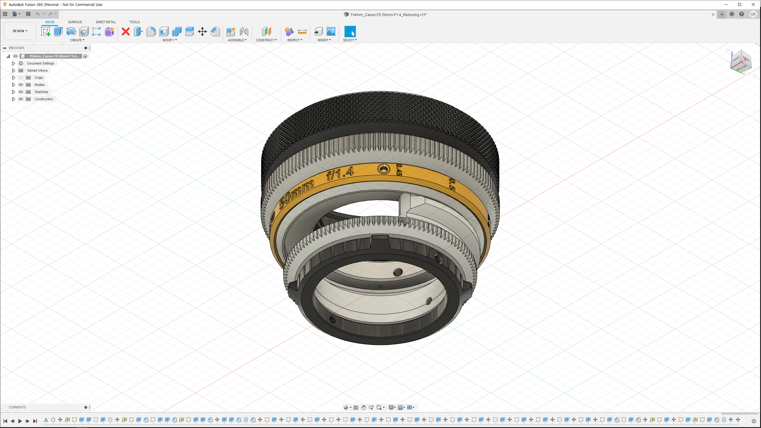 저는 k35 Cine Prime에 경의를 표하는 렌즈 세트를 만들고 싶었습니다. k35 Cine Prime은 대부분의 광학 디자인을 Canon FD 렌즈와 공유하므로 Cine 렌즈 표준에 맞게 Canon FD Prime 렌즈를 다시 장착하려고했습니다. 계획된 첫 번째 렌즈 세트 중 캐논 FD 50mm는 계획되지 않았습니다. 그러나 가장 인기 있고 많은 사람들이 사용하고 있으며 여전히 사용하기를 좋아하는 이 렌즈의 재 하우징이 더 유용할 것이라고 생각했습니다. (또한 구독자 의견 요청도 받았습니다.) 그래서 저는 이 하우징을 제가 처음 구상 한 렌즈 세트의 추가 버전으로 디자인했습니다. (참고로 K35 씨네 프라임 렌즈 세트는 18mm 24mm, 35mm, 55mm, 85mm로 구성되어 있습니다. 18mm 렌즈는 아직 스틸 렌즈로 출시된 적이 없어서 불가능하며 향후 85mm 렌즈를 추가해 이 시리즈의 재 주택 작업을 마무리할 생각입니다. )