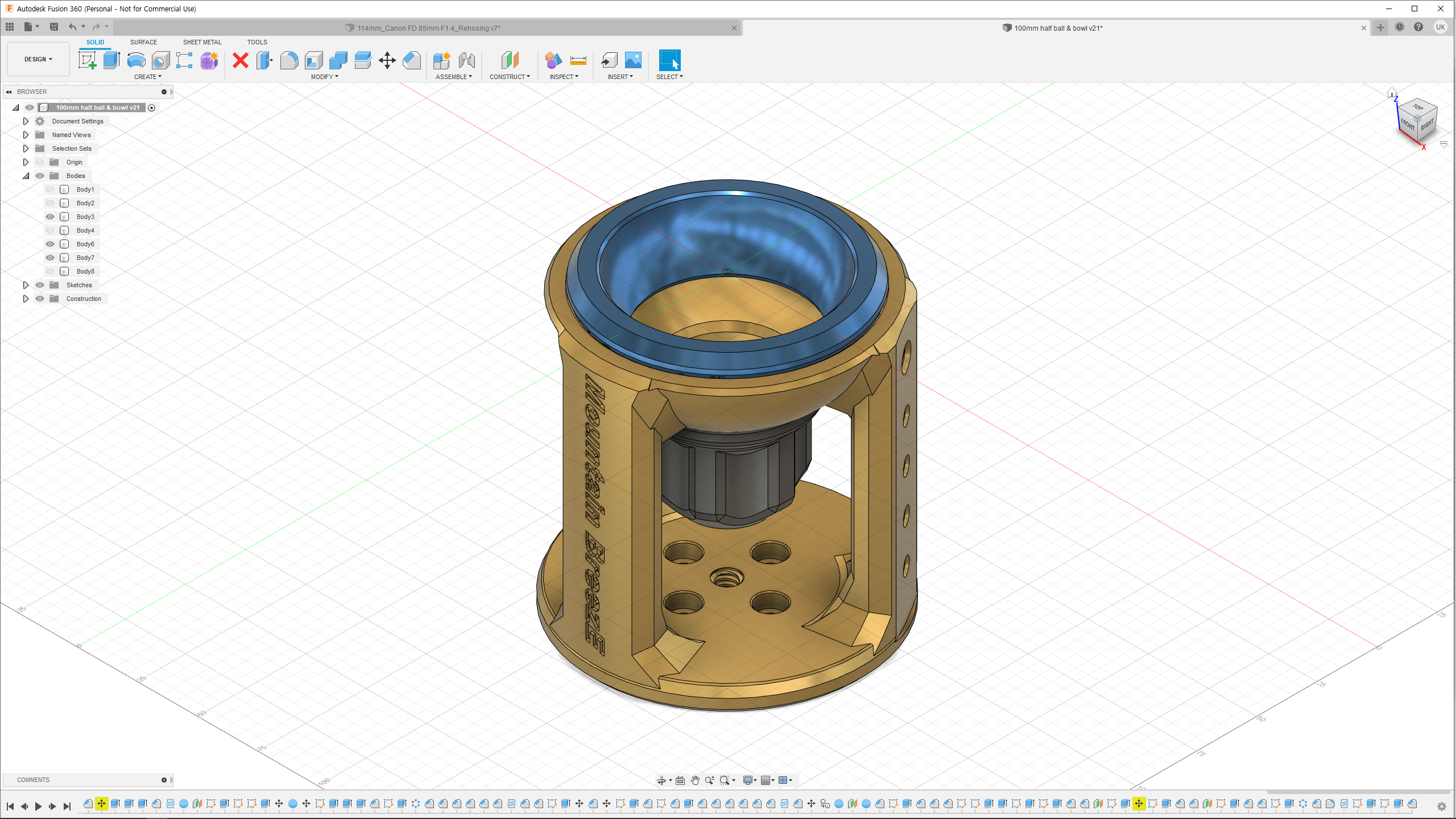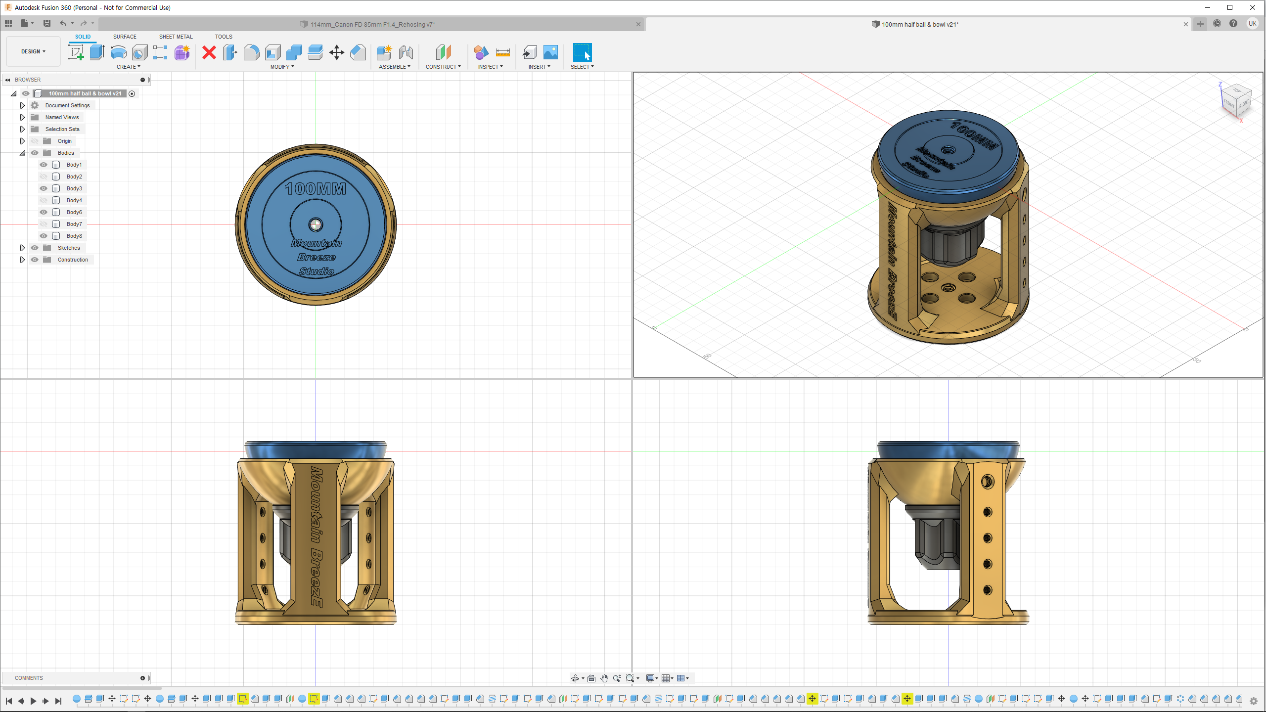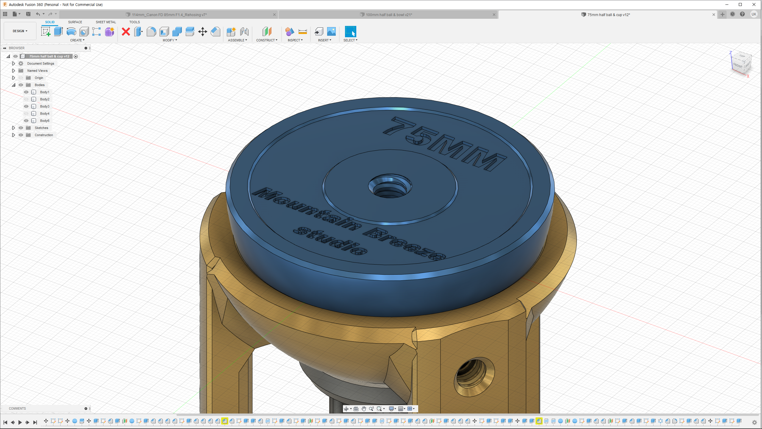 (개인적으로 사용하는 삼각대에 맞는 보울 어댑터를 디자인했지만 연결 / 고정 방법이 인정되는 표준이 아니고 특정 삼각대를 추천할 생각이 없어 공유 파일에서 제외했습니다.)