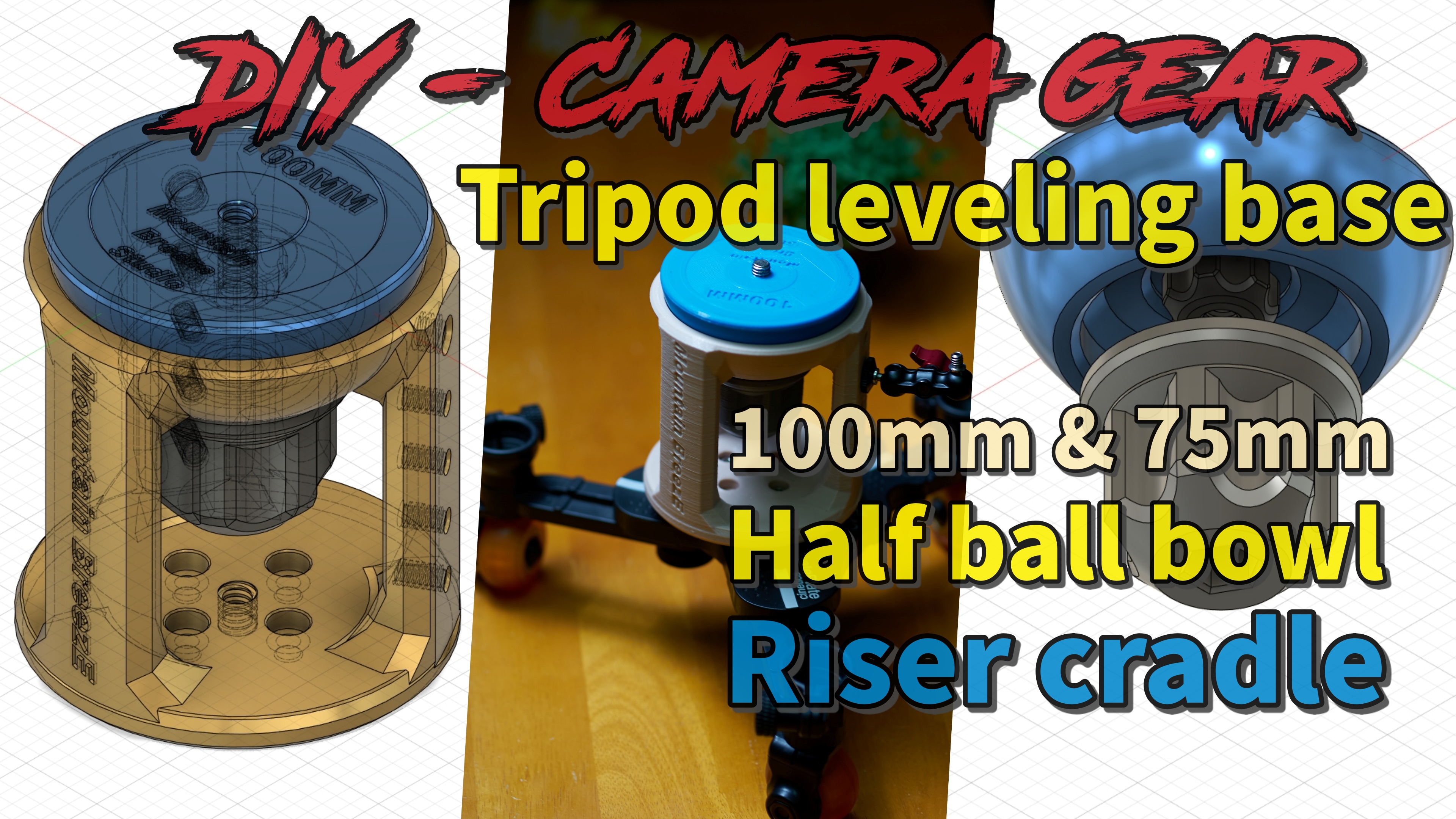 그래서 기존의 100mm 또는 75mm 하프 볼 보우 어댑터와 호환되는 가벼운 레벨링 하프 볼 및 보울 어댑터와 라이저 크래들을 만들고 싶었습니다.