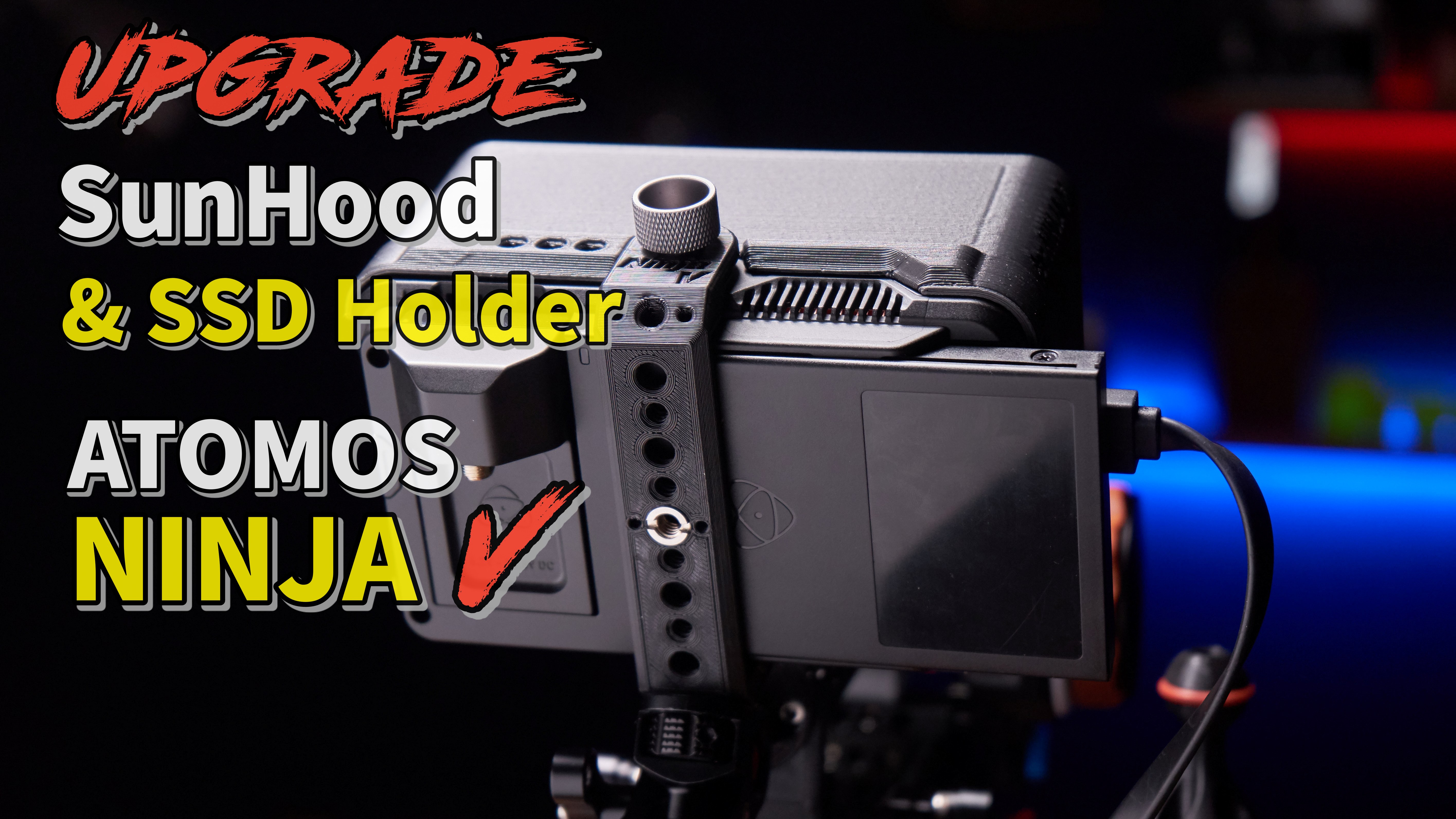 후드의 이전 버전 디자인에 대한 일부 수정. (차양의 길이를 줄이고 컴팩트 한 형태로 수정) SSD 홀더를 추가하여 활용도를 높일 수 있도록 설계되었습니다. (Ninja V 뒷면의 SSD 홀더에 1/4 "나사 구멍 추가)
