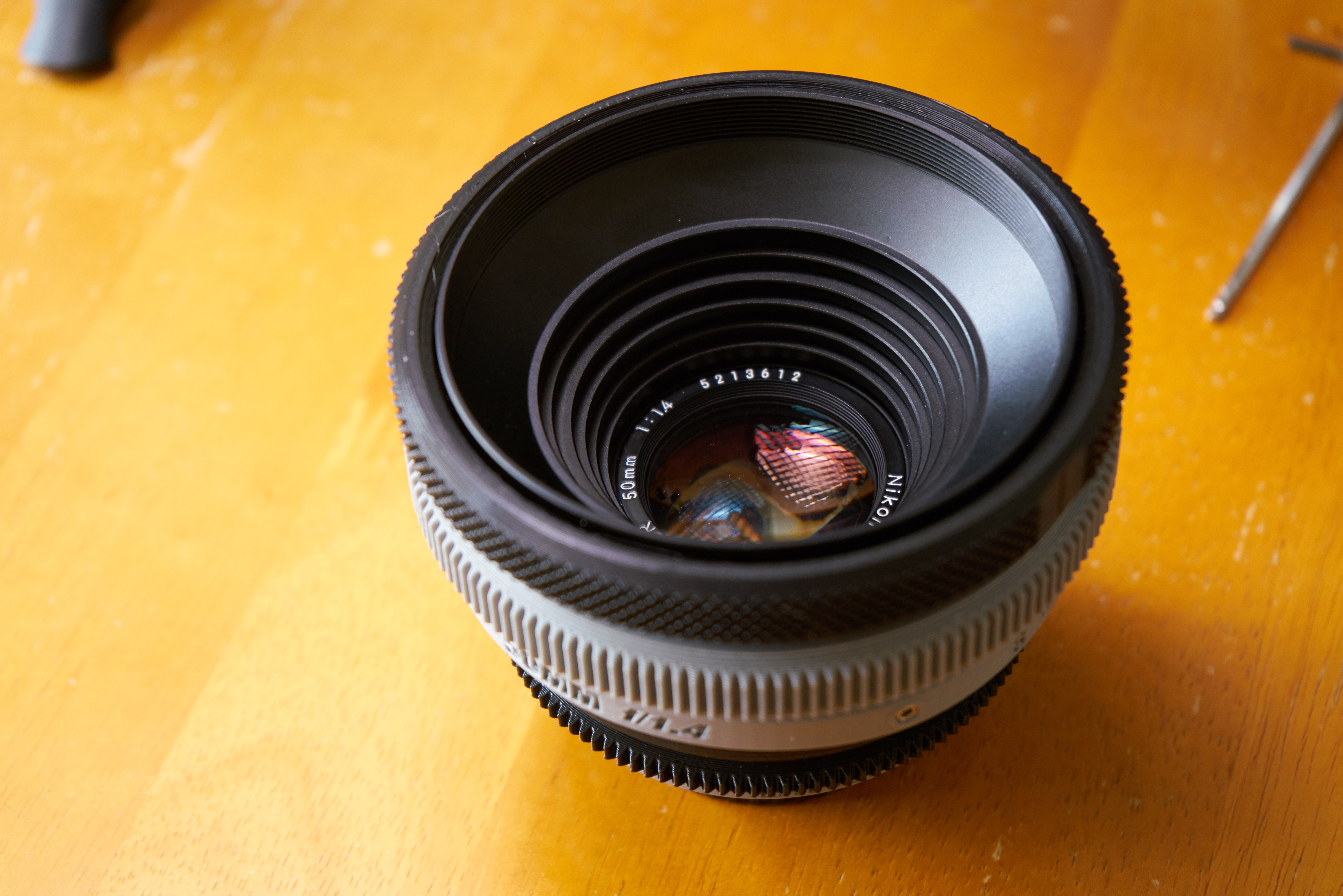이 렌즈 하우징은 "Nikon nikkor 50mm f1.4 AI-S"에 최적화되어 있습니다.