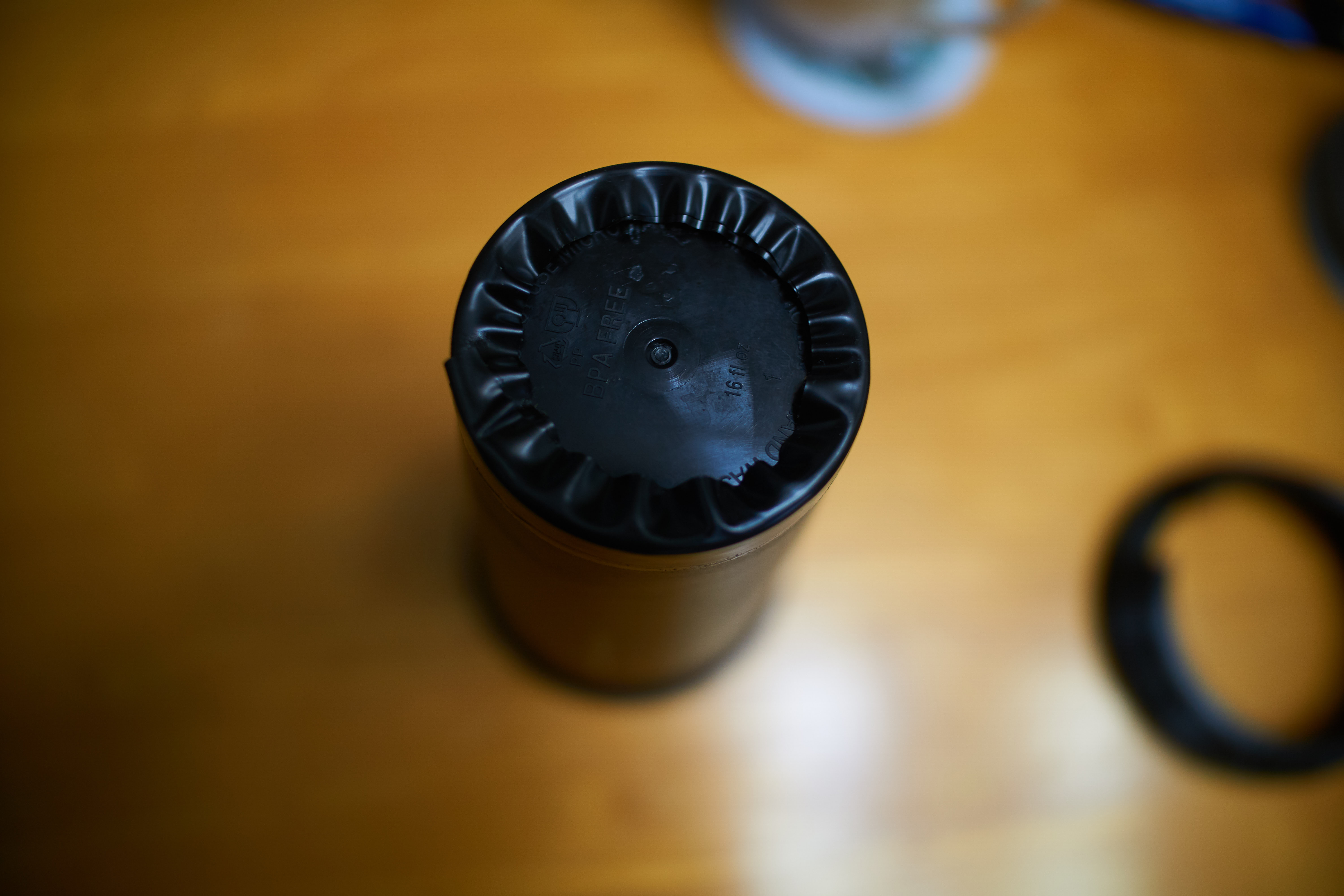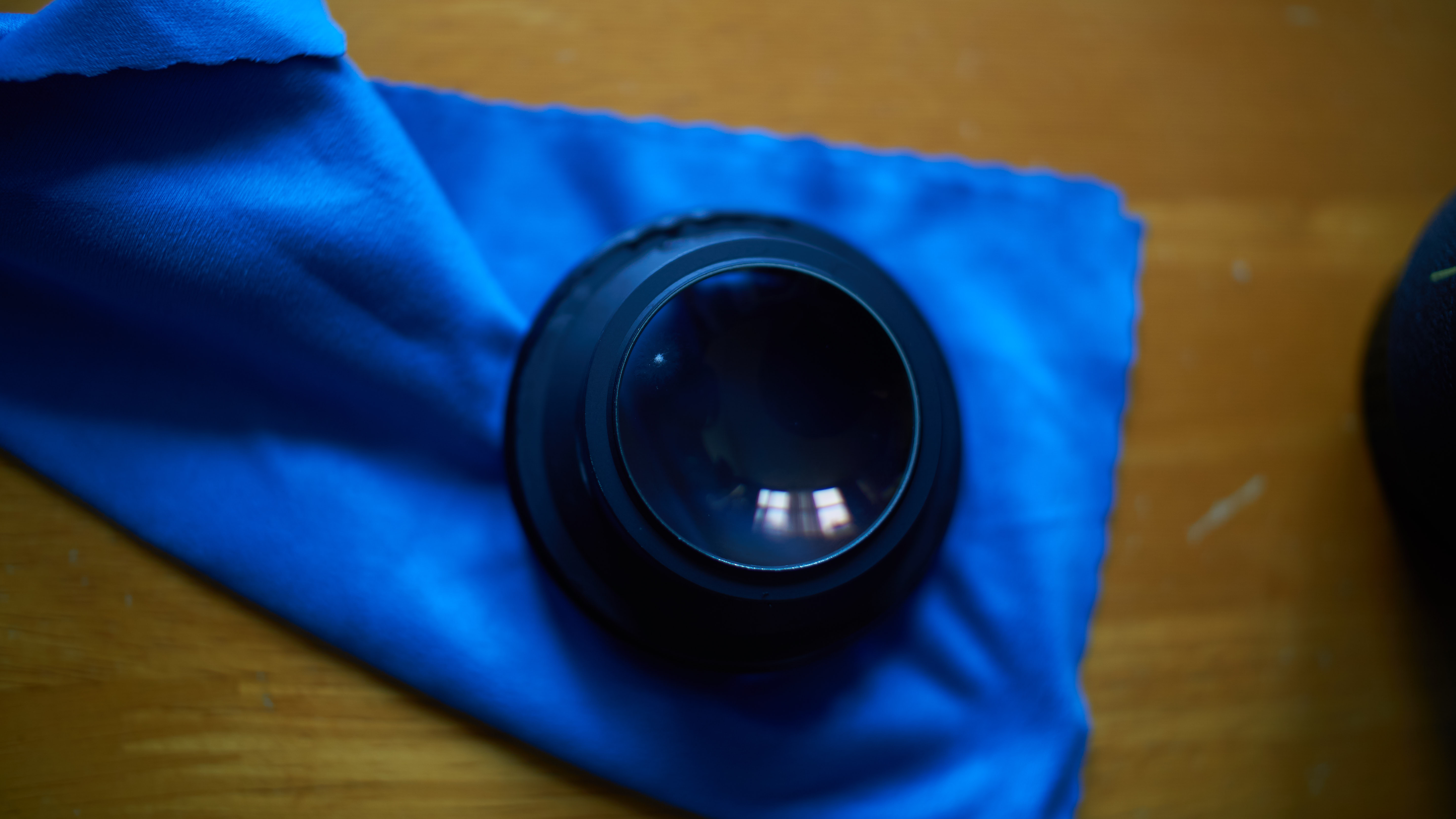 렌즈 전면 요소군과 조리개 사이에 곰팡이가 있으므로 \ 렌즈 전면에서 분해를 위해 렌즈 전면의 네임 링을 제거부터 순차적으로 진행했다. 이는 이전 수리 팁 방법으로 적당한 크기의 원형 뚜껑이나 컵에 고무 재질의 절연 테이프를 감싸서 마찰력을 높인 후 시계 반대 방향으로 돌려서 제거했다. 렌즈 분해 전용의 고무를 사용하는 것이 좋지만, 이 방법도 소모 값이 거의 없고 꽤 유용해서 자주 활용한다. 렌즈 전면 요소의 코팅에 문제가 발생하지 않도록 조심해서, 그리고 한 번에 해결하려고 하지 말고 인내심을 발휘해서 여러 번 시도하며 돌려주는 것이 좋다. 만약 렌즈 전면에 절연 테이프의 끈적이가 묻으면, 알코올 등으로는 잘 지워지지 않으니, 유기 용매 (지포 라이터 기름 등)를 사용하거나 위덱스 등의 유리 세정제로 제거하는 것이 좋겠다.