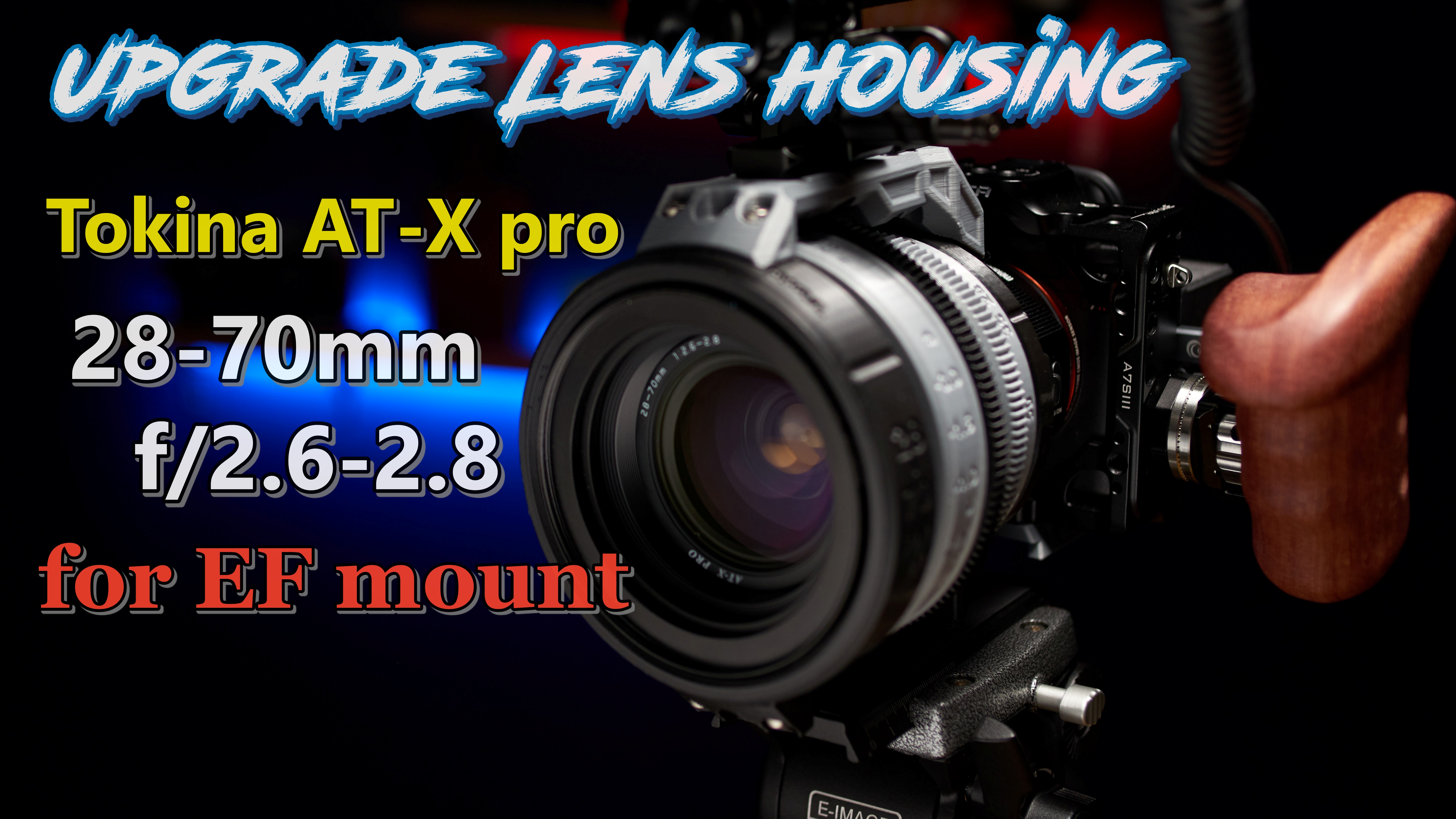 이 비디오에서 업그레이드된 렌즈 하우징은 캐논 "EF 마운트"렌즈 용 Tokina AT-X PRO 28-70mm f2.6-2.8에 최적화되어 있습니다. 같은 모양의 AT-X PRO 28-70mm f2.8 렌즈에도 적합할 것으로 예상하지만 실제 테스트하지는 않았습니다.