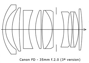 ▶ Canon FD 35mm f/2 렌즈의 광학 설계
