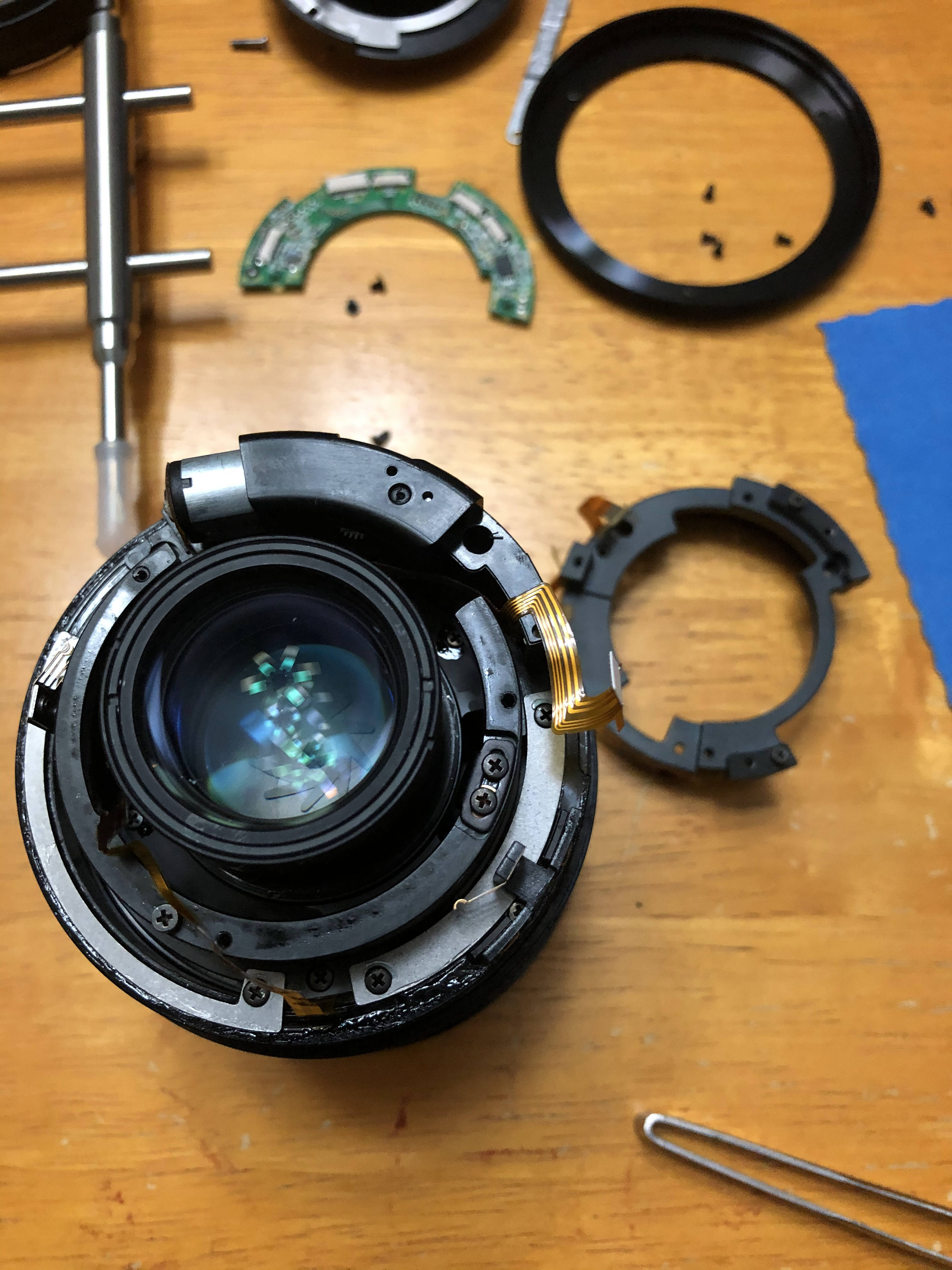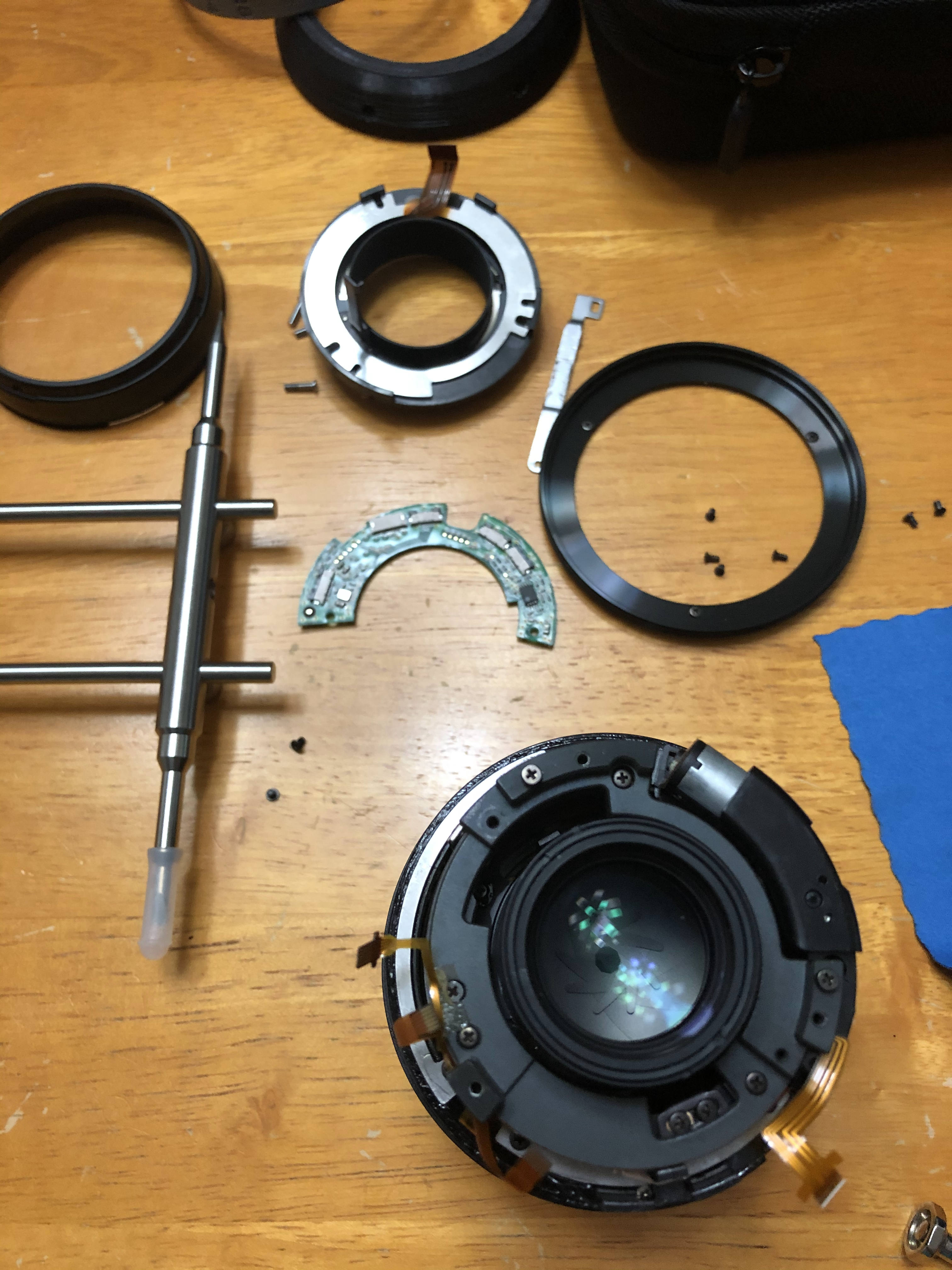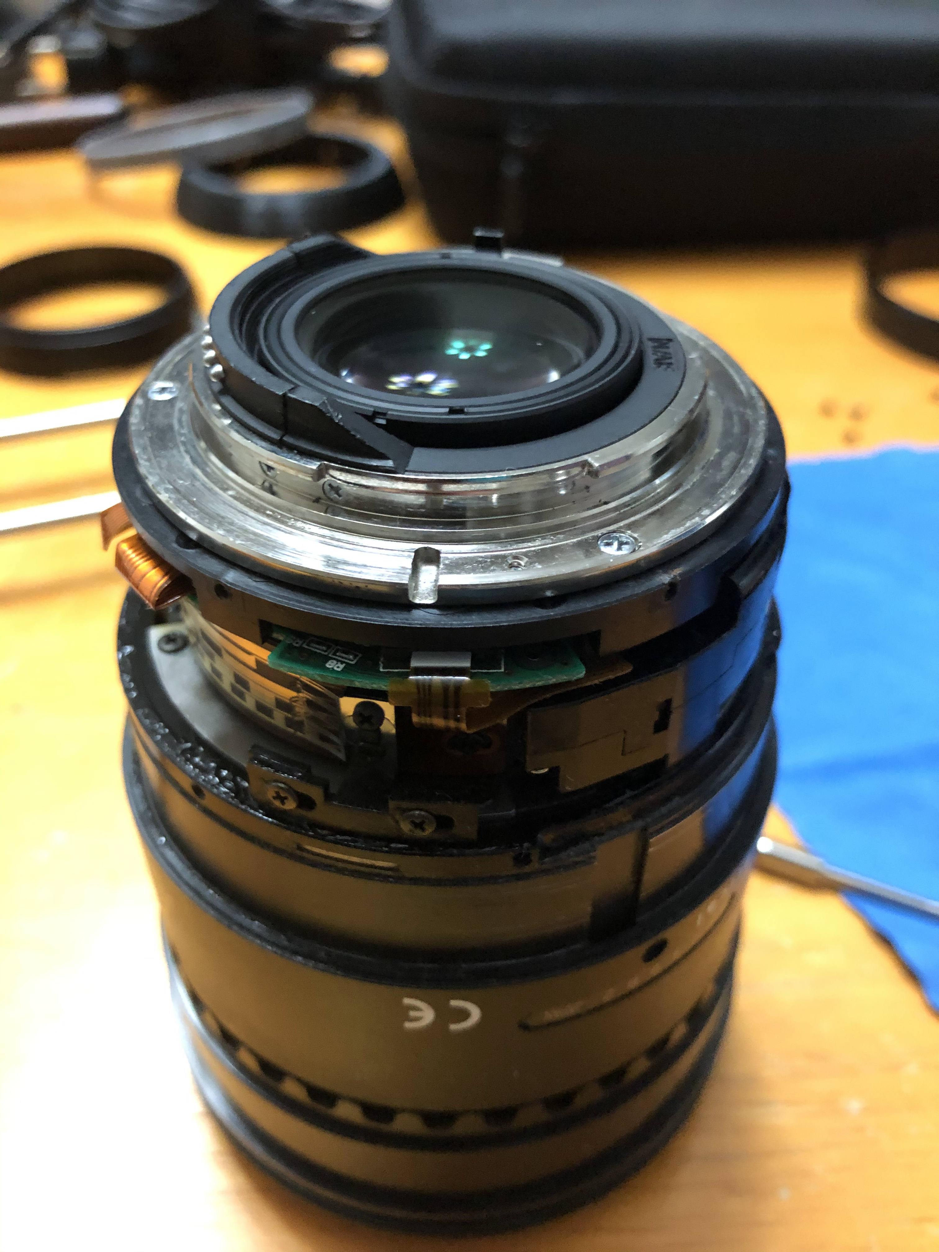 운?이 좋지 않아서 AF 구동과 제어 장치 모두를 분해해야 했다. (그나마 니콘용 렌즈는 조리개 구동 전자 모듈 장치가 없어서 다행이지 싶다)