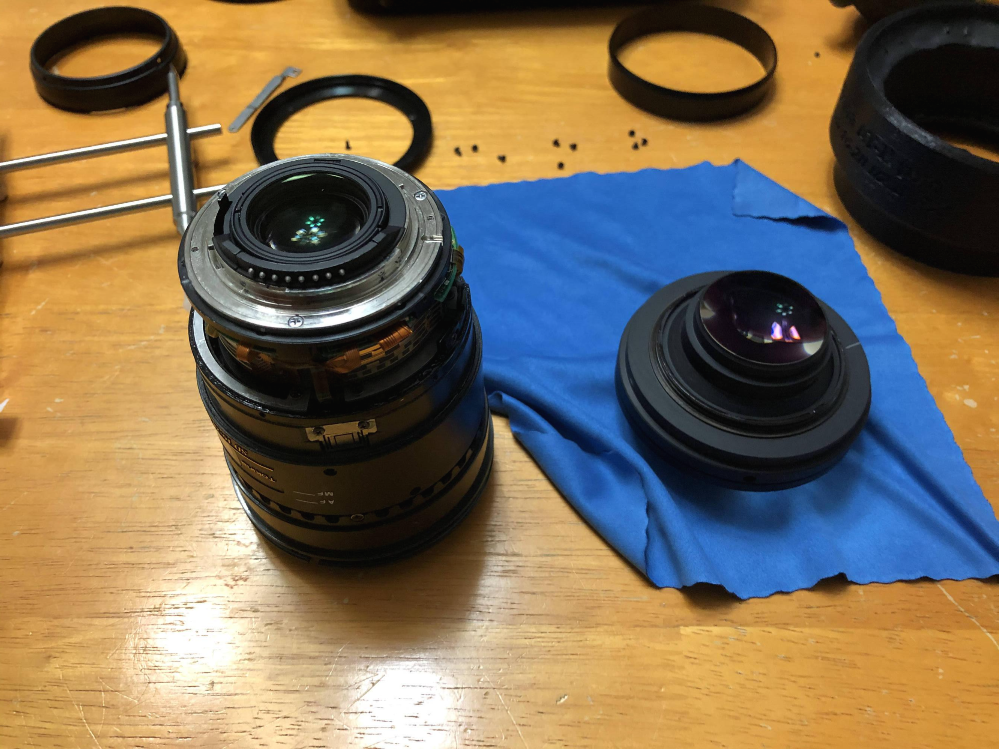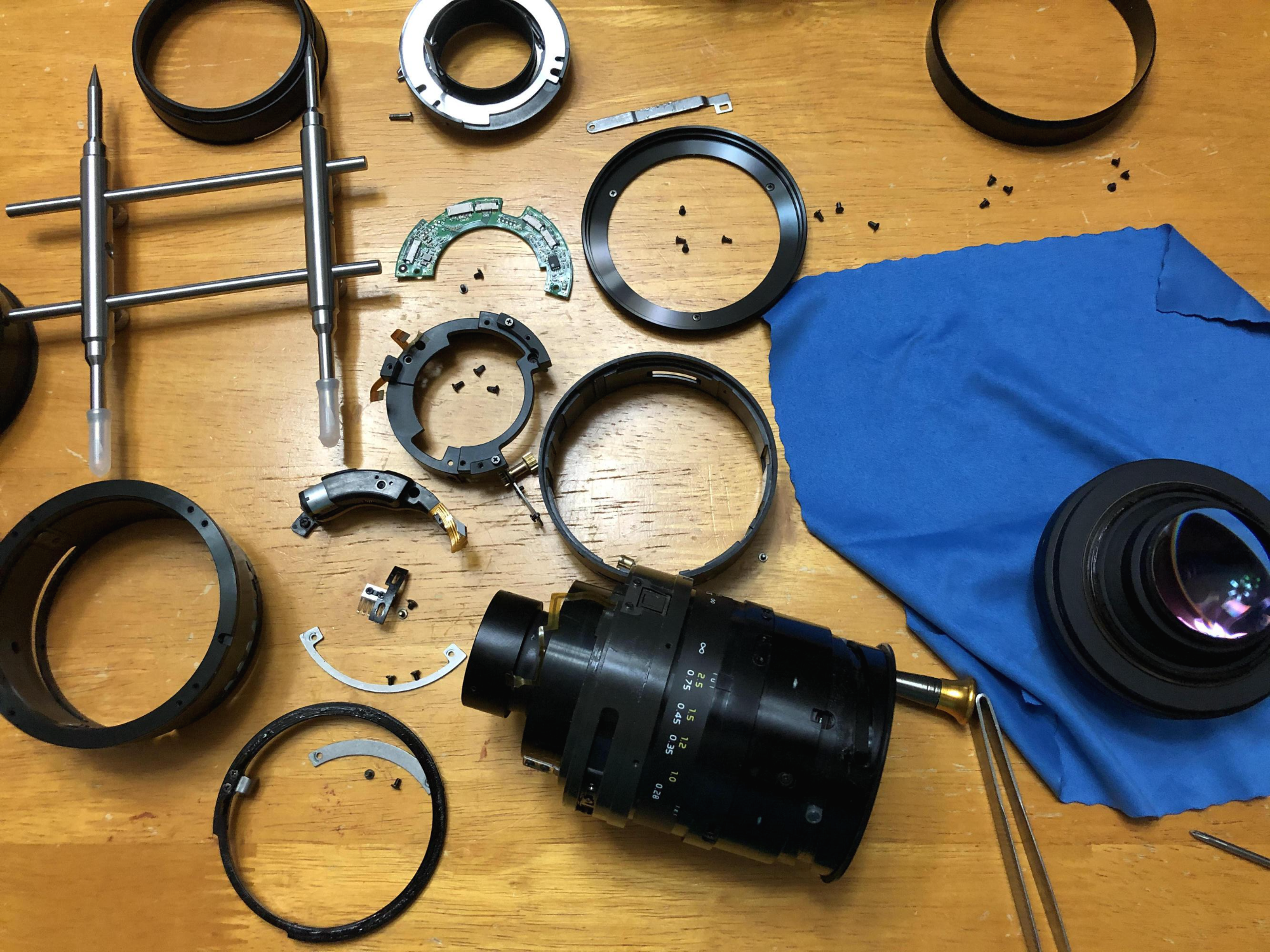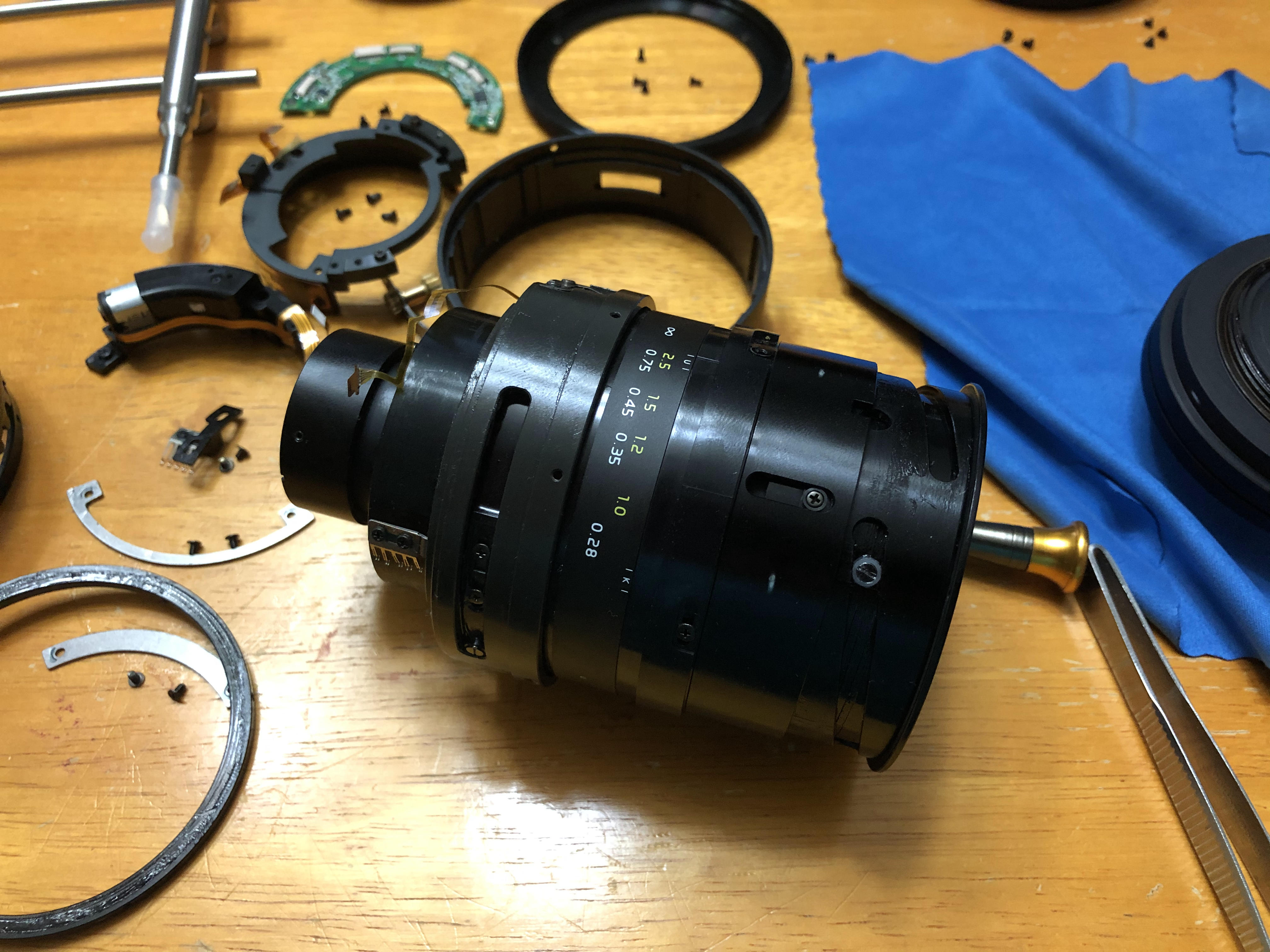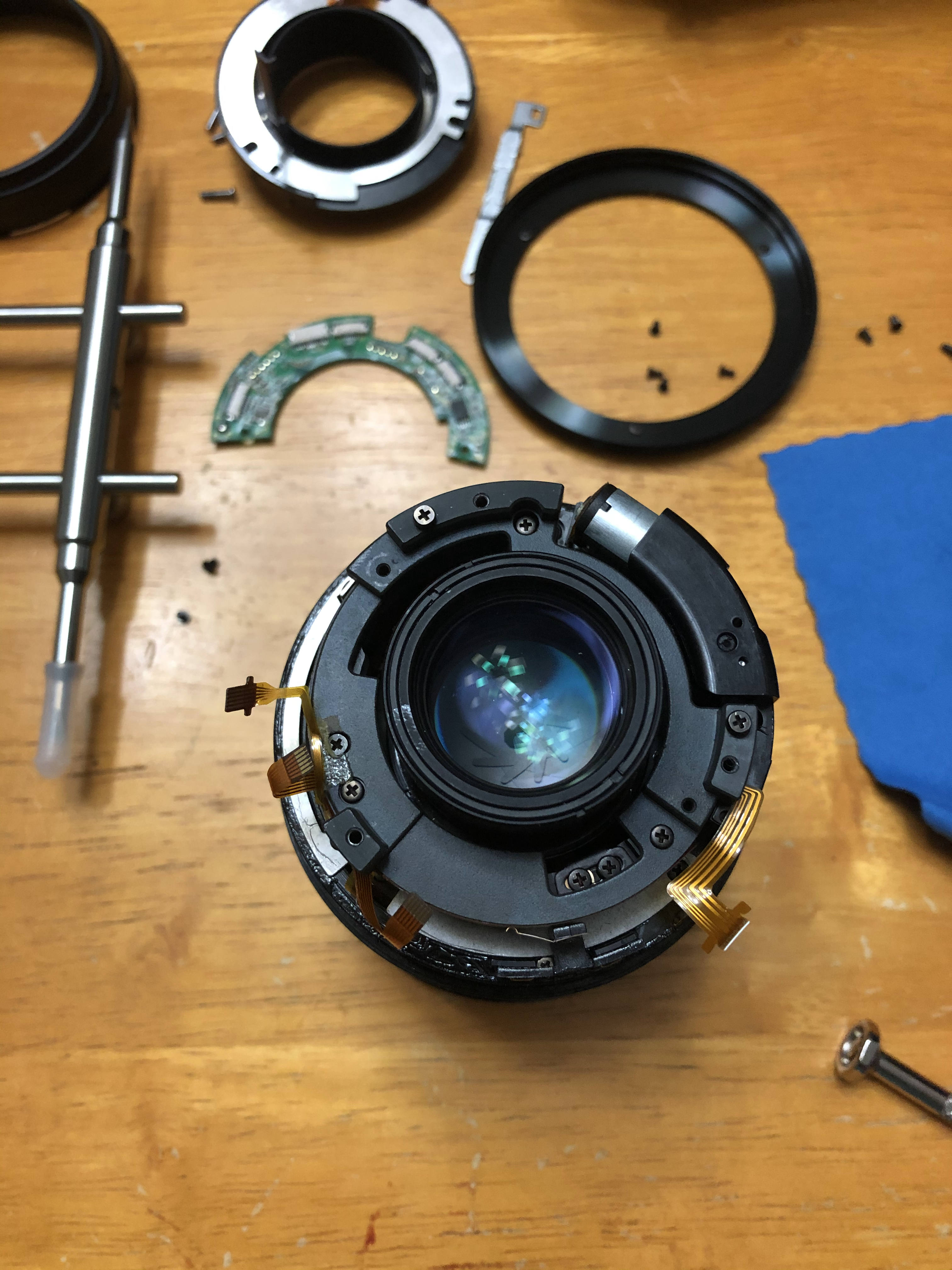 렌즈 전면의 흔들림은 렌즈 내부의 나사가 느슨해져서 발생하는 경우가 많으므로 렌즈 후면에서부터 순차적으로 분해하면서 문제의 나사를 찾아야 했다. 운이 좋으면 빨리 찾을 수 있겠지만, 운이 나쁘면 완전히 분해해야 한다.