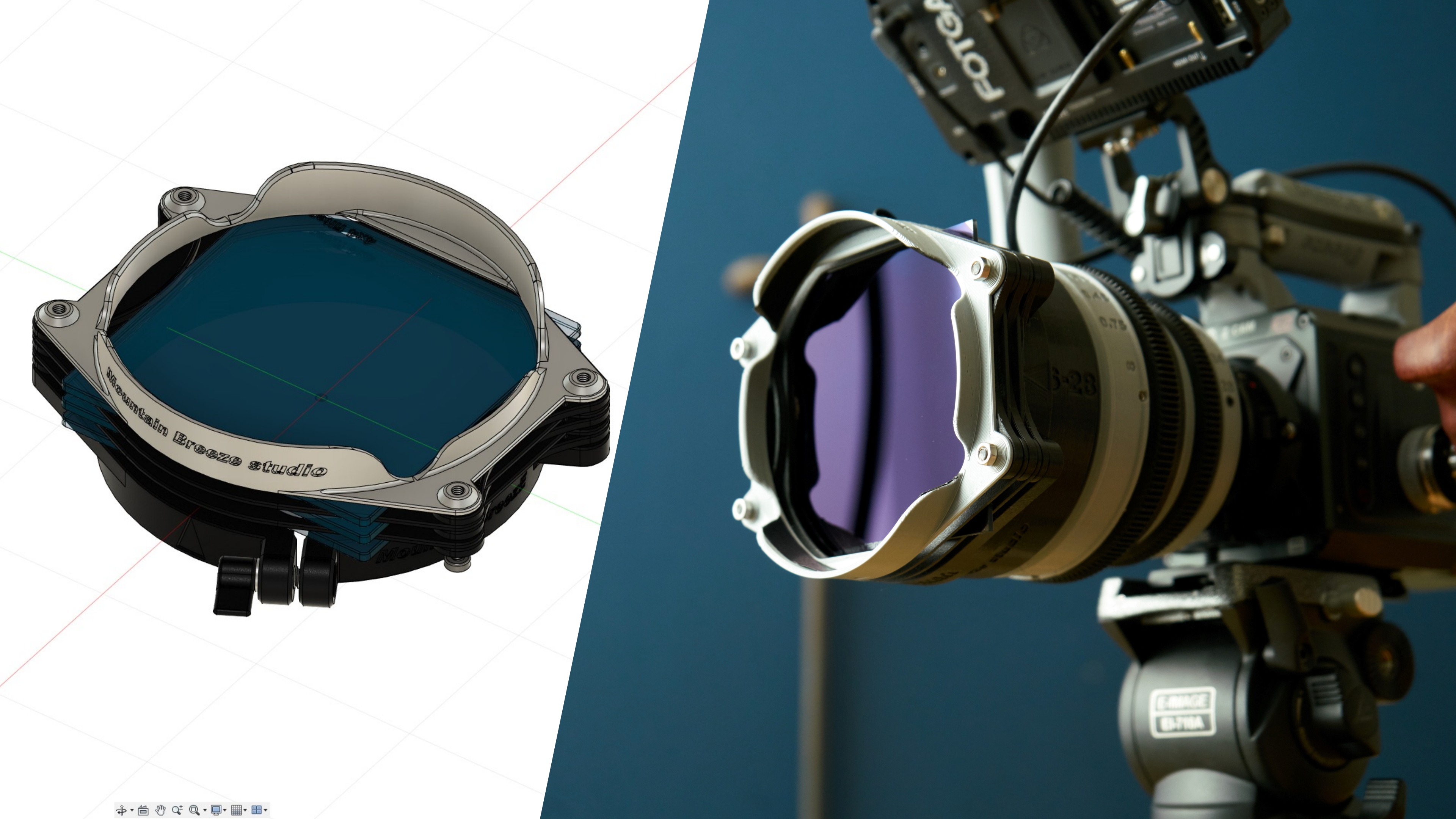 4x4"(100x100mm)용 정사각형 필터 홀더는 114mm 또는 100mm 전면 OD 외경 렌즈에 맞도록 설계되었습니다. (이러한 치수는 또한 이전에 공유한 시네마 렌즈 하우징의 치수와 대부분 일치합니다). 설계 과