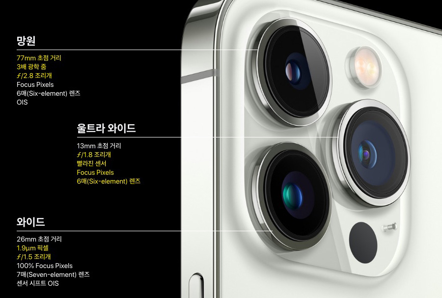아이폰 13의 카메라 모듈을 통해, 이 카메라의 규격과 팩터 개수, 환산 화각 그리고 장단점에 대해서 따져 보자.