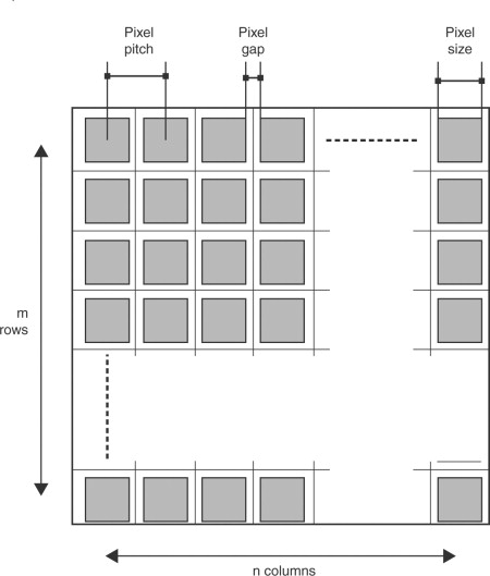 픽셀 피치/사이즈(Pixel pitch/size - 두 용어는 엄격하게 따지면 다른 개념이다. 위 이미지 참조)는 작은 판형의 이미지 센서에 고화소 구현을 위해 상대적으로 작다. 위의 아이폰 광각 모듈의 경우 1.4 µm(마이크로미터)에 불과하고, 35mm FF 카메라 이미지 센서의 픽셀 피치는 3.8~8.4 µm에 해당한다. (소니 알파R4와 후지 GFX 100의 경우 3.8 µm, 파나소닉 GH5의 경우 3.3 µm) 픽셀 사이즈 크기 문제는 작은 판형의 이미지 센서가 고화소/고해상력에서 동등한 화질을 구현하는데에는 불리하게 작용할 것이다.