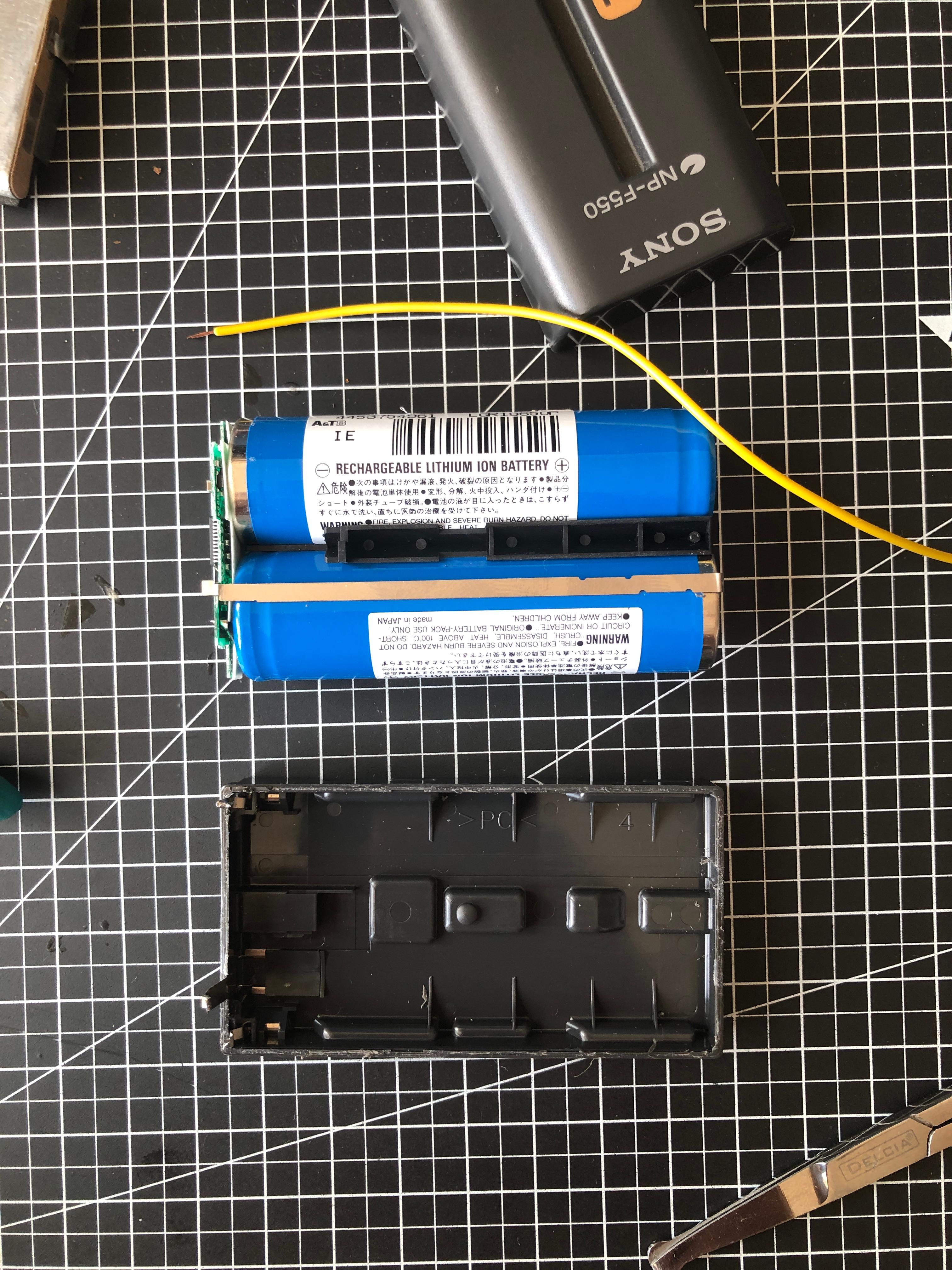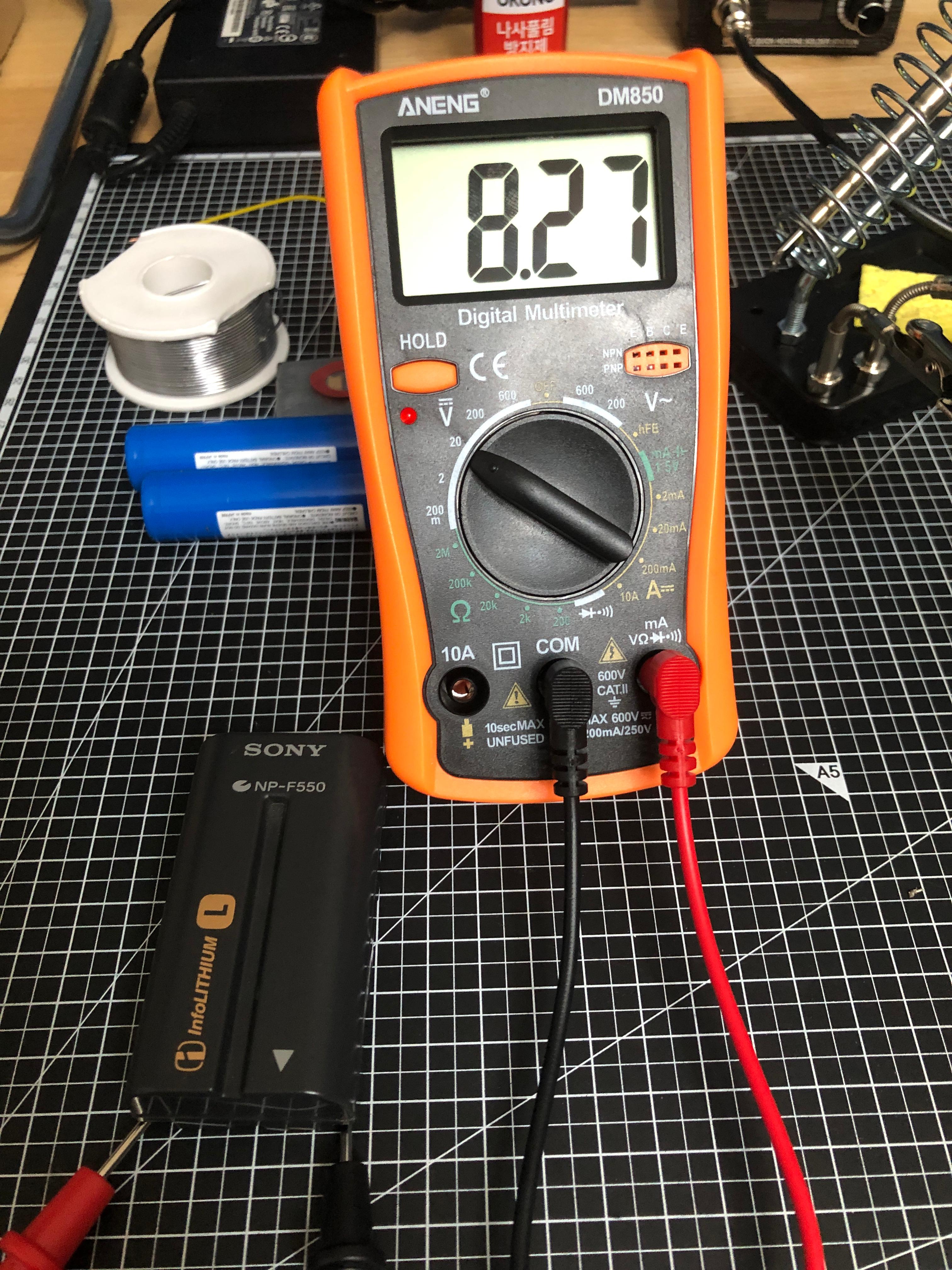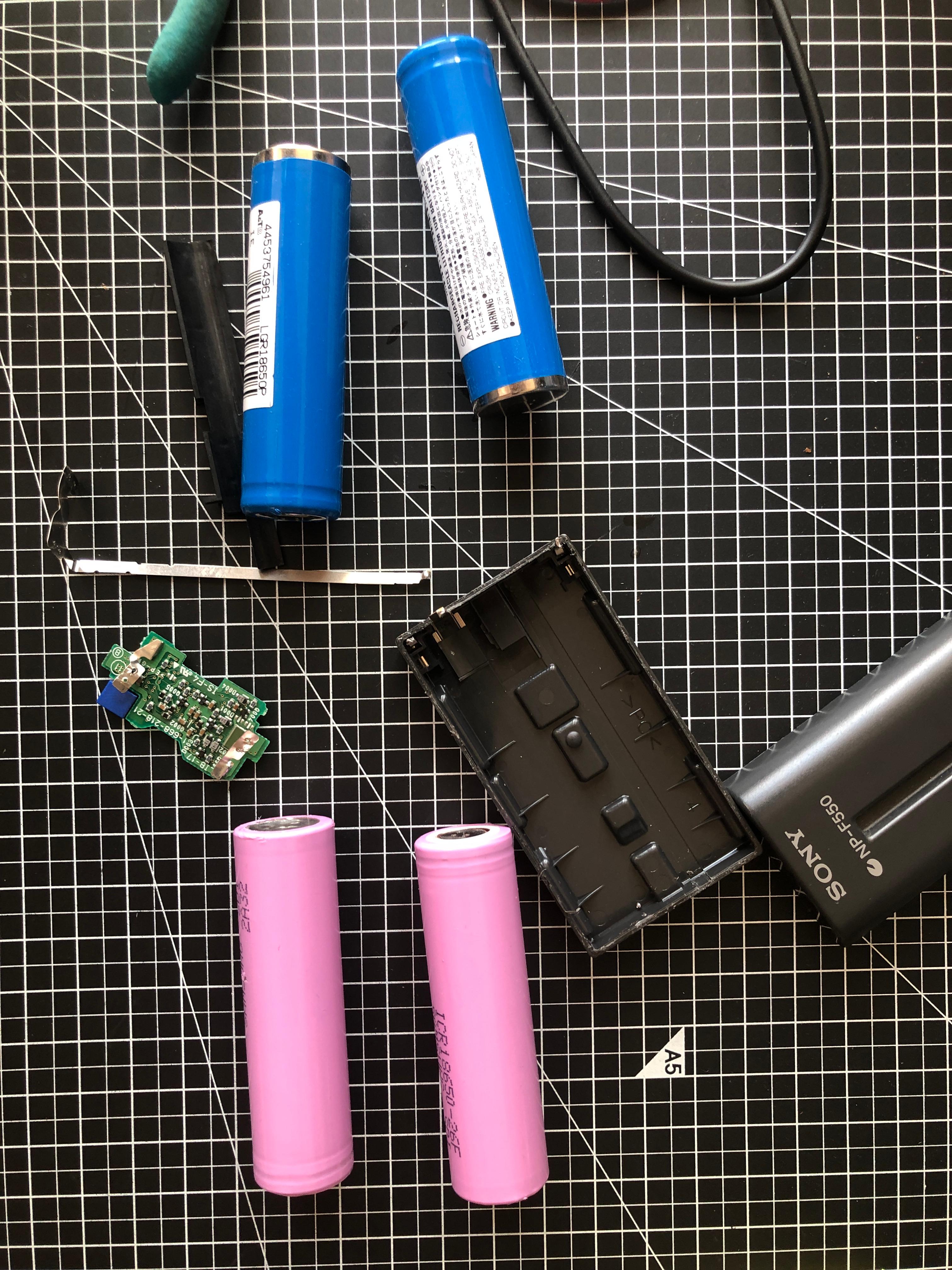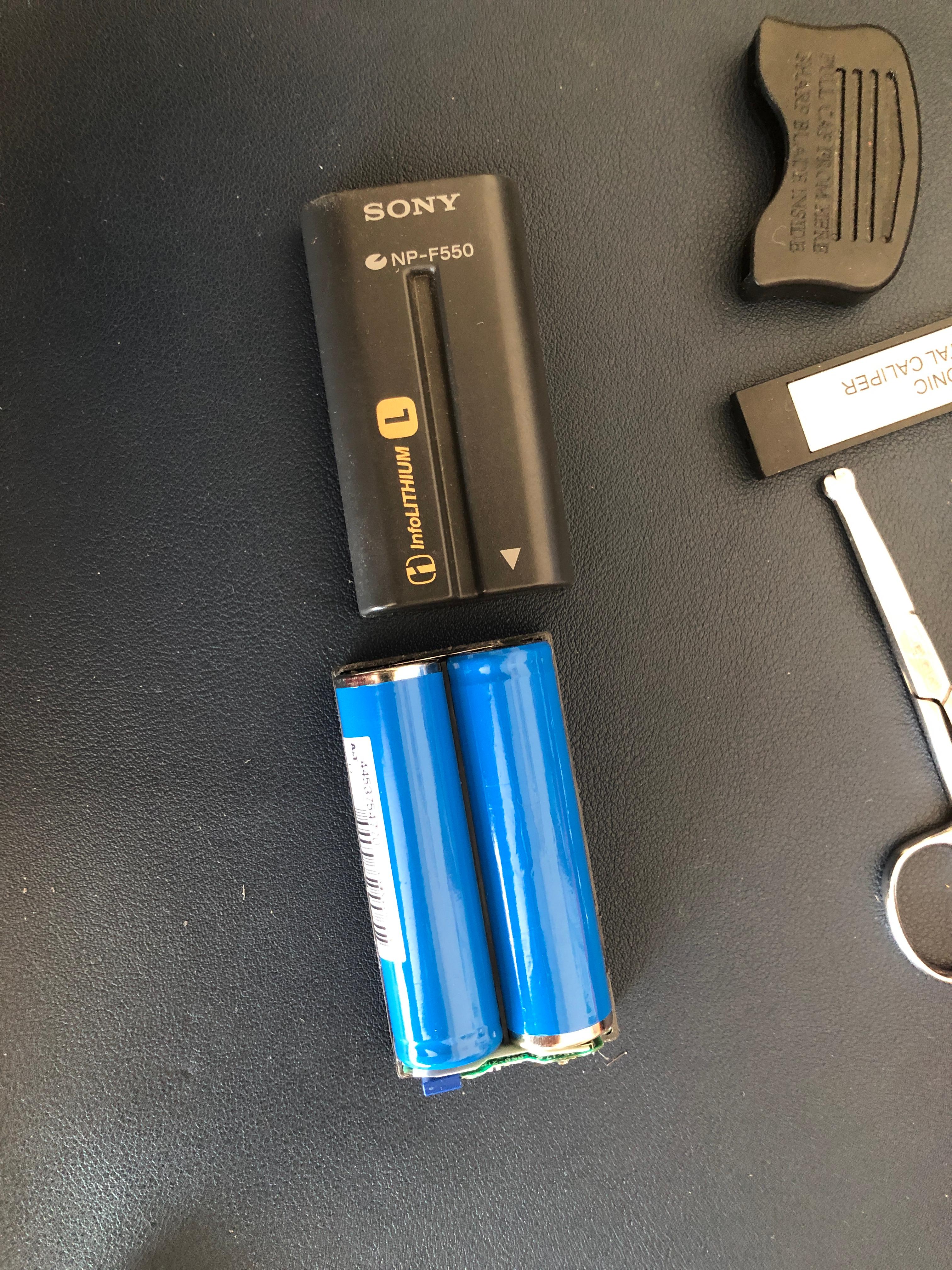 약 20여 년 전 구매했던 소니 캠코더용 NP-F550 배터리를 그냥 방치했더니 완전히 방전되었다. (이 규격이 여전히 최신 제품에도 그대로 사용되는 것도 신기하다) 장시간 충전기에 꽂아두었더니 다시 충전은 되지만, 완충 전압이 7.5V 정도에 그치고 대기 상태에서 빠르게 자연 방전되는 증상으로 볼 때, 내부 배터리 셀이 망가진 듯하다. 20여 년이 지났으니 열화로 인해 제 기능을 기대하기 어렵다. 캠코더용 NP-F550 배터리는 18650 배터리 셀 두 개가 직렬연결(2S 1p)이므로 교체할 18650 배터리 두 개를 준비해서 셀 교체를 시도해 보자.