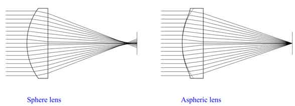 비구면 요소의 사용은 초고속 렌즈와 같이 조리개 개구가 큰 렌즈의 최대 개방 조리개에서 구면 수차 문제 해결에 효과적이다. 얕은 수학 지식으로 접근해 보면, 구면의 곡률을 가지는 포물면의 유리나 포물면 거울에 반사시킨 빛은 한 점에 근사한다. 즉, 한 점에 완전히 모이는 것이 아니라 근사한다. 그리고 포물면의 구면의 곡률이 클수록 구면 수차도 커진다. 구면 수차를 해결하는 주요 방법으로는 낮은 포물면의 곡률로 근사의 차이를 줄이거나 또는 비구면을 통해 한 점에 모이도록 만드는 것이다. 문제는 낮은 곡률로는 충분한 굴절률을 얻을 수 없다. 비구면은 최적의 곡률을 계산이 복잡하고 계산/설계된 비구면 형상으로 연마하는 정밀 가공 기술 또한 고난도였다. 초기의 비구면 광학 유리는 숙련된 기술자의 수작업에 의해 만들어졌다. 즉, 기술자의 숙련도에 의지해 수작업으로만 가능했고, 요구 정밀도에 이르지 못하면 폐기해야 했으므로, 수율이 낮았고 대량 생산에 적합하지 않아서 매우 고비용/고난도 기술이었다. 70년대 컴퓨터를 이용한 광학 설계가 도입되면서 설계 단계에서 맞춤형 비구면 곡률 계산이 한결 수월해졌고, 광선 추적 기술 및 정밀 가공 기술(레이저 광을 사용하는 측정기, 특수 재료를 사용한 연삭 돌 및 연마 기계를 제어하기 위한 전자 기술과 같은 최신 기술) 도입으로 비구면 요소의 수율과 정밀도가 높아지며 상용 렌즈에 본격 활용되기 시작했다. 70년대 상용 렌즈에 비구면 요소의 적극적 사용은 캐논이 선도했다.
