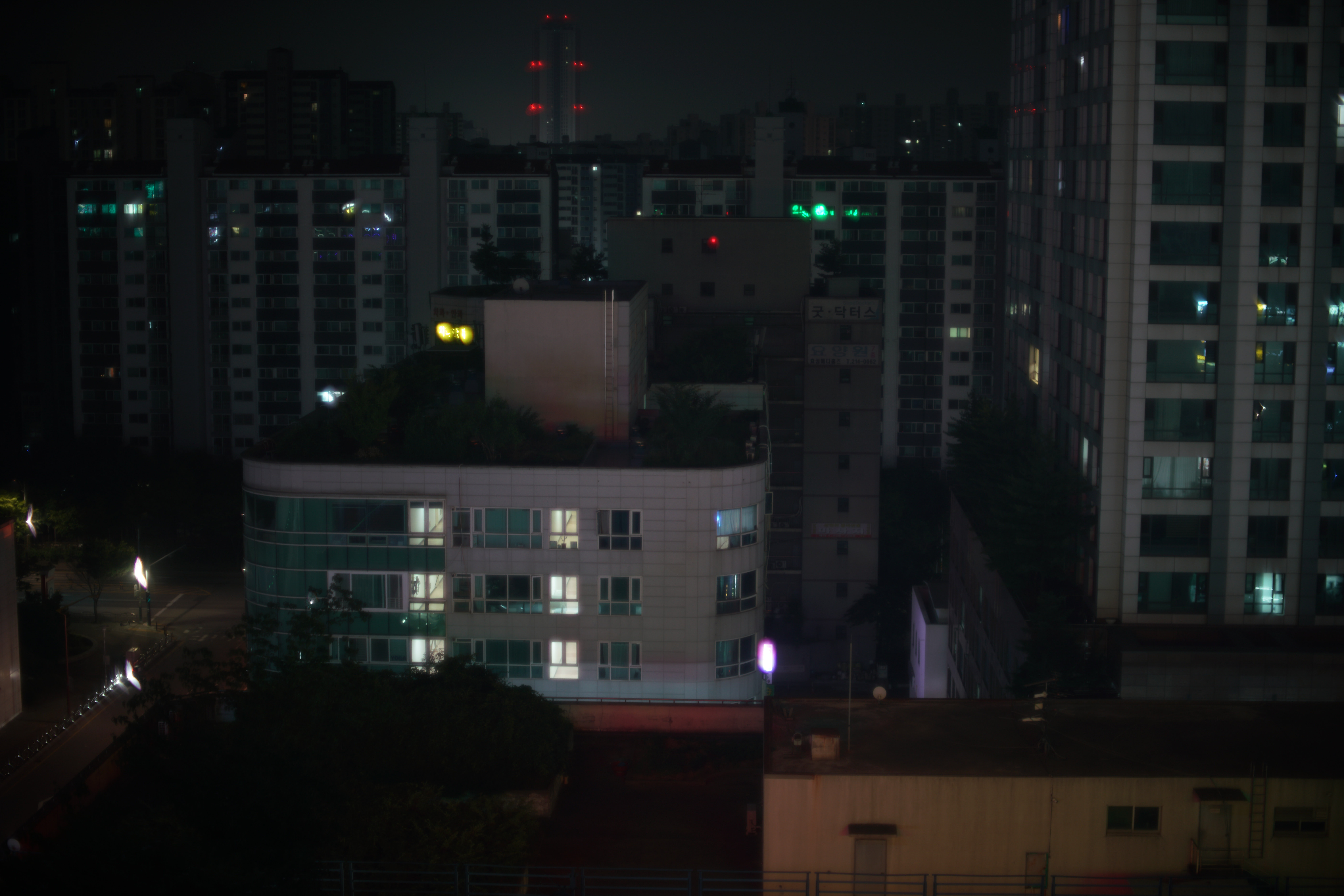 노파심에 덧붙이면, 최대개방 조건에서 점광원이 많은 심야 장노출, 더구나 지저분한 유리를 통과하는 창밖 심야 야경, 구도 설정의 고민도 없이 촬영한 jpg, 이런 조악한 사진을 샘플 이미지로 사용하는 것은 빈티지 렌즈의 광학 성능을 폄하하기 위한 악의의 행동은 아니다. 이런 악 조건에서 수차 문제에 의한 표현/렌더링 특성이 쉽게 드러나기 때문이다. 정도의 차이는 있지만 최신의 렌즈들도 동일 조건 하에서는 광학 수차 문제를 여실히 드러낸다.