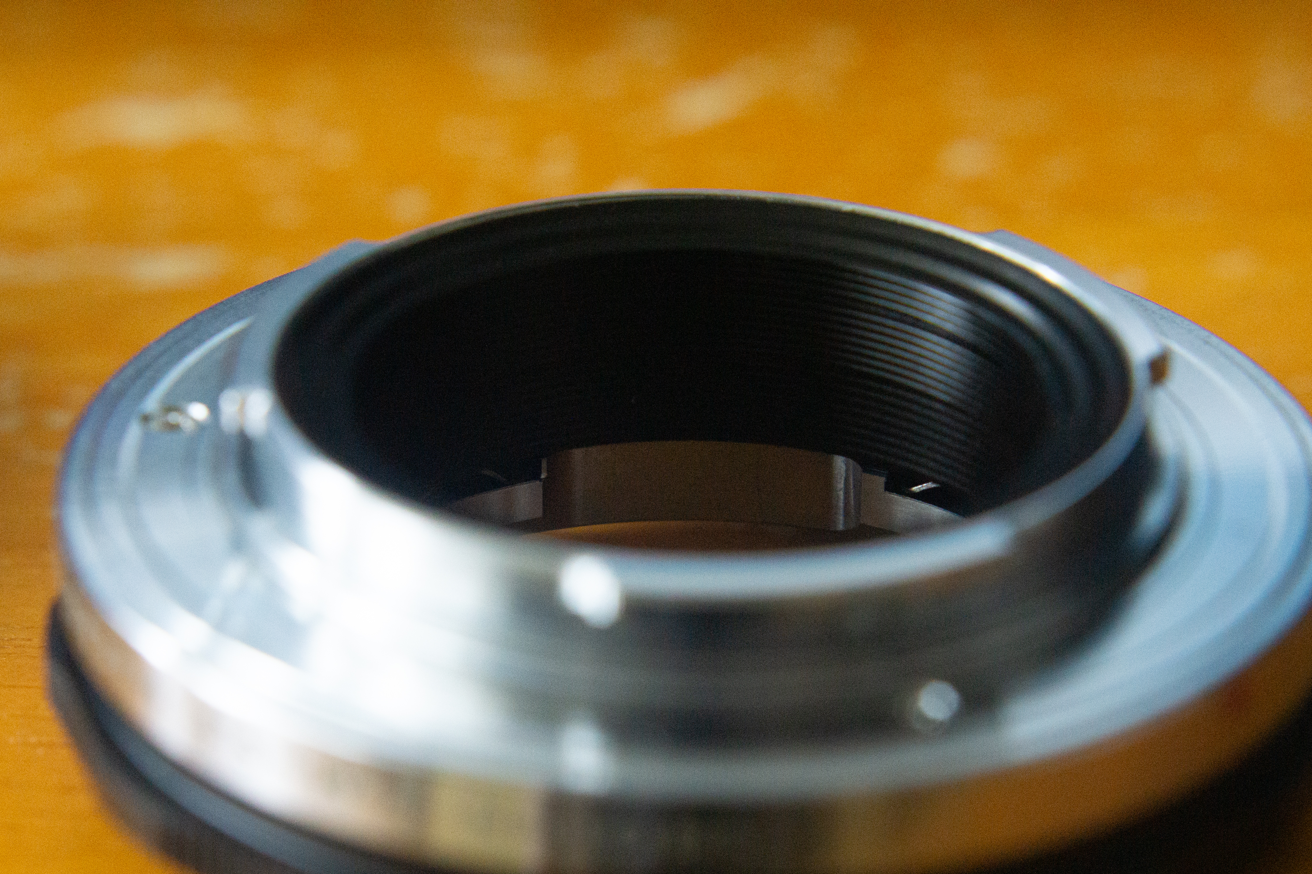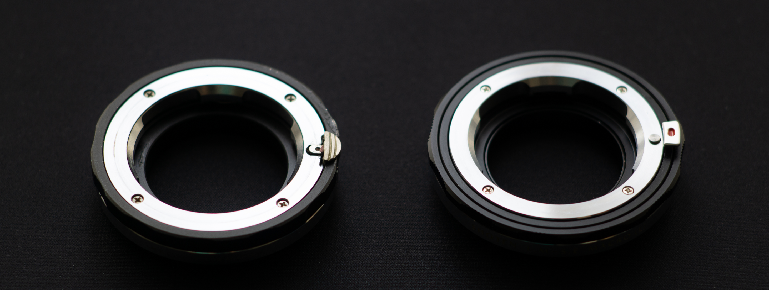 중국발 Andoer LM-E Close focus adapter(단종되어 더 이상 판매하지 않음)와 Shoten L.M - S.E Macro (L)을 비교하면, 중국산 어댑터를 수년 더 사용해서 더 낡은 것을 제외하고, 전면 외형에서 그리 차이가 없다. 헬리코이드 확장은 5mm, 어댑터 중량 또한 89g와 87g로 거의 비슷하다. 단, 카메라 마운트와 맞물리는 후면 내부의 마감에서 차이가 있는데, 대부분의 헬리코이드 어댑터가 확장 시 내부 이중 나선 구조가 그대로 노출되는 형태인데 반해서, Shoten L.M - S.E Macro (L)은 확장 시 헬리코이드가 노출되지 않도록 추가된 구조물이 있어서 더 정리되어 보인다. 굳이 동일한 기능의 새로운 어댑터를 추가한 이유는 이 구조가 빈티지 렌즈에서 취약한 플레어 발생 문제에 도움이 되지 않을까 하는 막연한 기대를 가졌다. 과연 실제 결과도 그럴까?