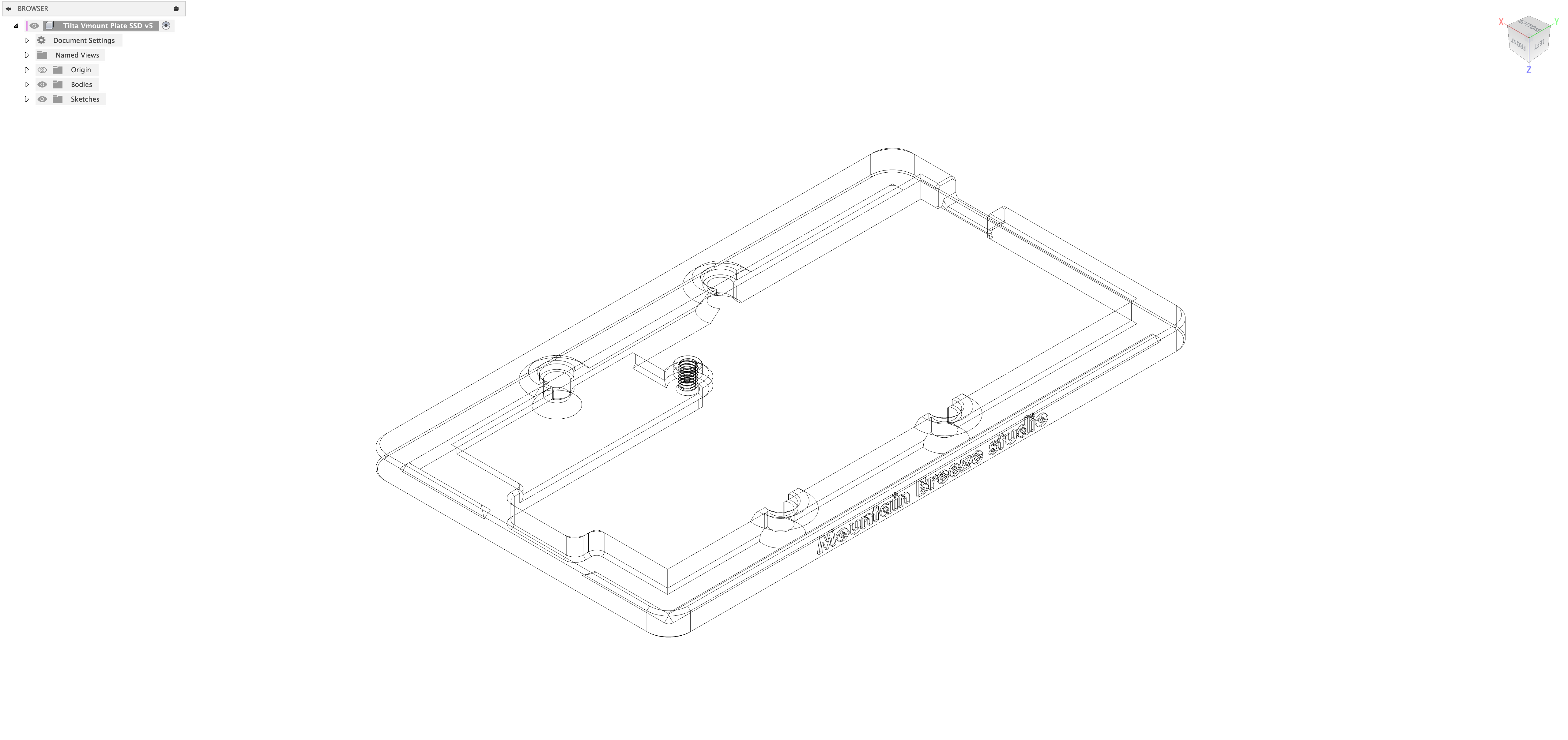 Tilta TA-ABP-G type 1(아래 링크 참조)의 형태와 SSD(Sandisk Extreme Portable)의 고정 형태 등을 감안하여 3D 모델링했다.