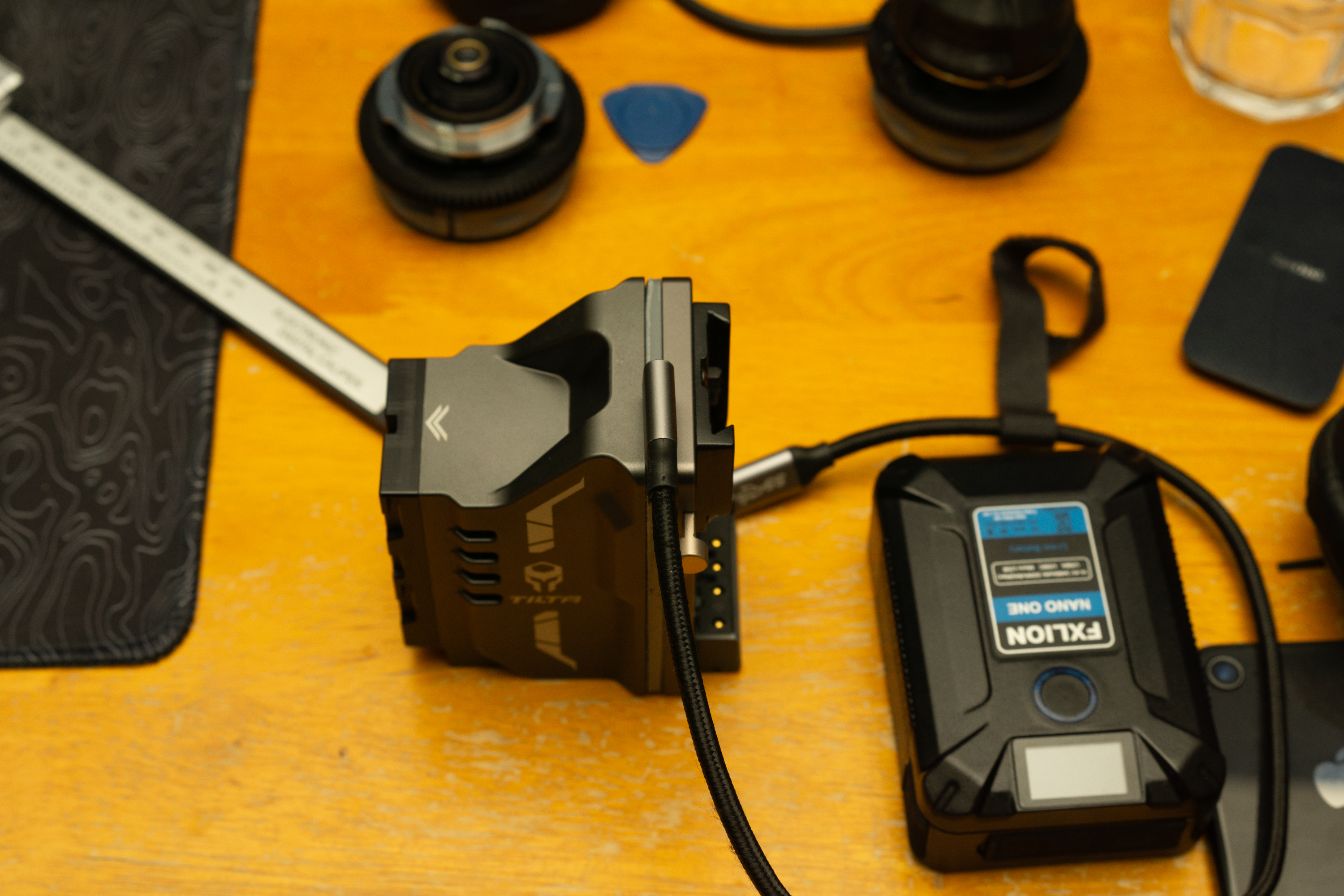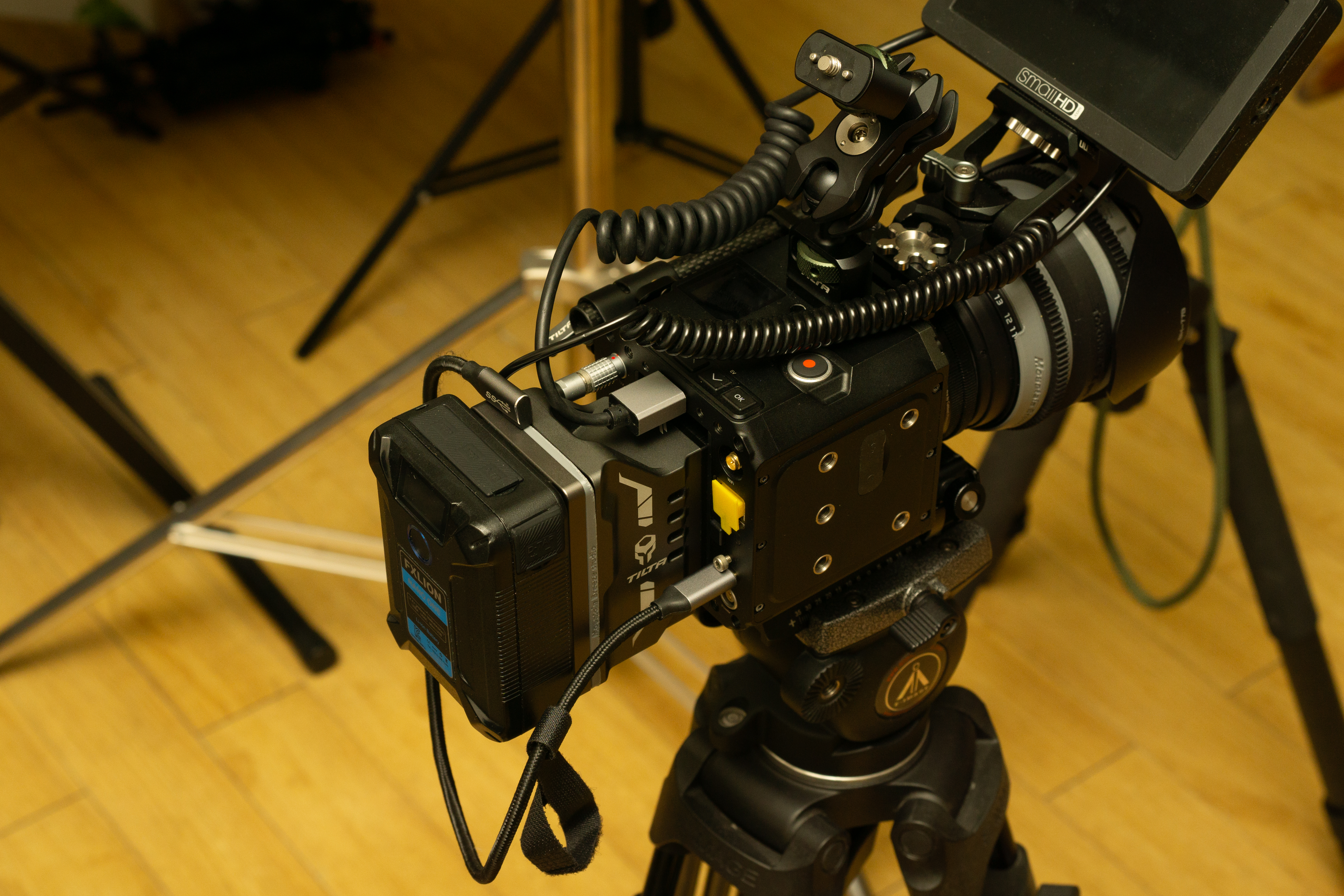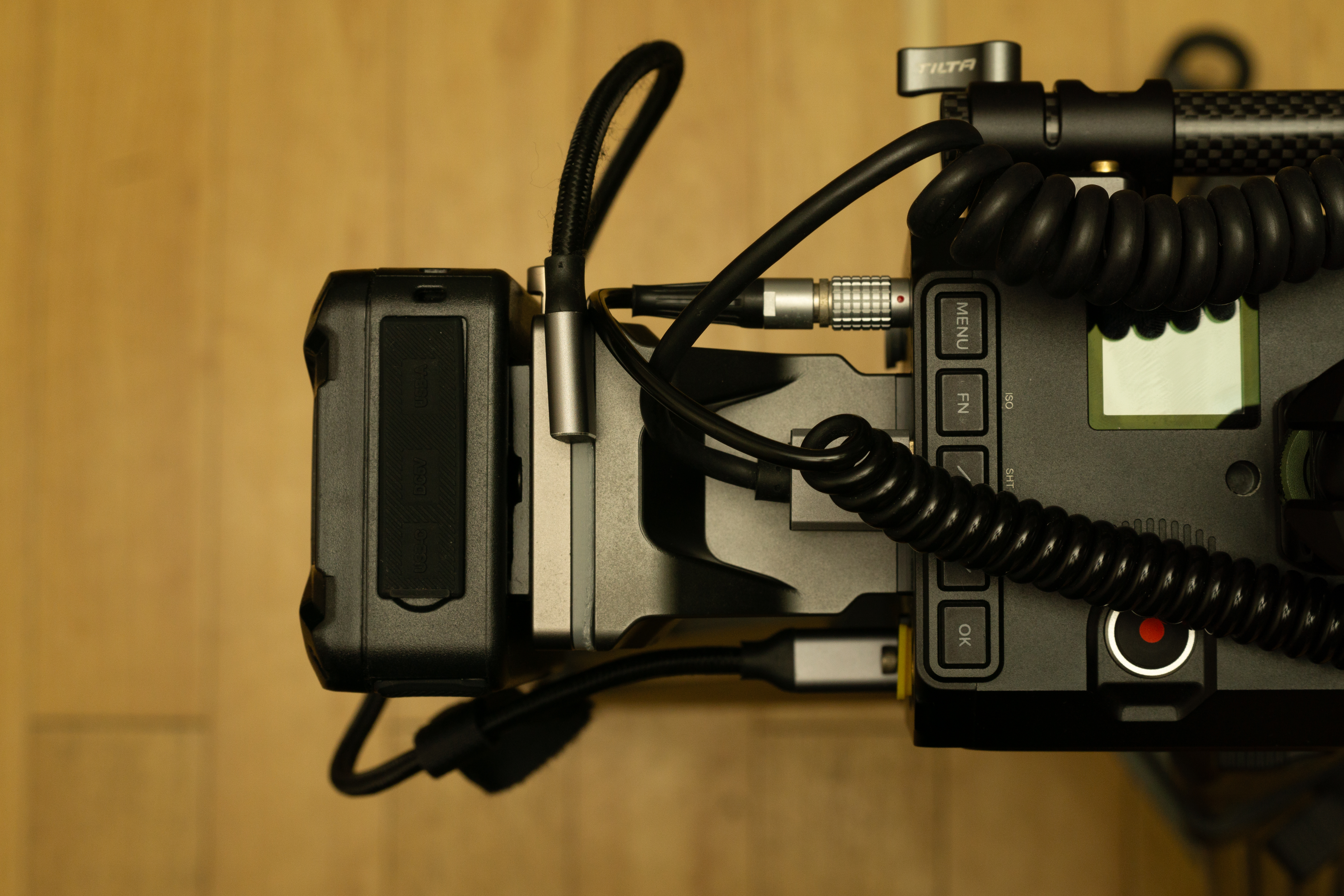 Z cam e2의 저장장치는 측면의 Cfast 2.0 메모리카드를 쓸 수 있지만, 가성비가 떨어지니 주로 후면의 USB-C 단자에 SSD를 연결해 사용했다. 문제는 작은 카메라에 SSD 고정하기가 마땅찮아서 걸리적거려 불편했다. 그리고 카메라 주 전원 공급은 카메라 후면의 NP-F 배터리 타입이고, Tilta 플레이트를 연결해서 V 마운트 배터리를 연결해서 사용했다. 모양이 카메라 후면의 단자 활용을 위해 길쭉한 형태인데, 마운트 플레이트에 SSD를 내장하면 SSD의 걸리적거림 문제는 해결이 될 듯하다.